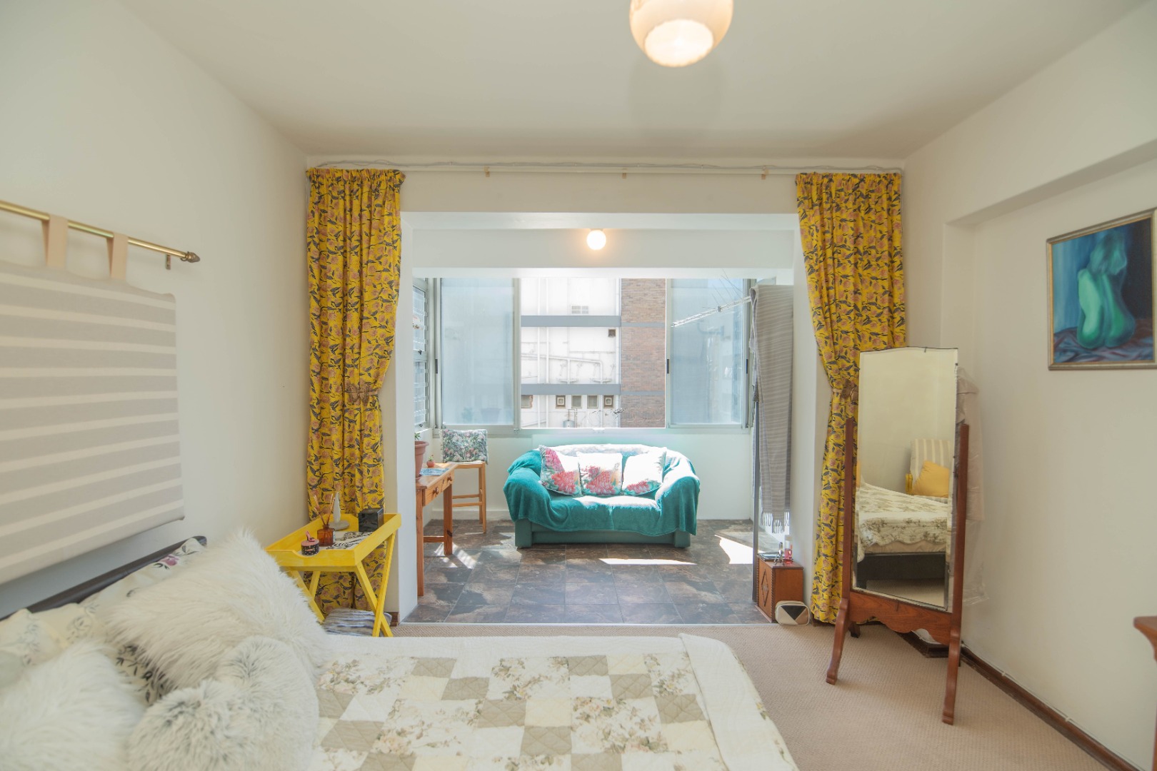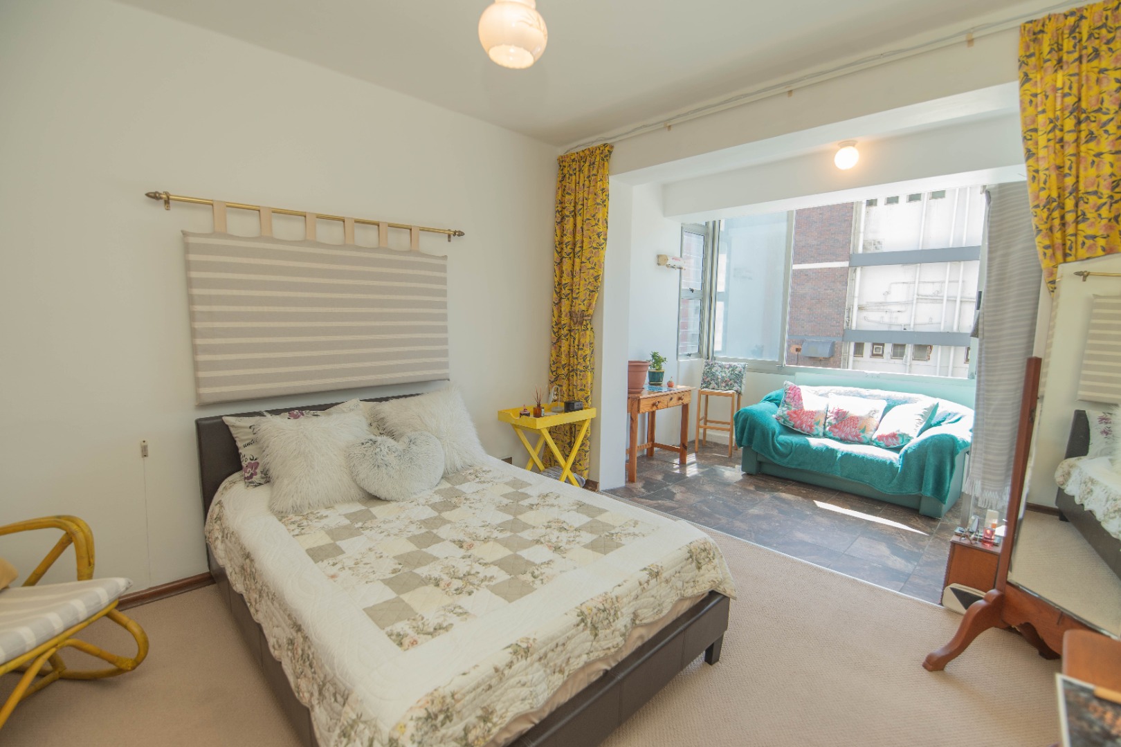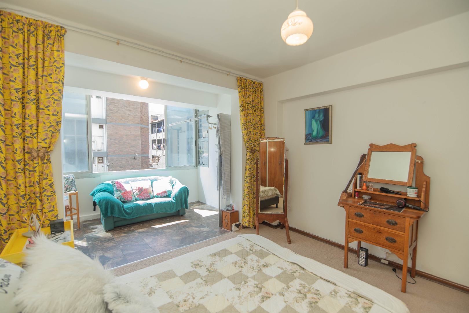 while large windows enhance the sense of openness and light. Bonus of built-in cupboards for added