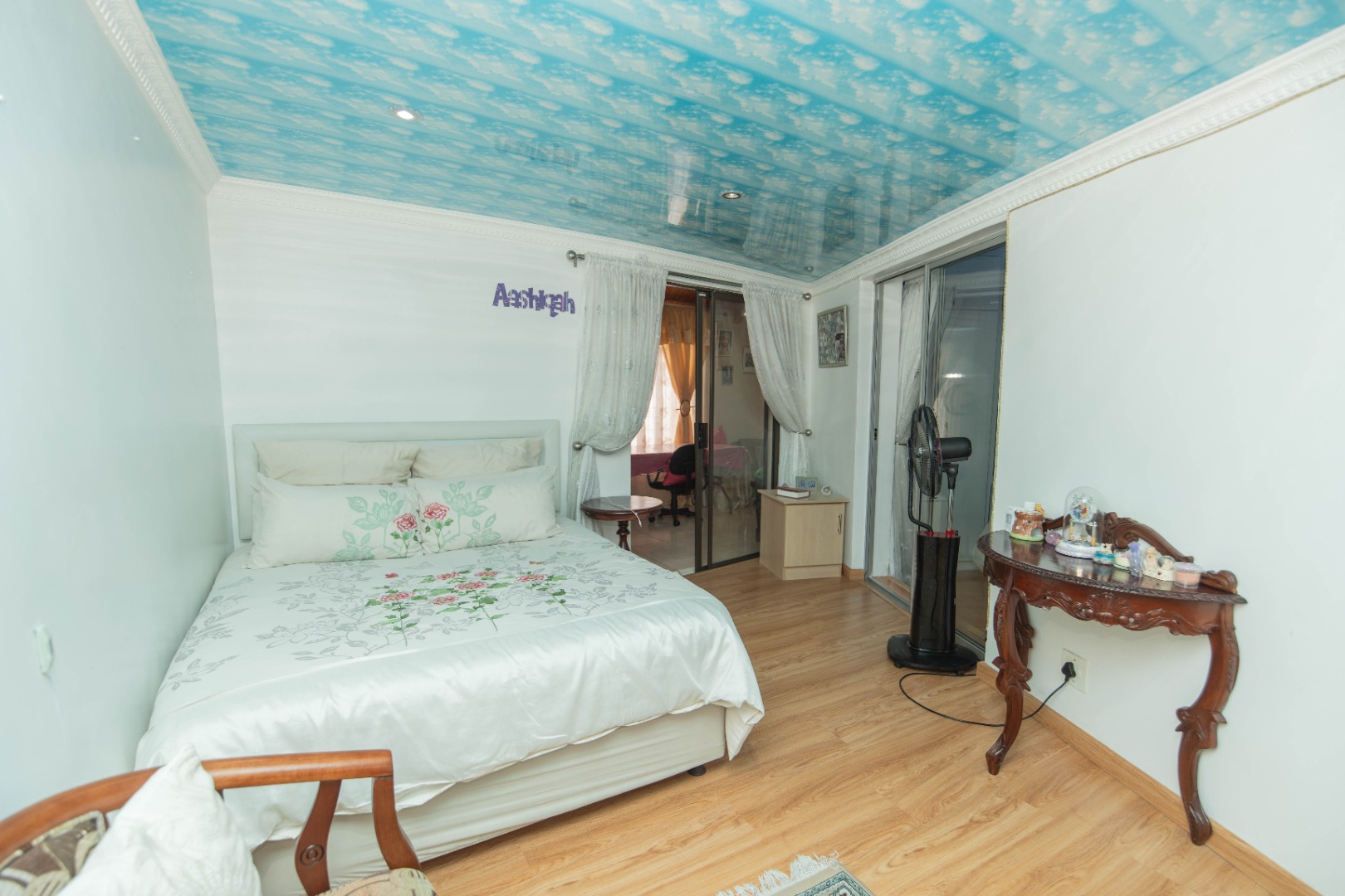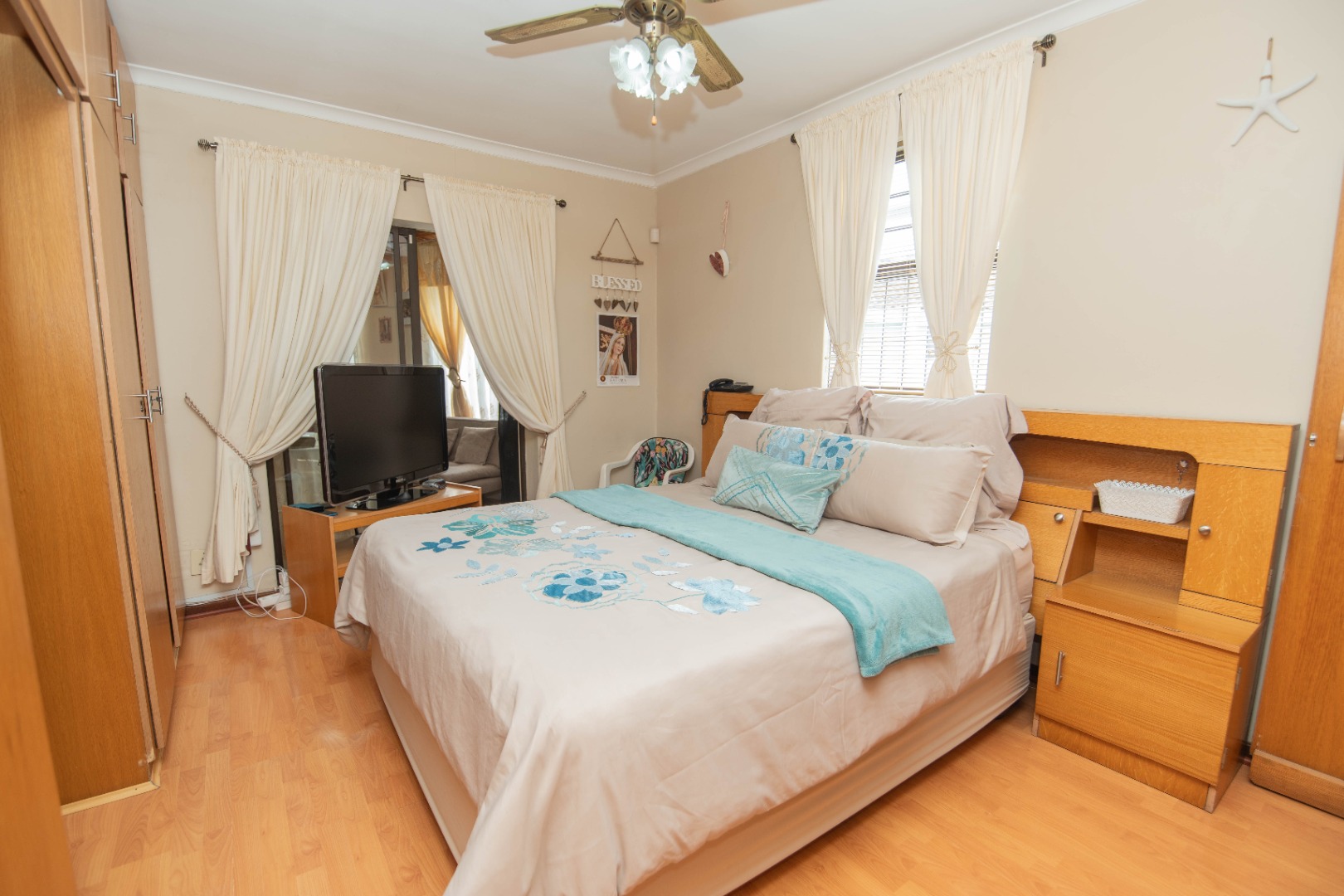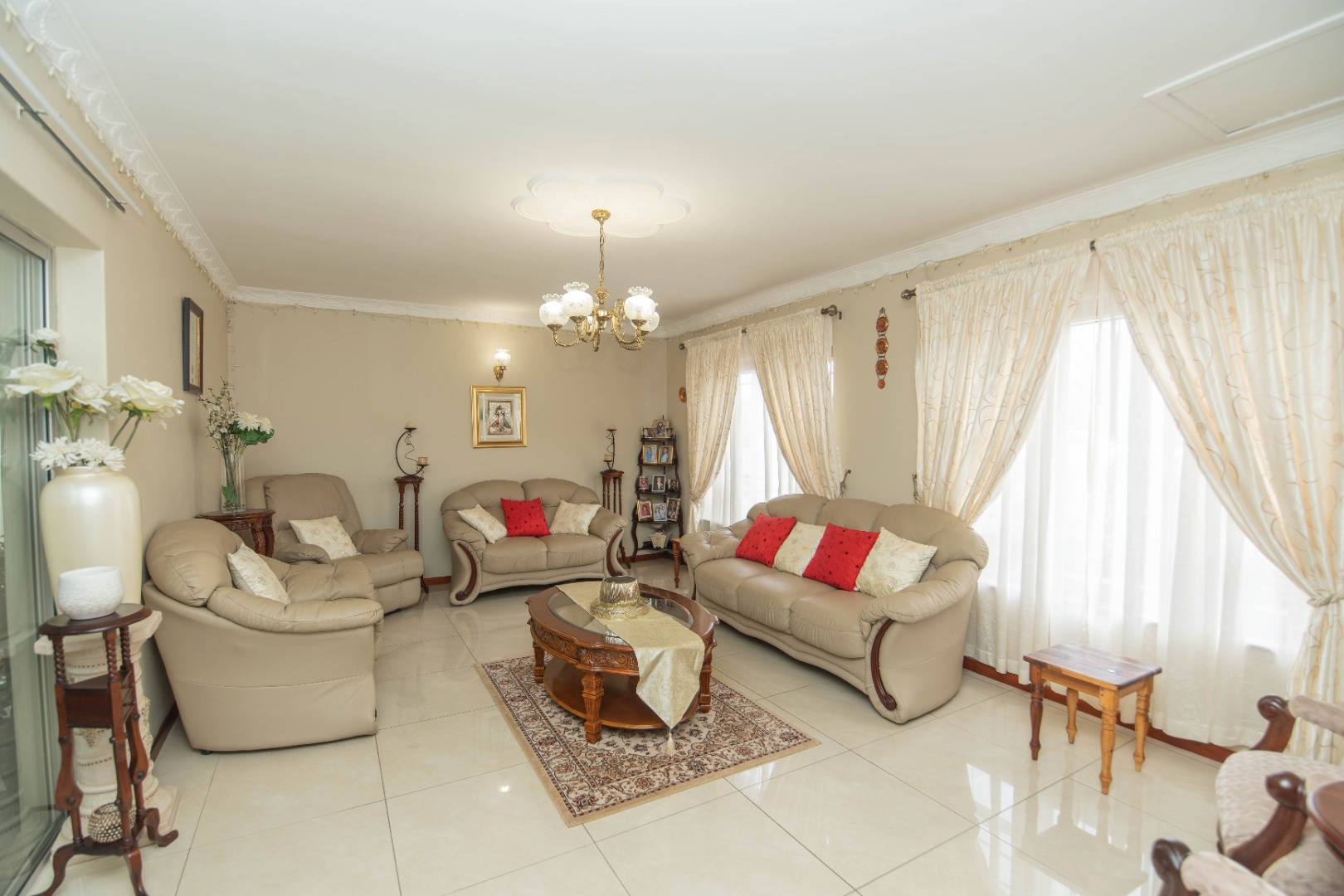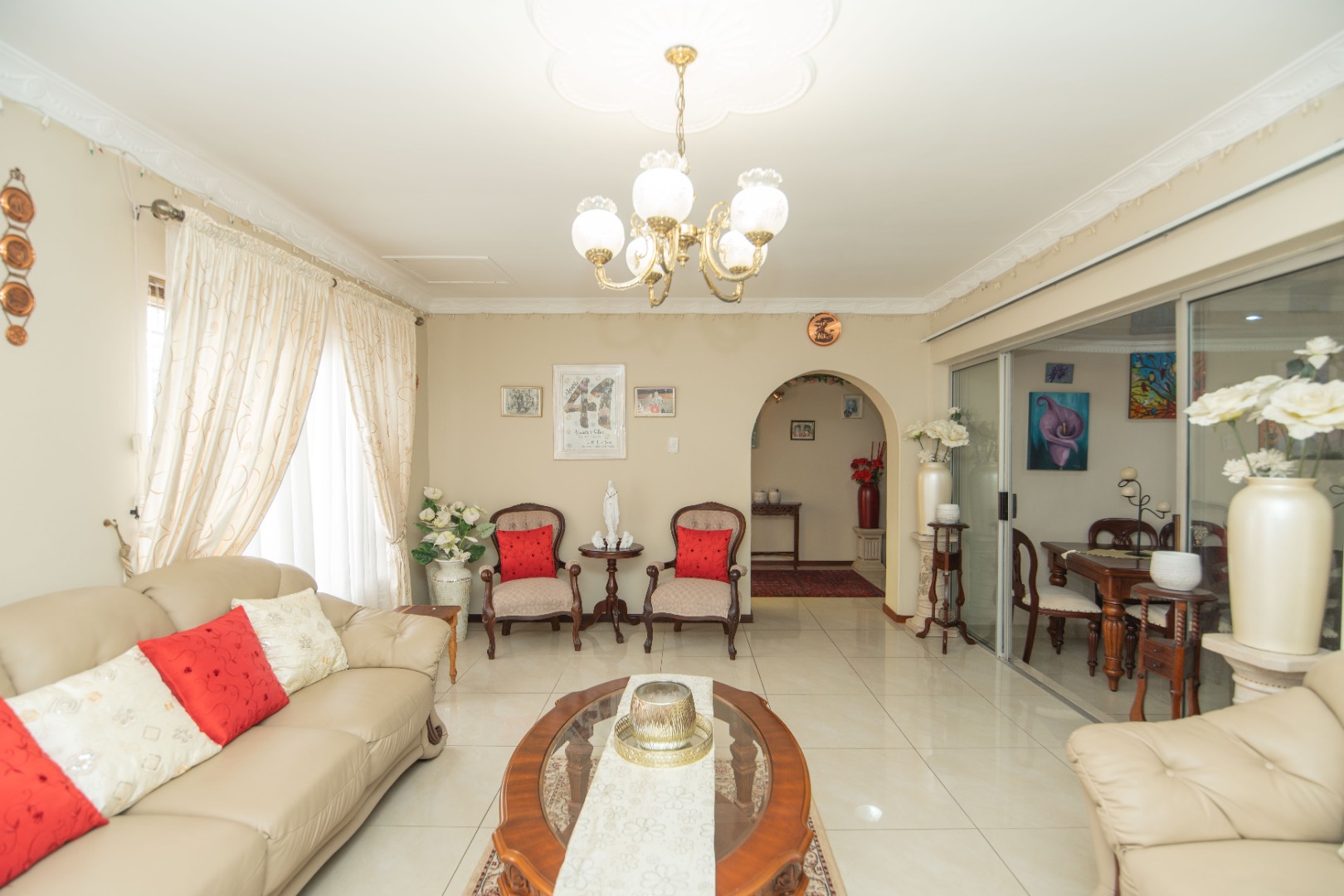 The home offers 4 bedrooms with laminated flooring and 3 bathrooms, two of which are en-suite, a lounge, dining area, and TV room, giving the family plenty of space to relax and entertain.