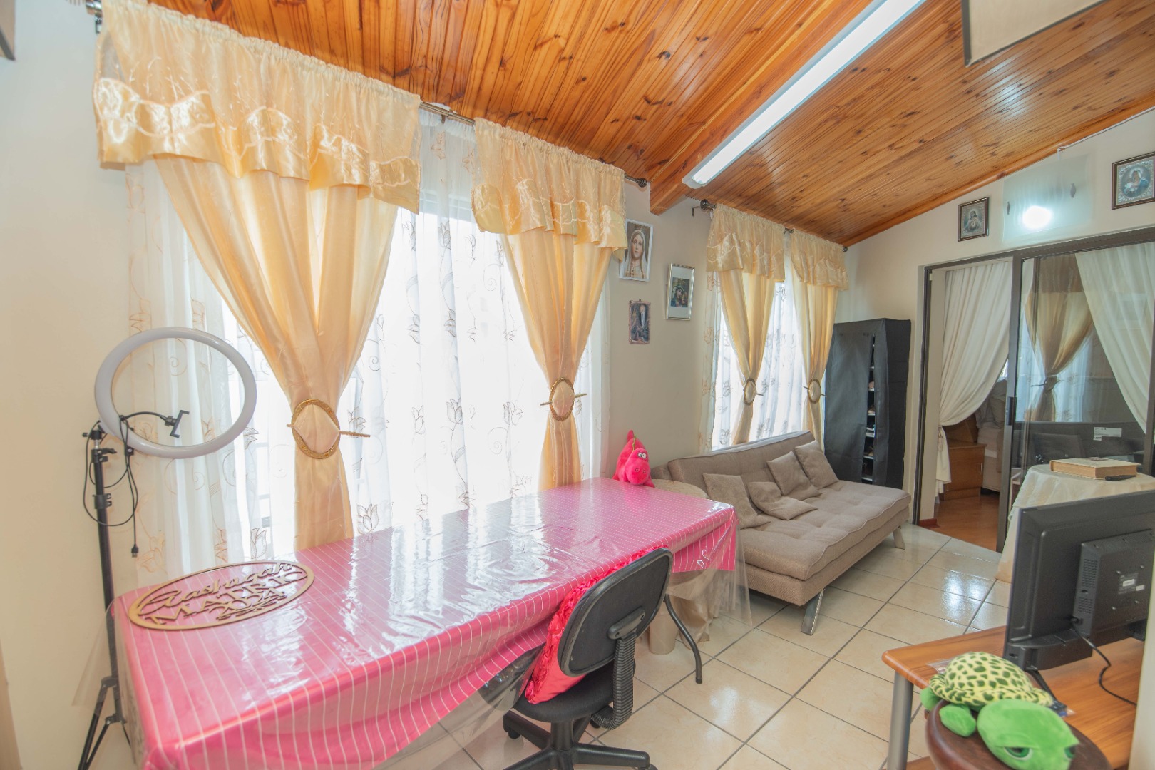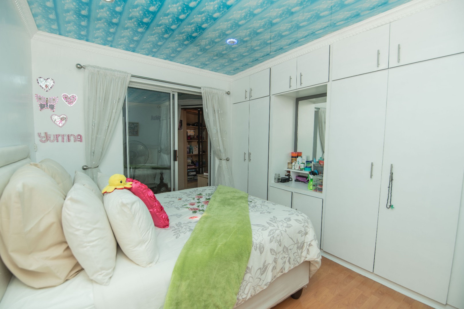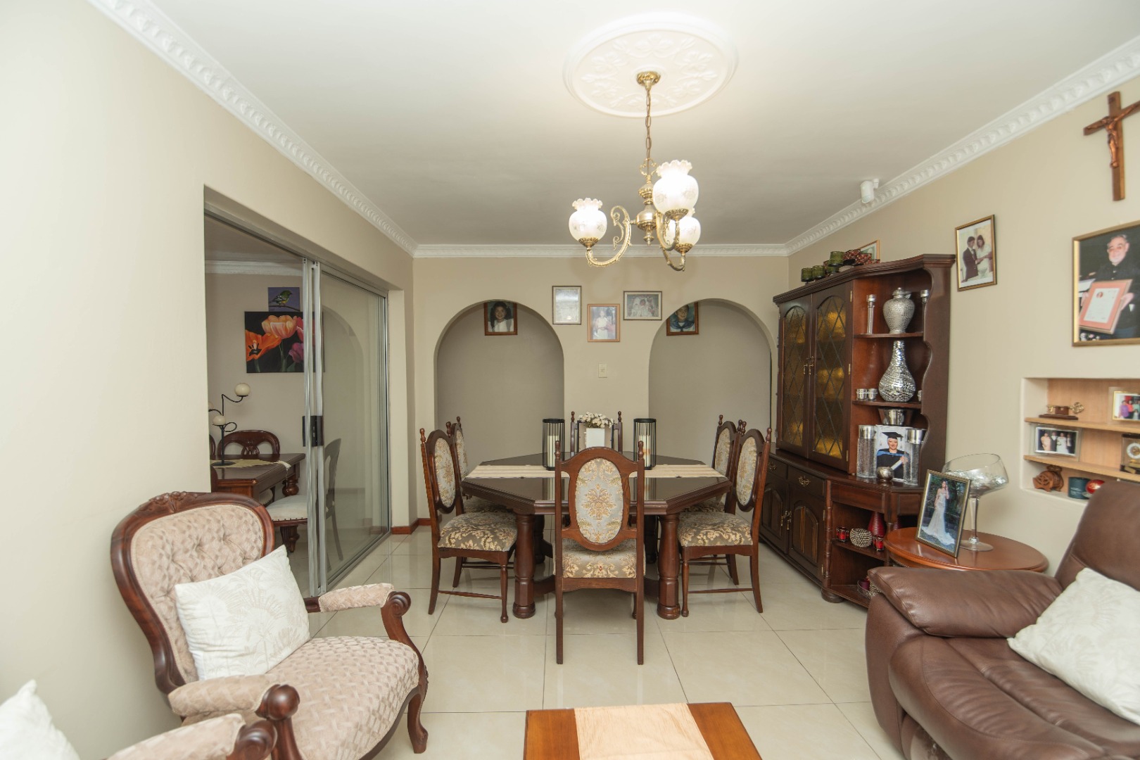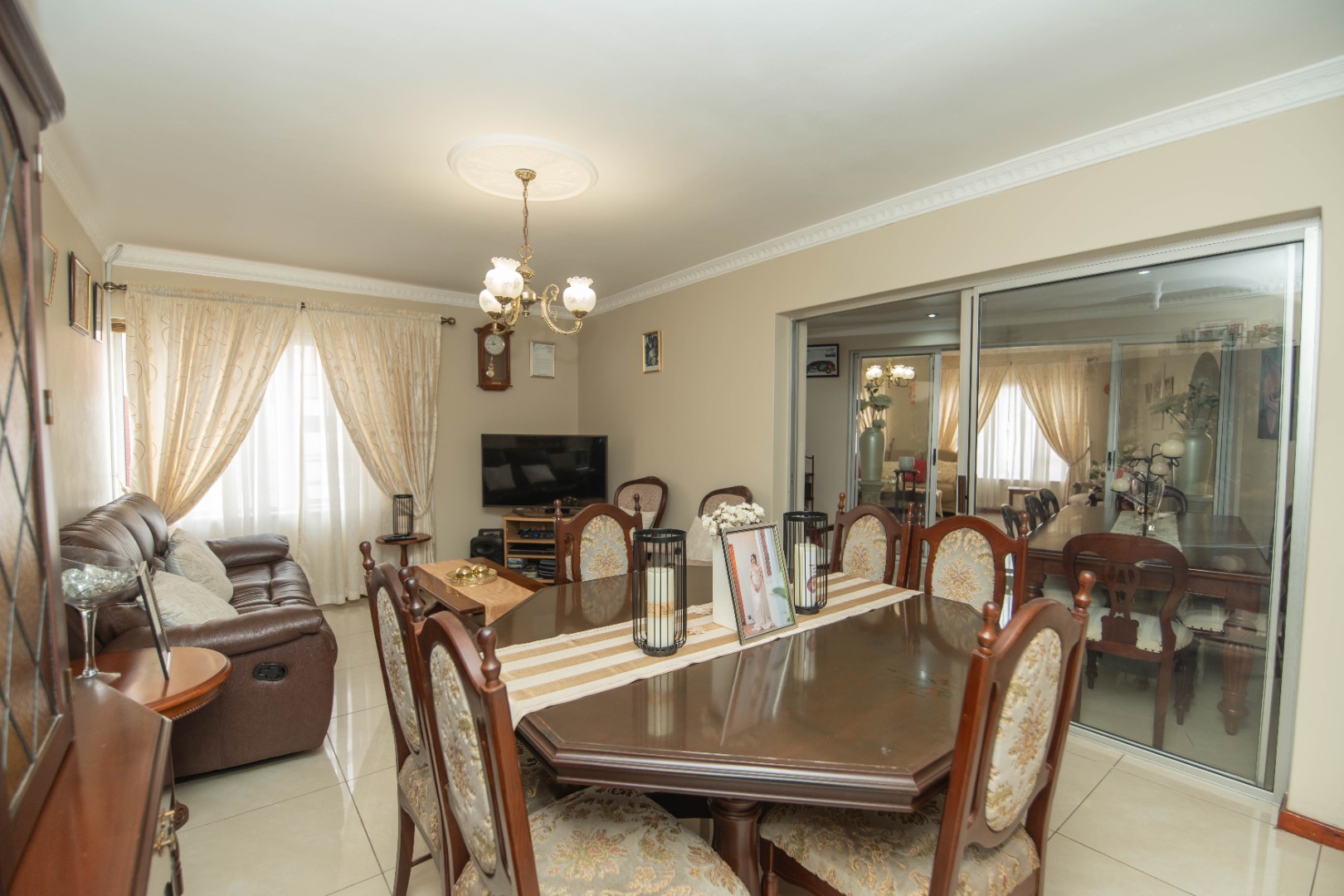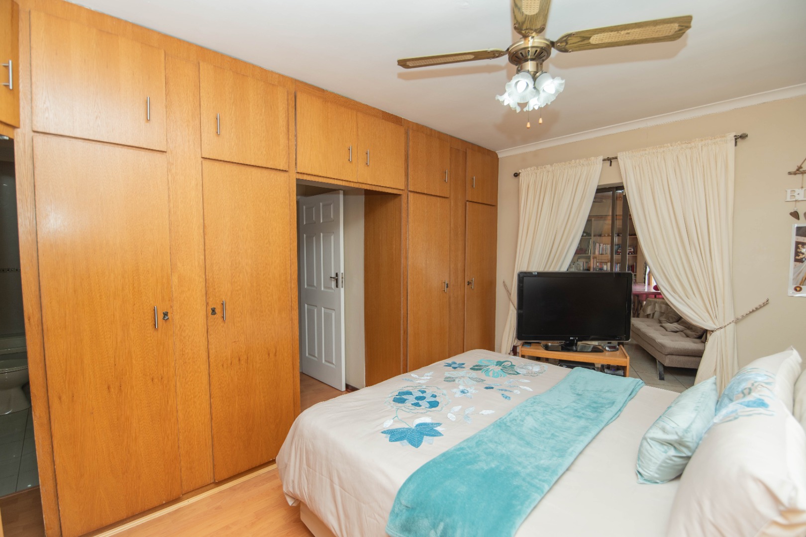 The home offers 4 bedrooms with laminated flooring and 3 bathrooms, two of which are en-suite, a lounge, dining area, and TV room, giving the family plenty of space to relax and entertain.