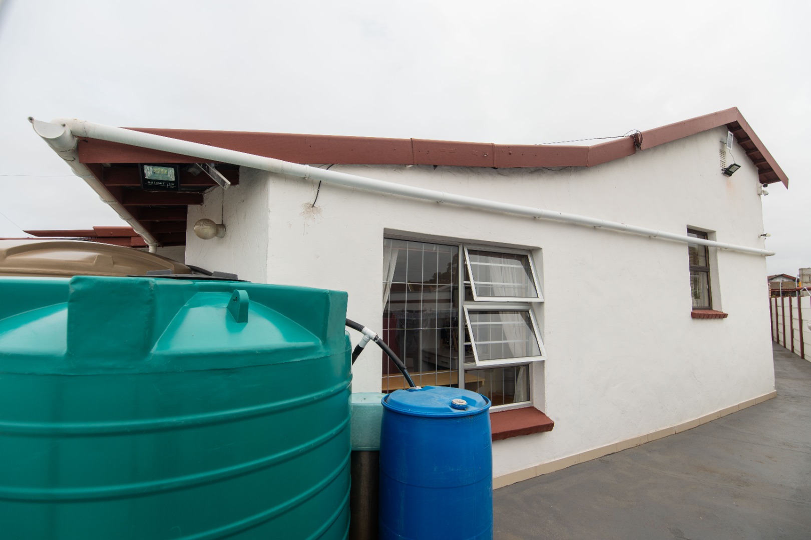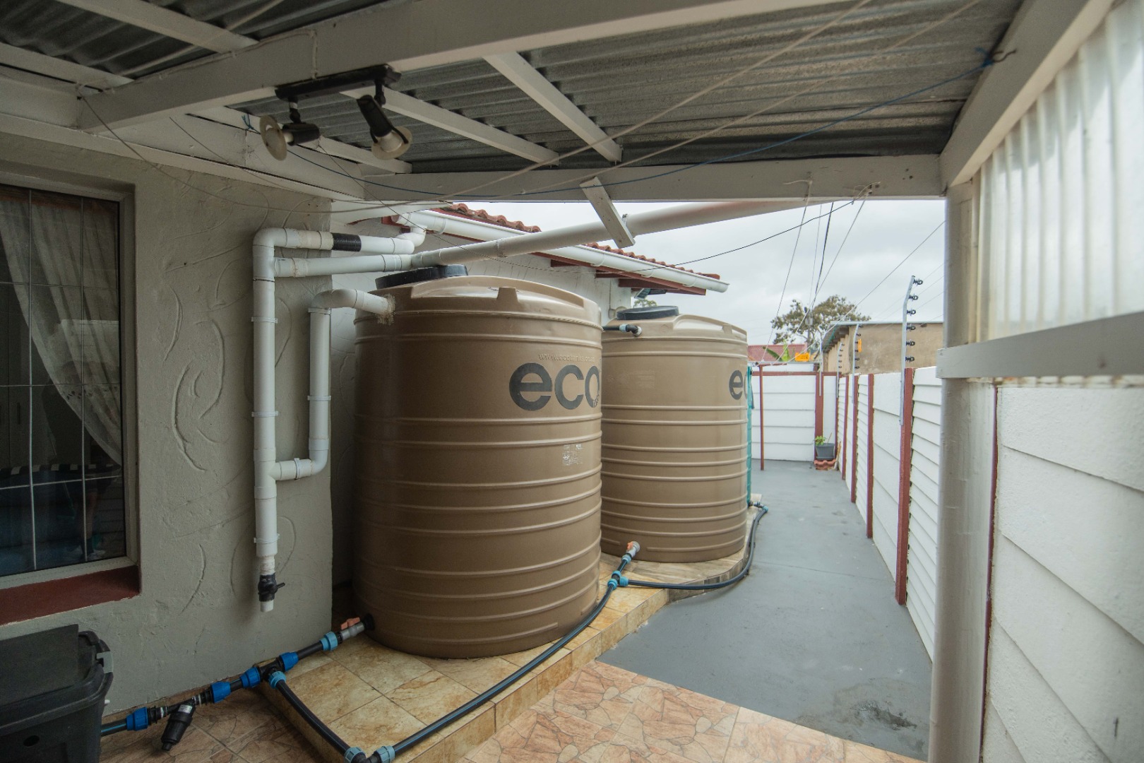 - 5 water tanks plumbed into the house