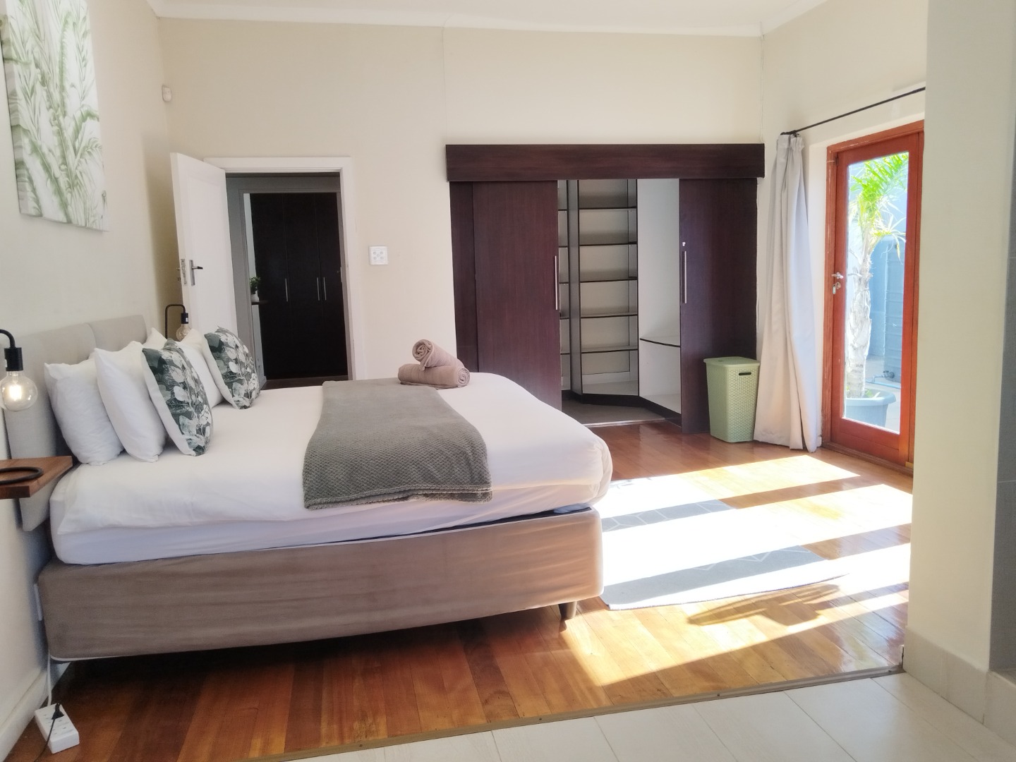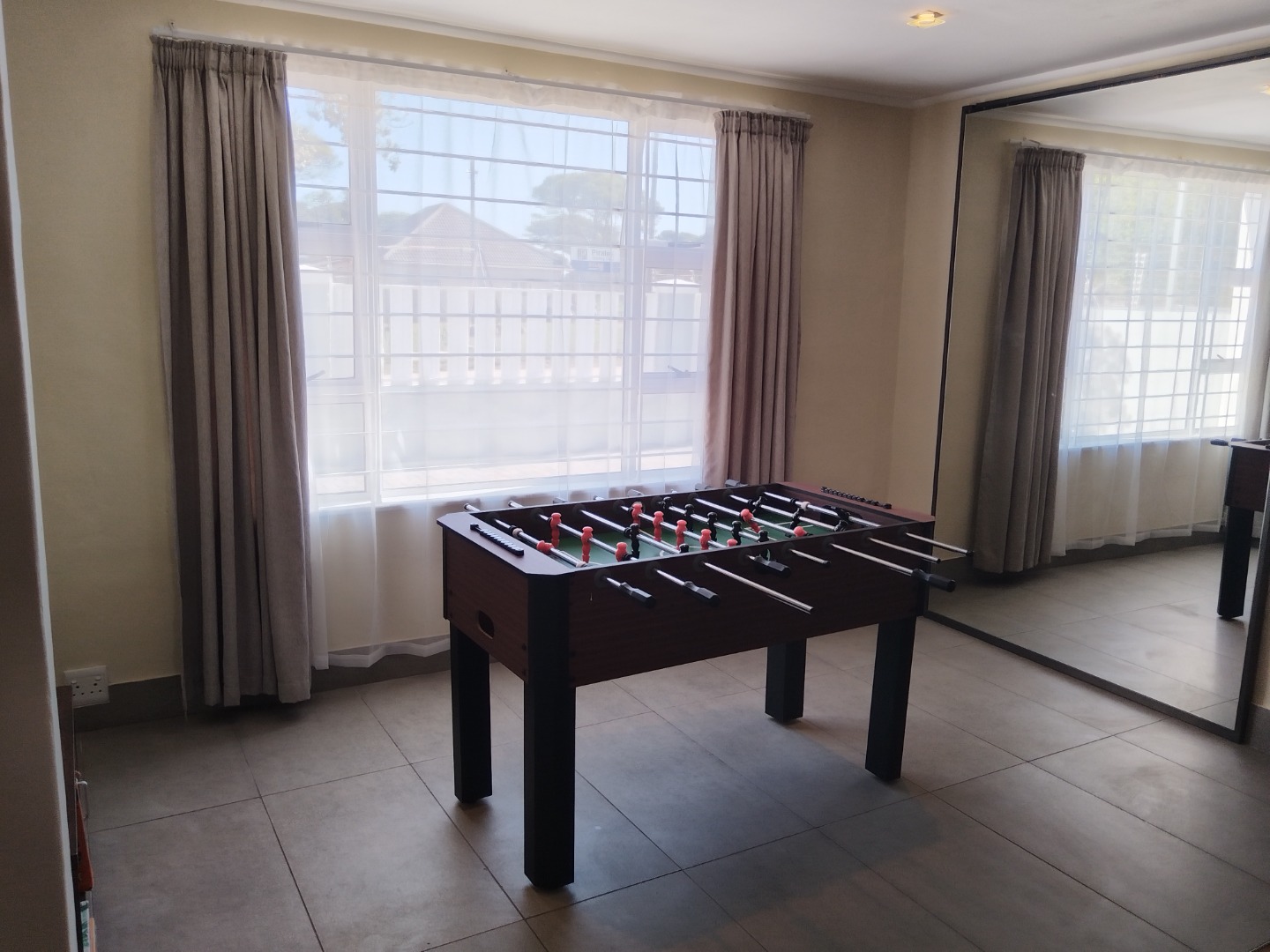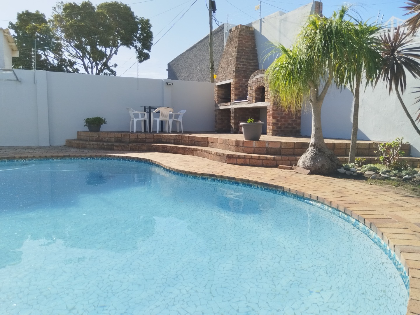 The home offers a seamless blend of comfort and luxury. The open-plan kitchen features modern finishes, a sleek island with stainless steel extractor, and blends effortlessly into the living area with polished wood floors and stylish décor. Enjoy entertaining on the covered patio, pool, and braai area, suggesting a relaxing resort style lounge area.