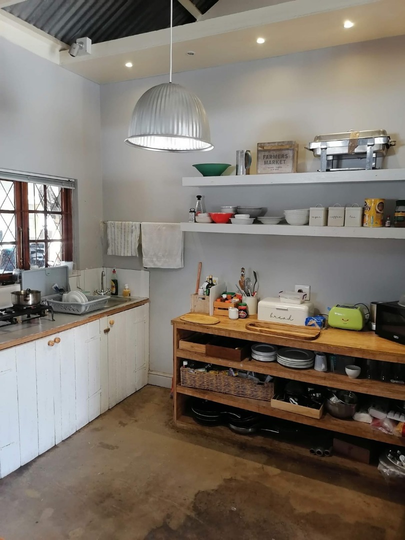 Open plan with high ceilings, white roof trusses and industrial light fittings, screeded flooring gives this home a modern feel.