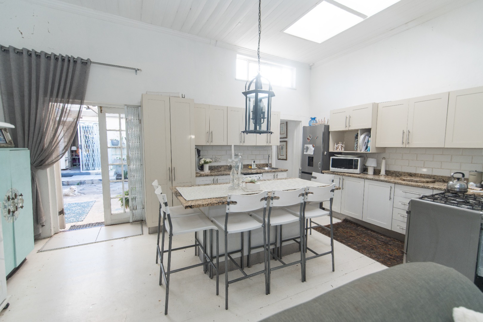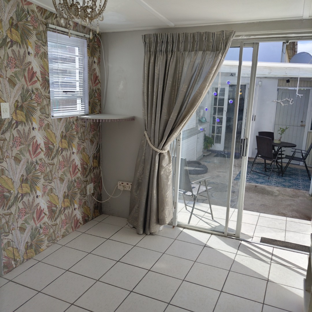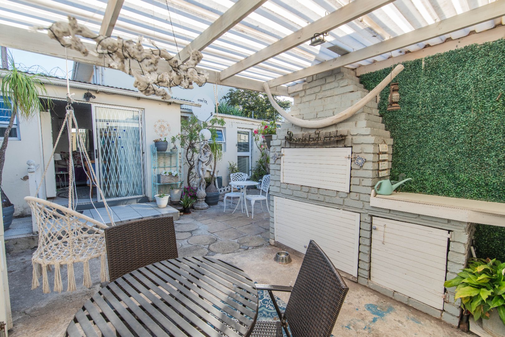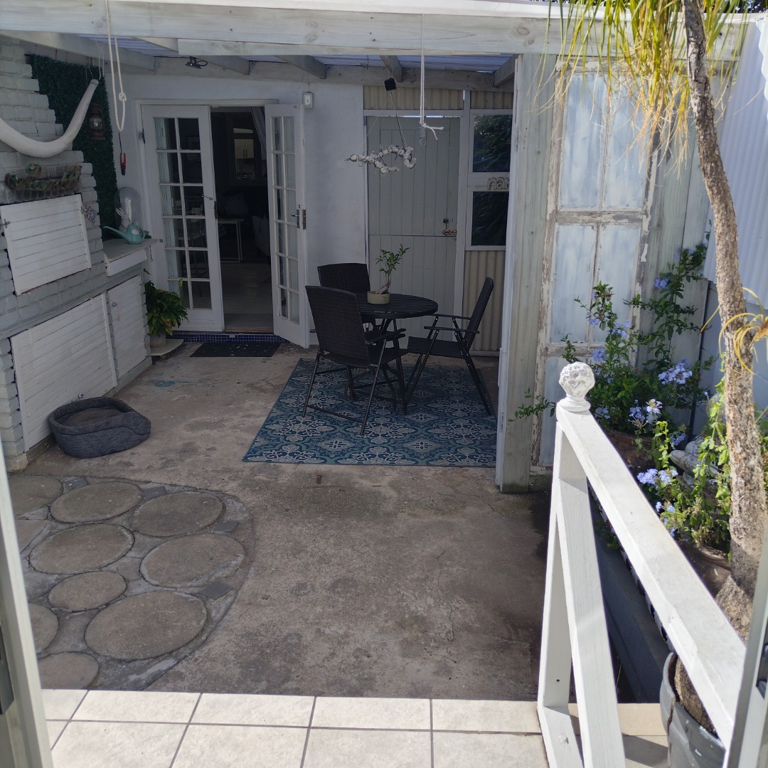 The kitchen opens to the back garden and private , cozy courtyard with an outdoor braai and slim line watertank.