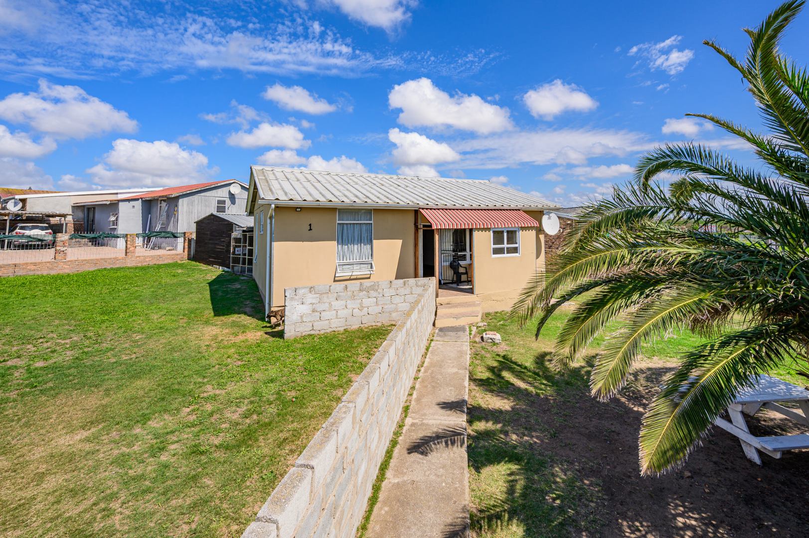 The home itself presents a comfortable living environment, featuring two spacious bedrooms, each thoughtfully equipped with built-in cupboards for ample storage. A large, inviting lounge seamlessly integrates with a dining area, creating a versatile space perfect for both relaxed family gatherings and entertaining guests. The generously sized bathroom further enhances the home's practicality, ensuring comfort for all residents.