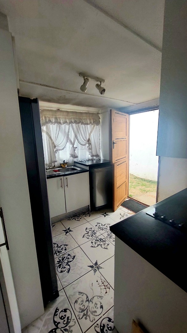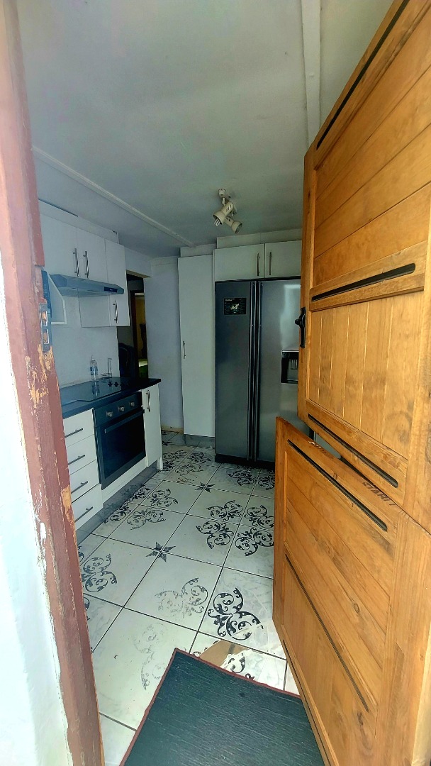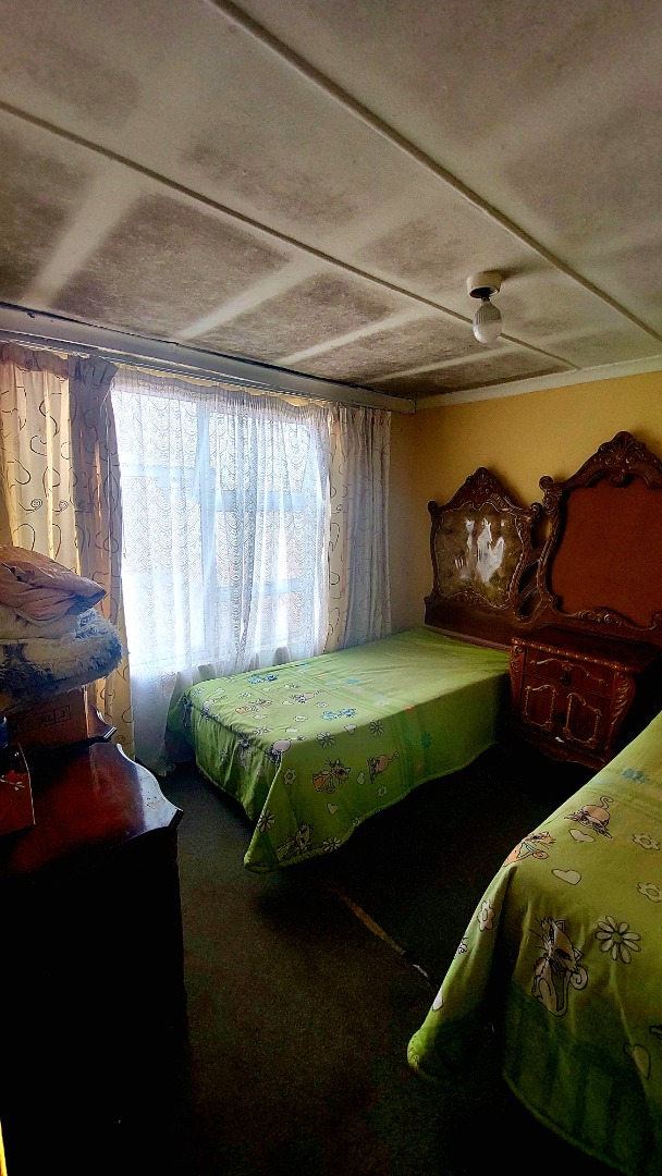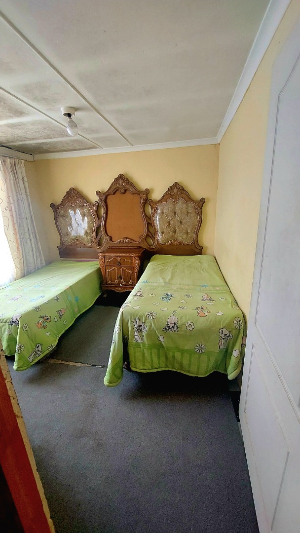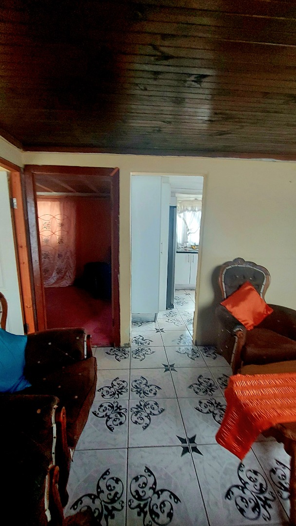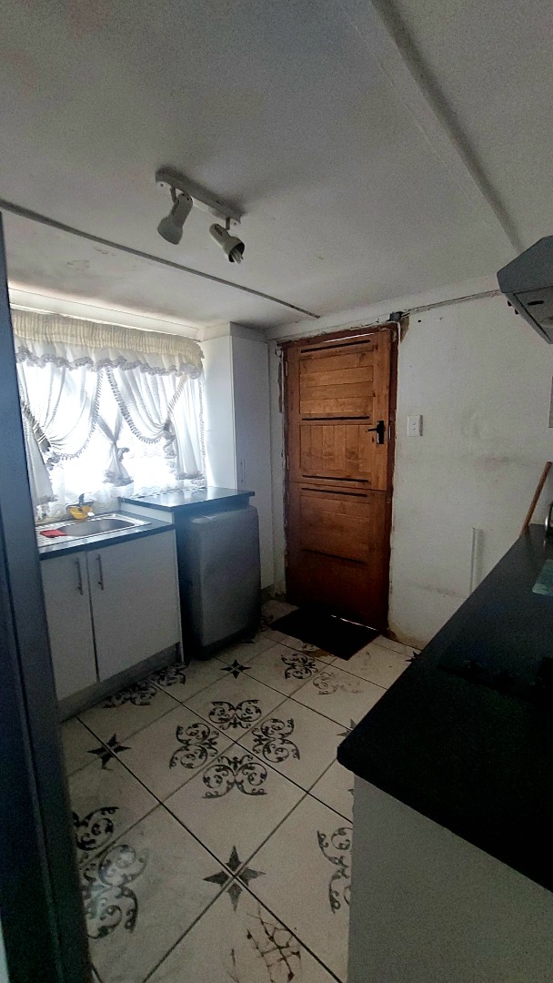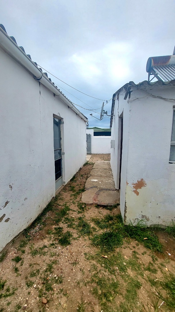 Located in Zwide, a vibrant Port Elizabeth suburb, this property offers a convenient setting within a well-established community, providing access to local amenities and transport links. This substantial property features a functional layout. The lounge area showcases patterned tiled flooring and a distinctive dark wooden slatted ceiling. The compact kitchen is equipped with white base cabinets, black countertops, and decorative black and white tiled flooring, offering a practical space with direct outdoor access via a wooden split door. The home boasts seven bedrooms and one bathroom, presenting ample accommodation options. While some bedrooms feature traditional elements and natural light, others offer a canvas for modernization, allowing owners to infuse personal style. The property is secured by a white perimeter wall with a metal pedestrian gate. A dedicated garage provides convenient parking and additional storage. Further amenities include an outside toilet and a flatlet, adding versatility. Security features like burglar bars and a security gate are present. Set on a 286 sqm erf, this Zwide property represents a significant opportunity for a large family home or an investment with renovation potential. A solar water heater is also present. Key Features: * 7 Bedrooms, 1 Bathroom * 1 Lounge, 1 Kitchen * Dedicated Garage/Storage * White Perimeter Wall with Gate * Flatlet and Outside Toilet * Burglar Bars and Security Gate * 286 sqm Erf Size * Solar Water Heater