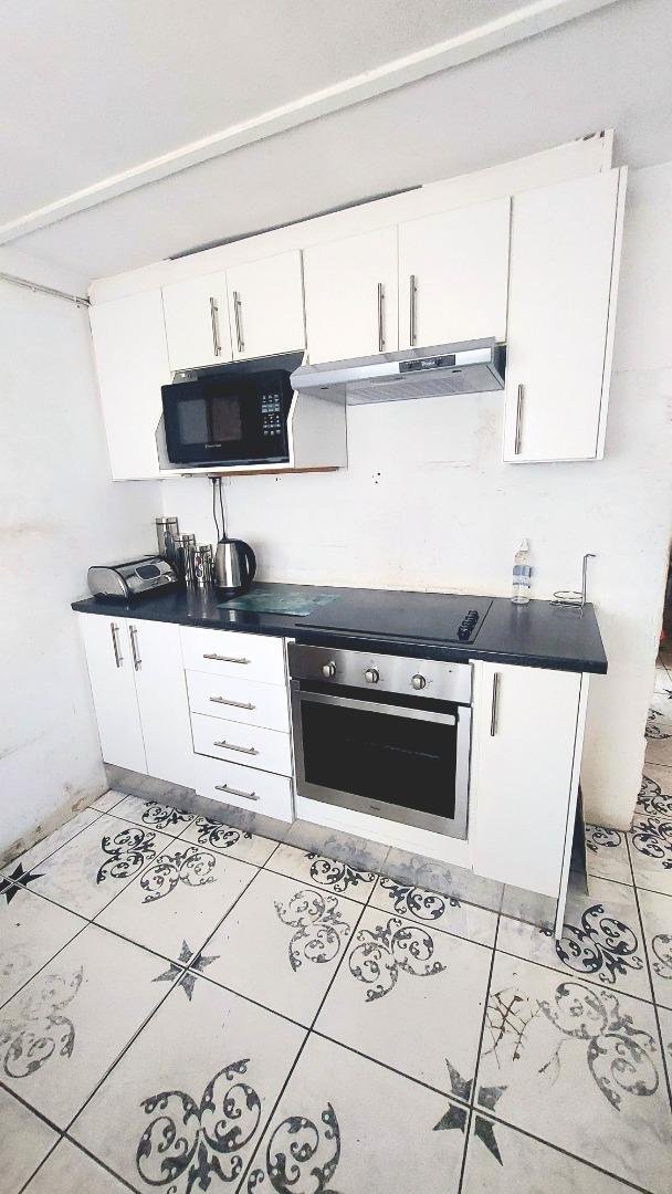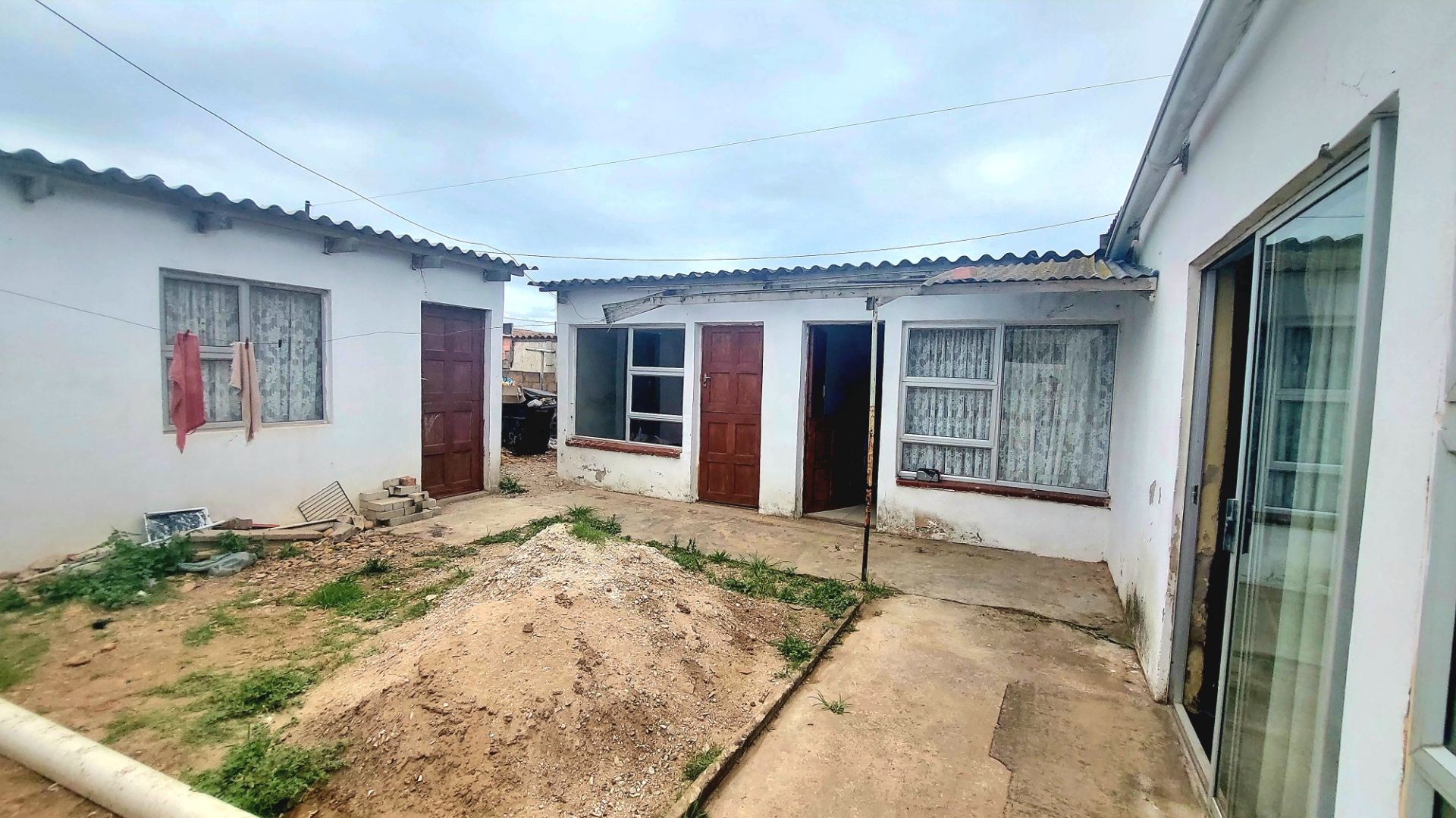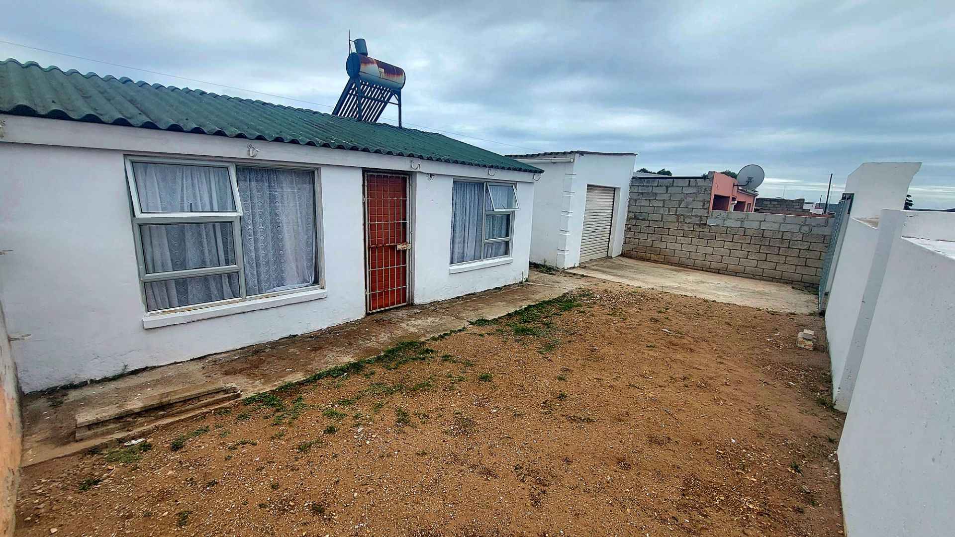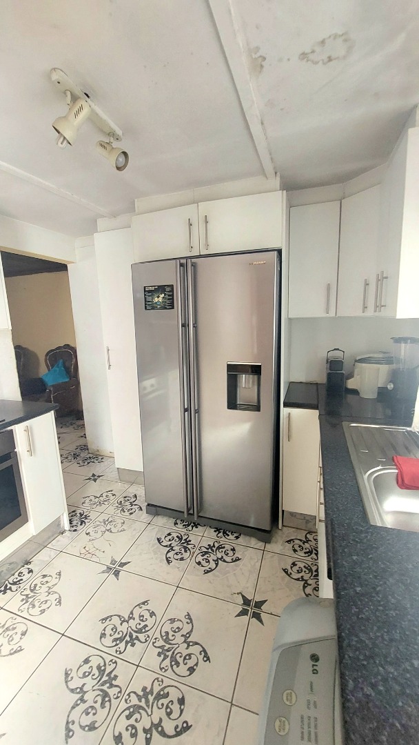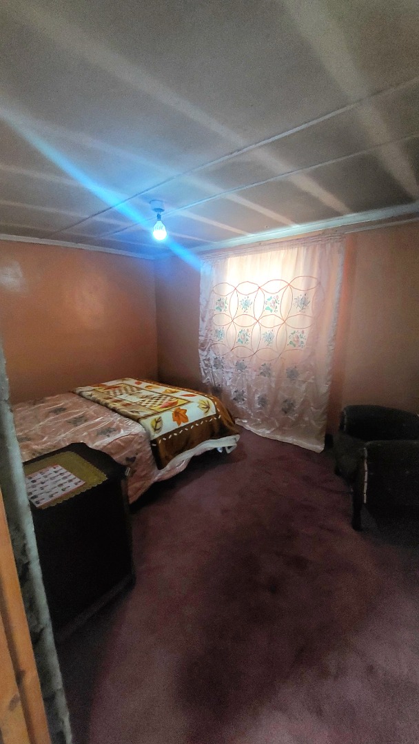 Located in Zwide, a vibrant Port Elizabeth suburb, this property offers a convenient setting within a well-established community, providing access to local amenities and transport links. This substantial property features a functional layout. The lounge area showcases patterned tiled flooring and a distinctive dark wooden slatted ceiling. The compact kitchen is equipped with white base cabinets, black countertops, and decorative black and white tiled flooring, offering a practical space with direct outdoor access via a wooden split door. The home boasts seven bedrooms and one bathroom, presenting ample accommodation options. While some bedrooms feature traditional elements and natural light, others offer a canvas for modernization, allowing owners to infuse personal style. The property is secured by a white perimeter wall with a metal pedestrian gate. A dedicated garage provides convenient parking and additional storage. Further amenities include an outside toilet and a flatlet, adding versatility. Security features like burglar bars and a security gate are present. Set on a 286 sqm erf, this Zwide property represents a significant opportunity for a large family home or an investment with renovation potential. A solar water heater is also present. Key Features: * 7 Bedrooms, 1 Bathroom * 1 Lounge, 1 Kitchen * Dedicated Garage/Storage * White Perimeter Wall with Gate * Flatlet and Outside Toilet * Burglar Bars and Security Gate * 286 sqm Erf Size * Solar Water Heater