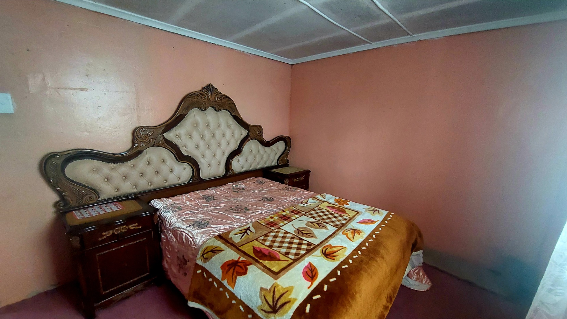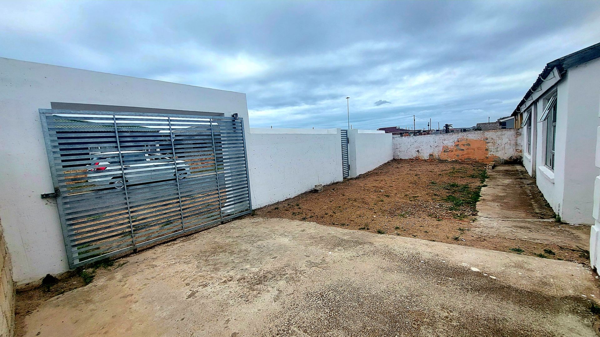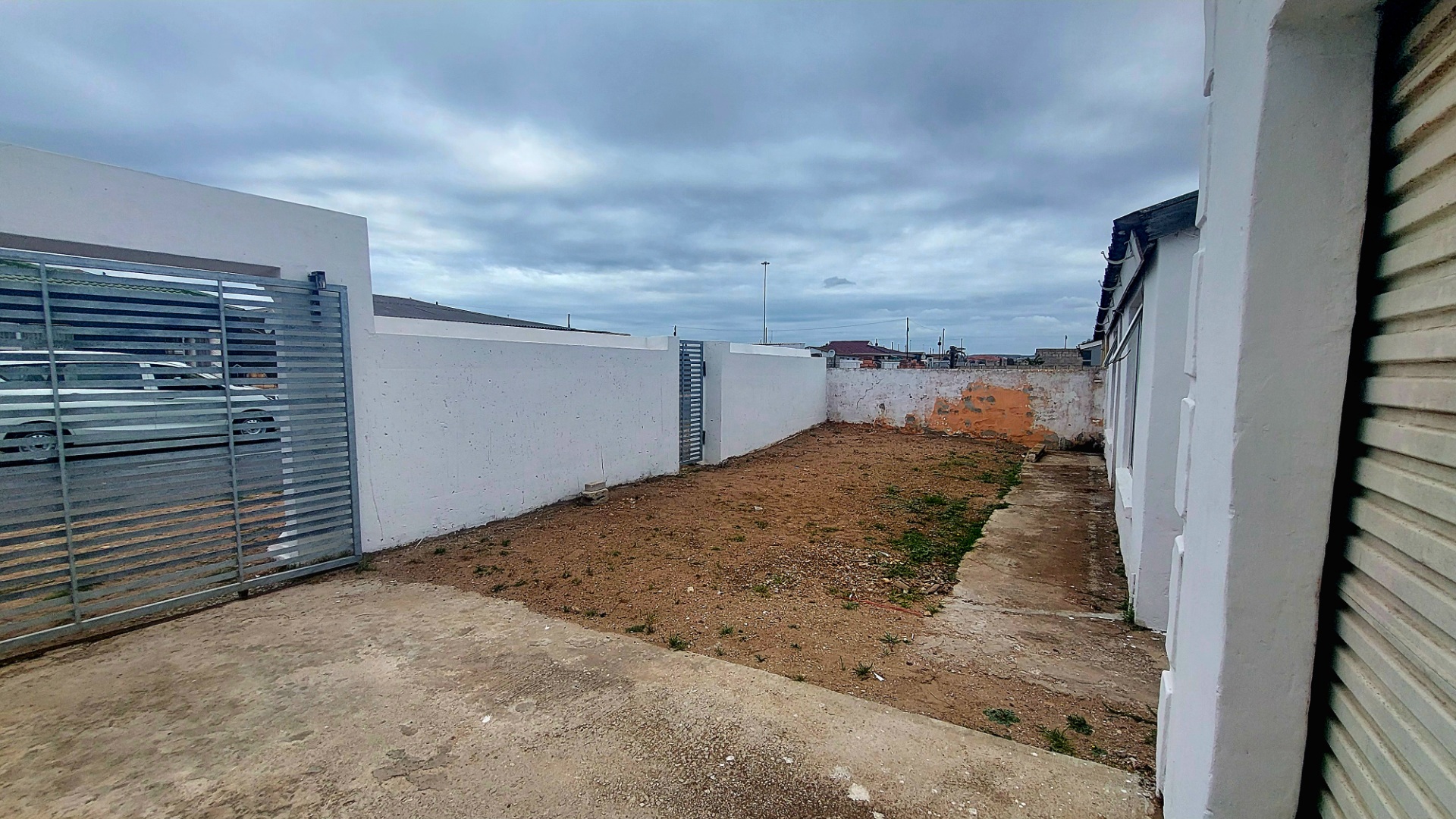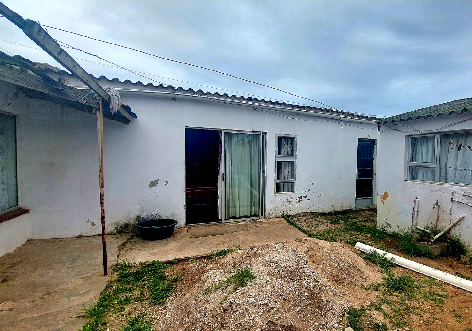 Located in Zwide, a vibrant Port Elizabeth suburb, this property offers a convenient setting within a well-established community, providing access to local amenities and transport links. This substantial property features a functional layout. The lounge area showcases patterned tiled flooring and a distinctive dark wooden slatted ceiling. The compact kitchen is equipped with white base cabinets, black countertops, and decorative black and white tiled flooring, offering a practical space with direct outdoor access via a wooden split door. The home boasts seven bedrooms and one bathroom, presenting ample accommodation options. While some bedrooms feature traditional elements and natural light, others offer a canvas for modernization, allowing owners to infuse personal style. The property is secured by a white perimeter wall with a metal pedestrian gate. A dedicated garage provides convenient parking and additional storage. Further amenities include an outside toilet and a flatlet, adding versatility. Security features like burglar bars and a security gate are present. Set on a 286 sqm erf, this Zwide property represents a significant opportunity for a large family home or an investment with renovation potential. A solar water heater is also present. Key Features: * 7 Bedrooms, 1 Bathroom * 1 Lounge, 1 Kitchen * Dedicated Garage/Storage * White Perimeter Wall with Gate * Flatlet and Outside Toilet * Burglar Bars and Security Gate * 286 sqm Erf Size * Solar Water Heater