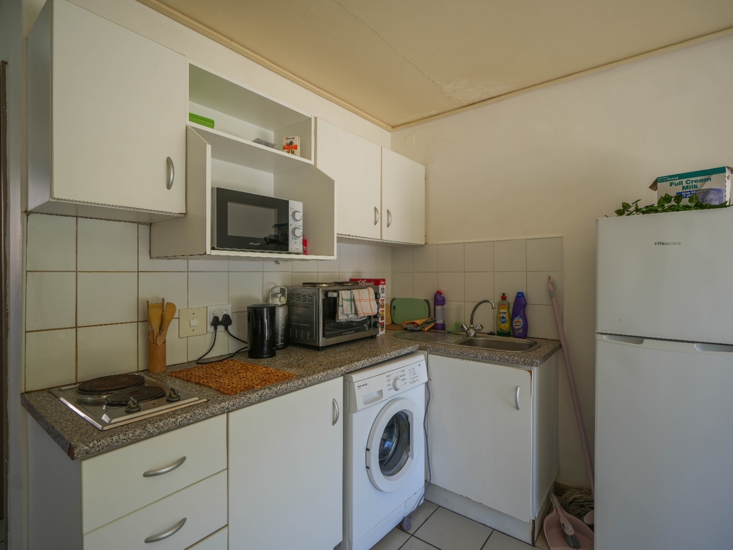 - Unit comes with washing machine, stove, fridge, microwave