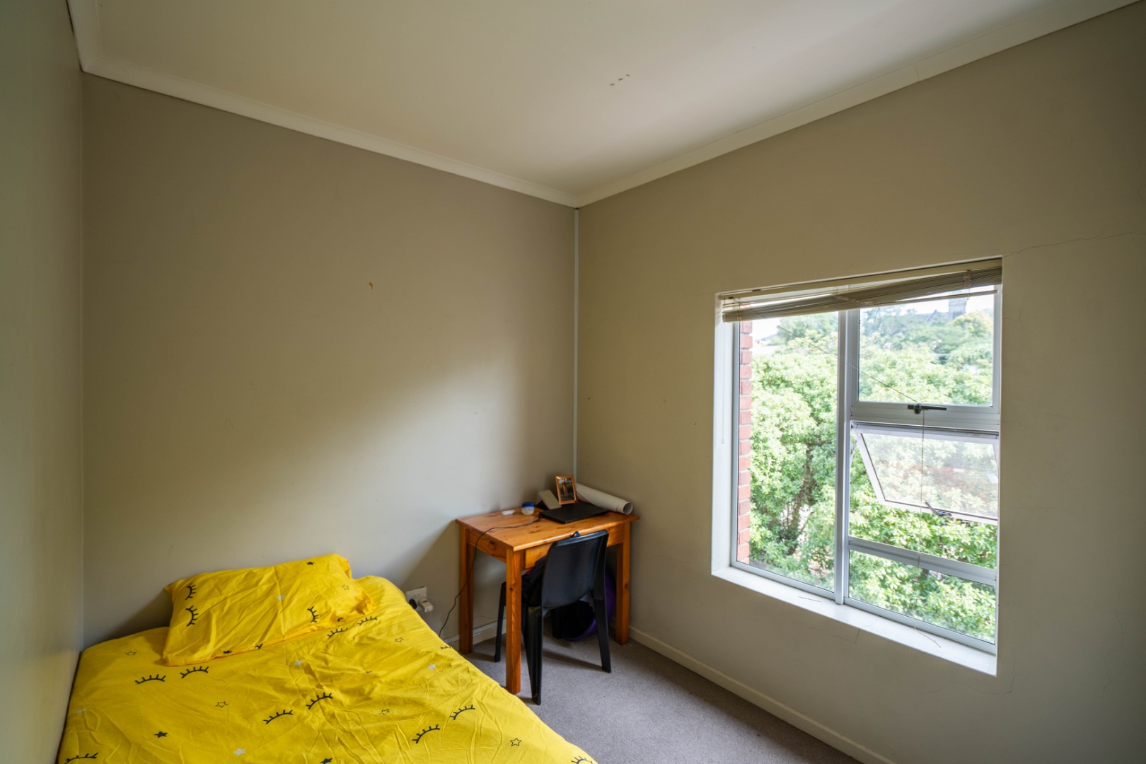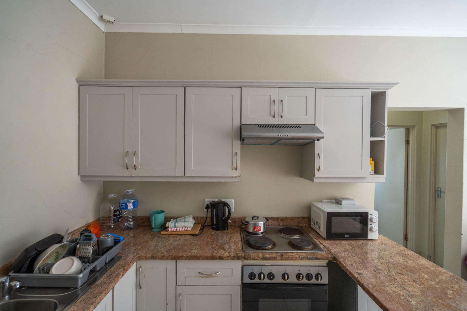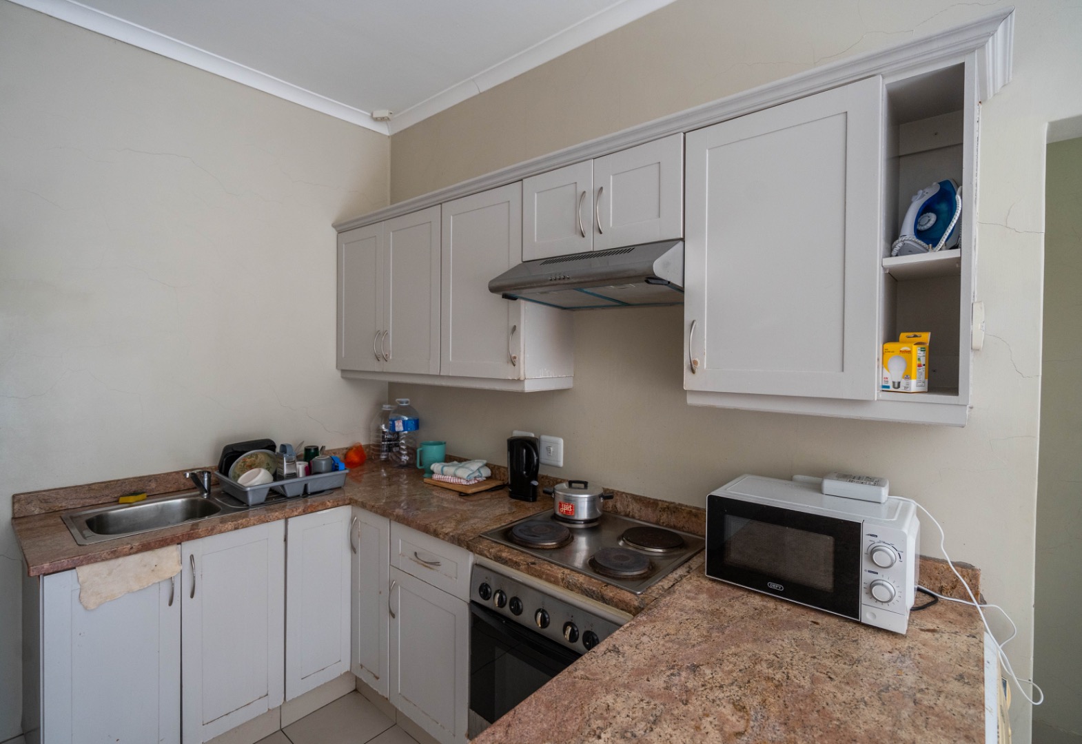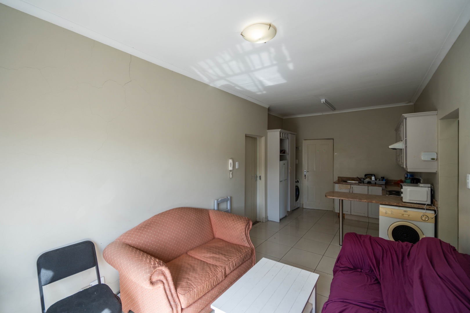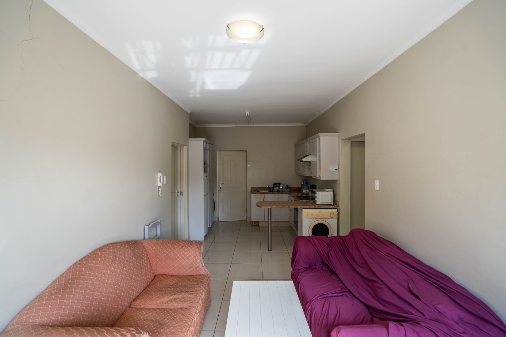 This spacious apartment is on the top floor of 3 on Luke Complex and is in the centre of Grahamstown at number 3 Luke Street (as the name suggests). It is situated close to Rhodes University and is in within walking distance of the new spar and Peppergrove Mall. Included in the sale of the apartment is: stove, oven & extractor fan, fridge-freezer combination, washer/dryer, microwave, marble countertops, blinds, wireless, DSTV & Telkom connections and panel heating in rooms.