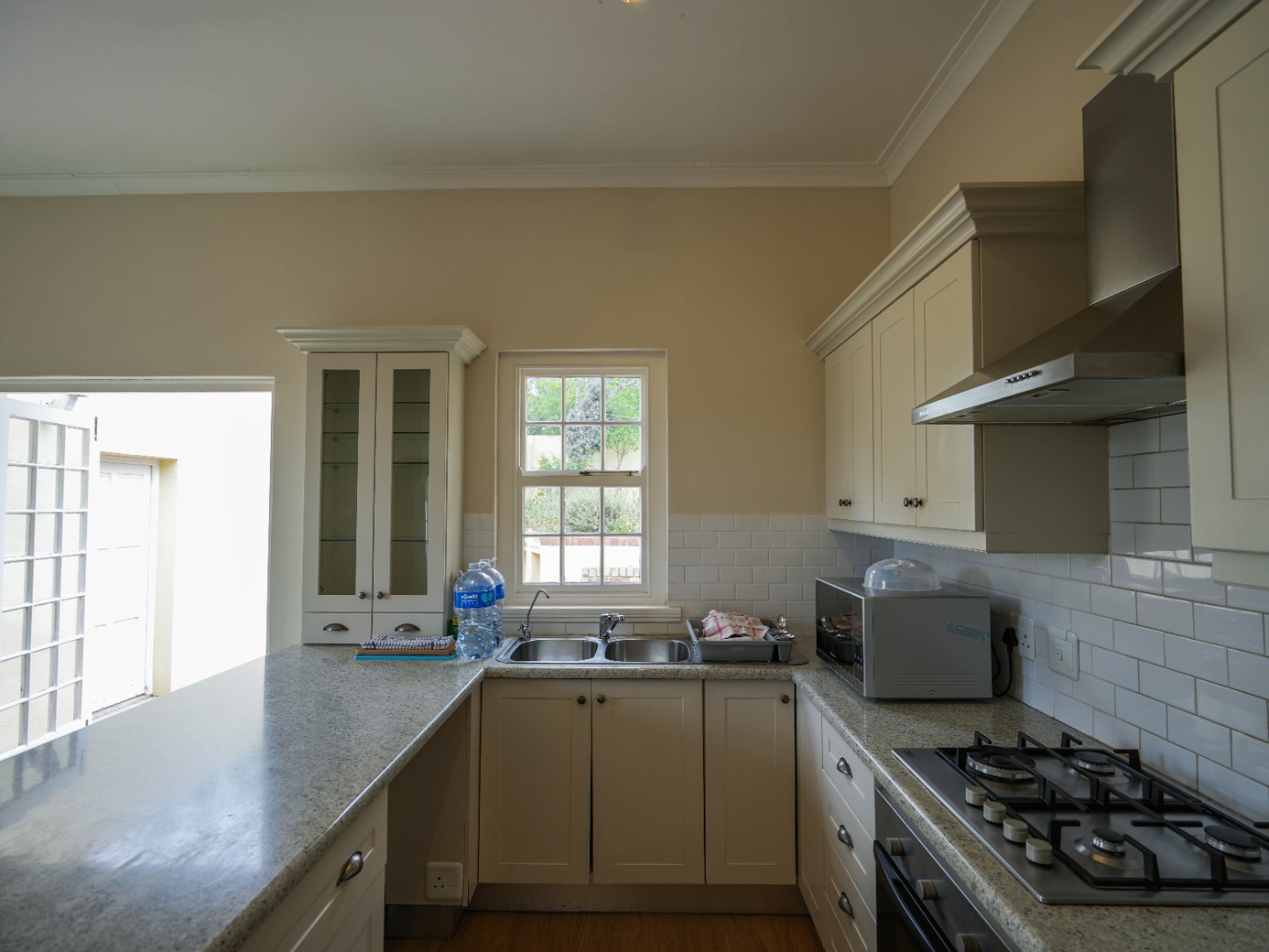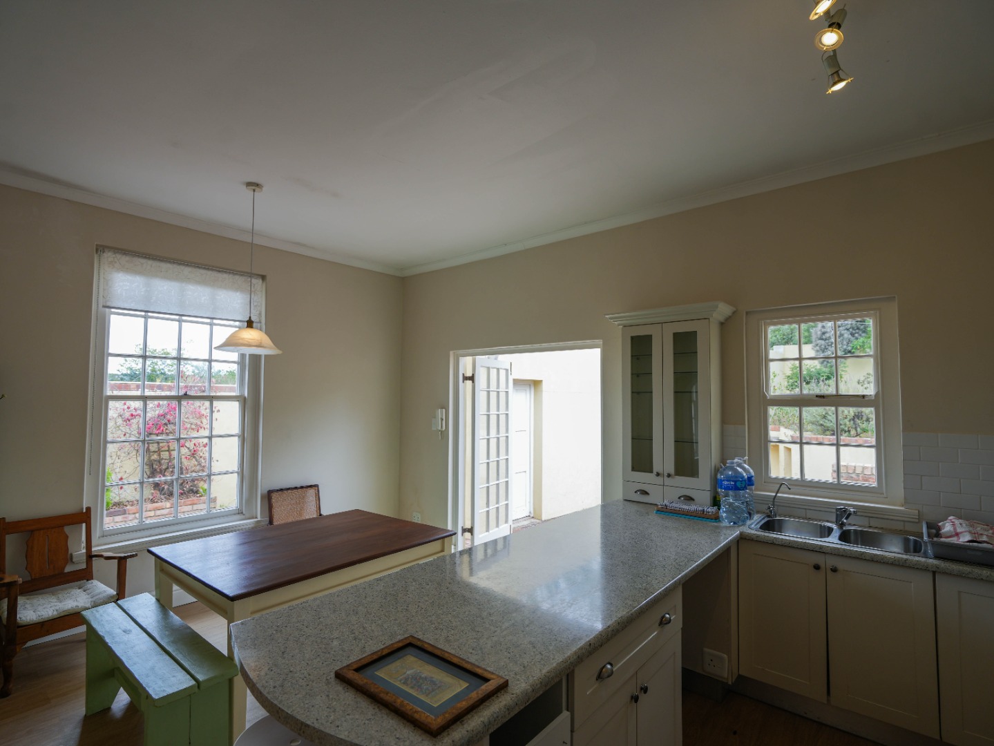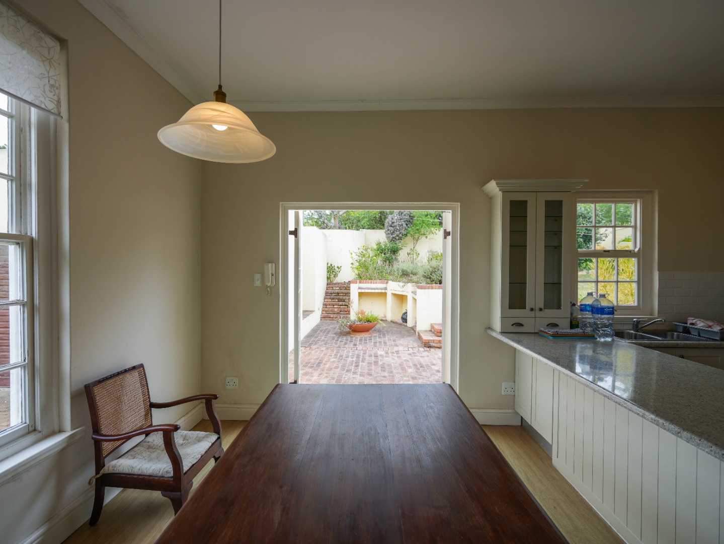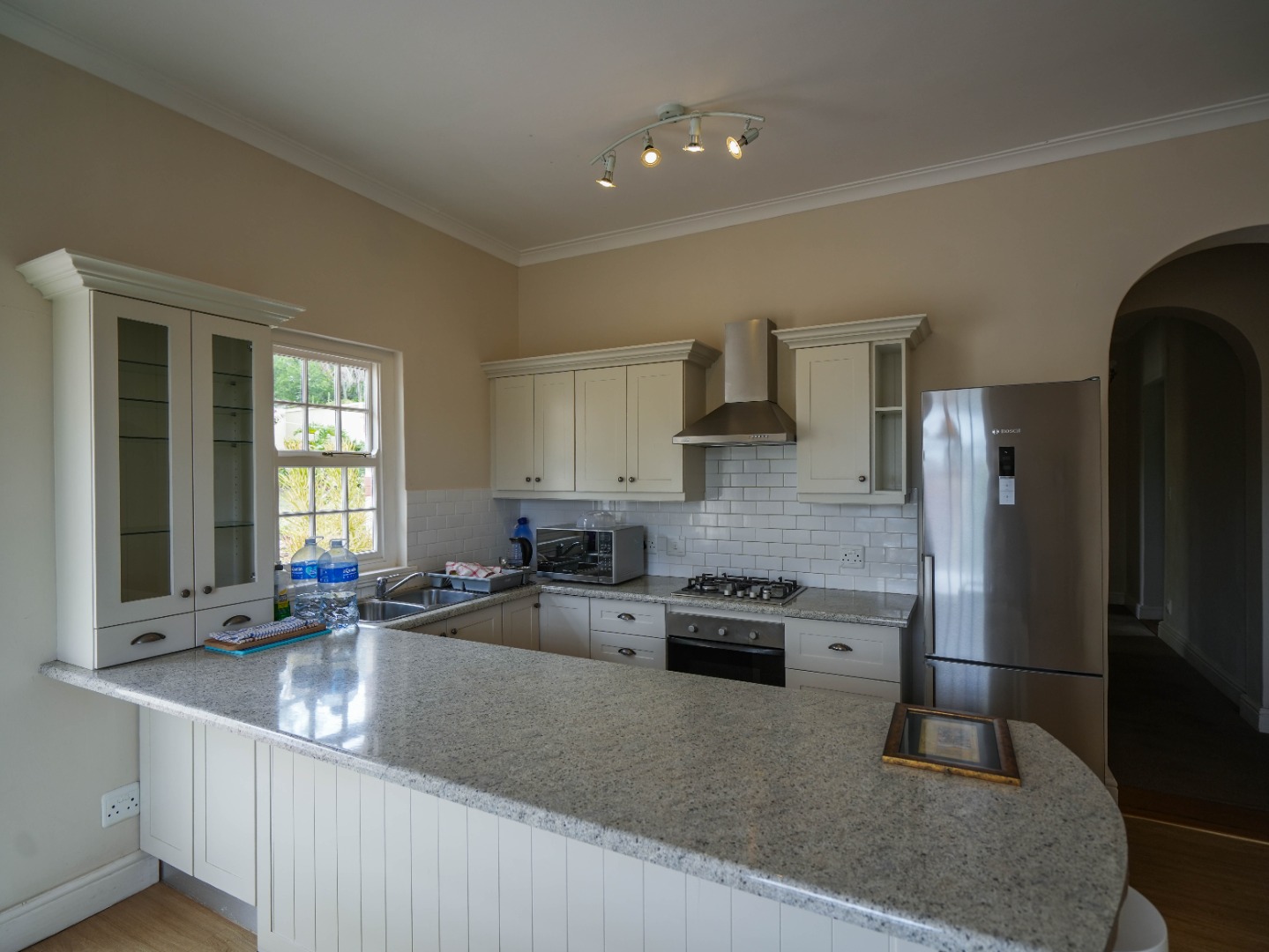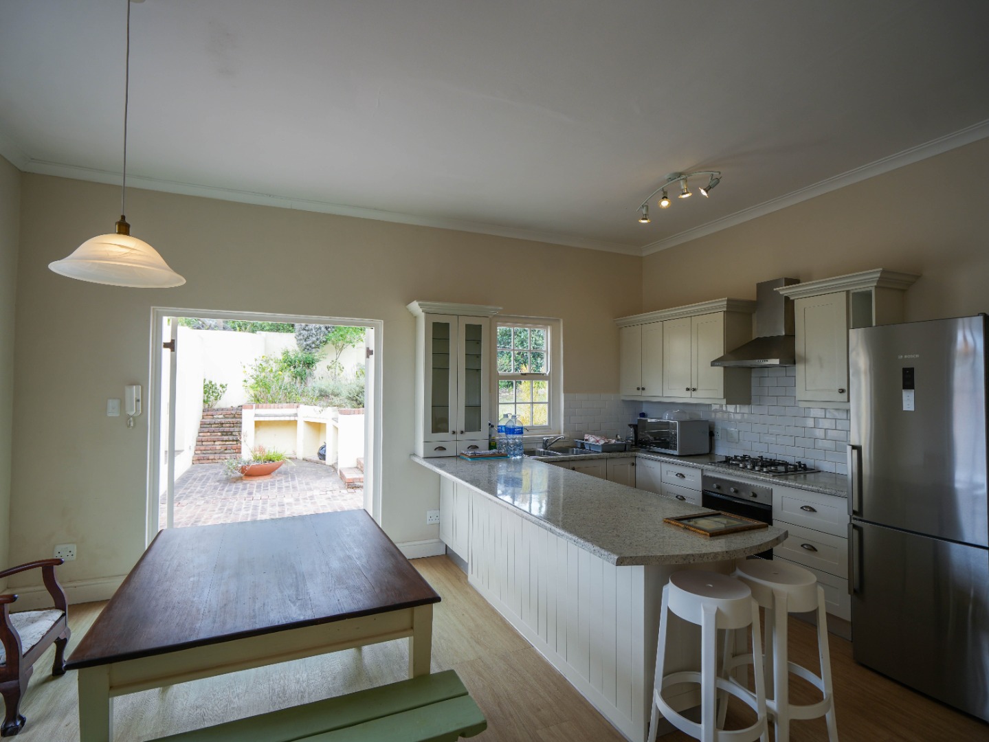 - Modern kitchen with electric/gas oven and dining room with double doors leading out to a magical enclosed and private garden with a braai area