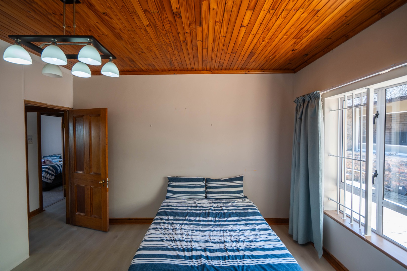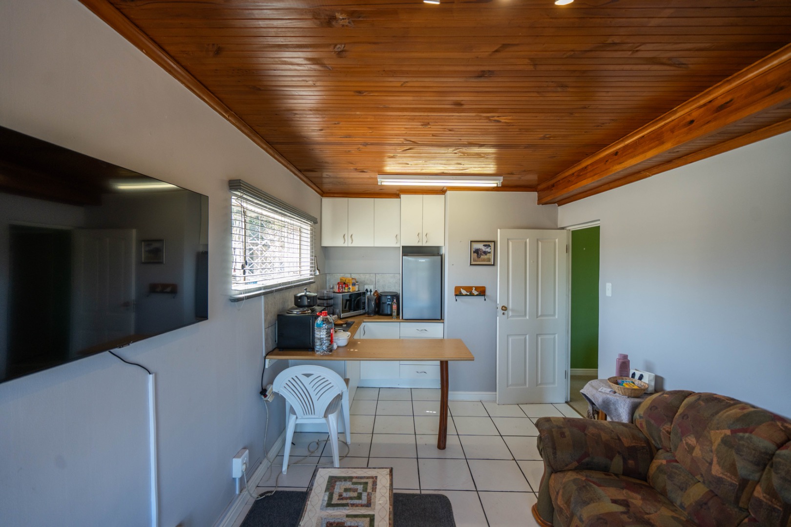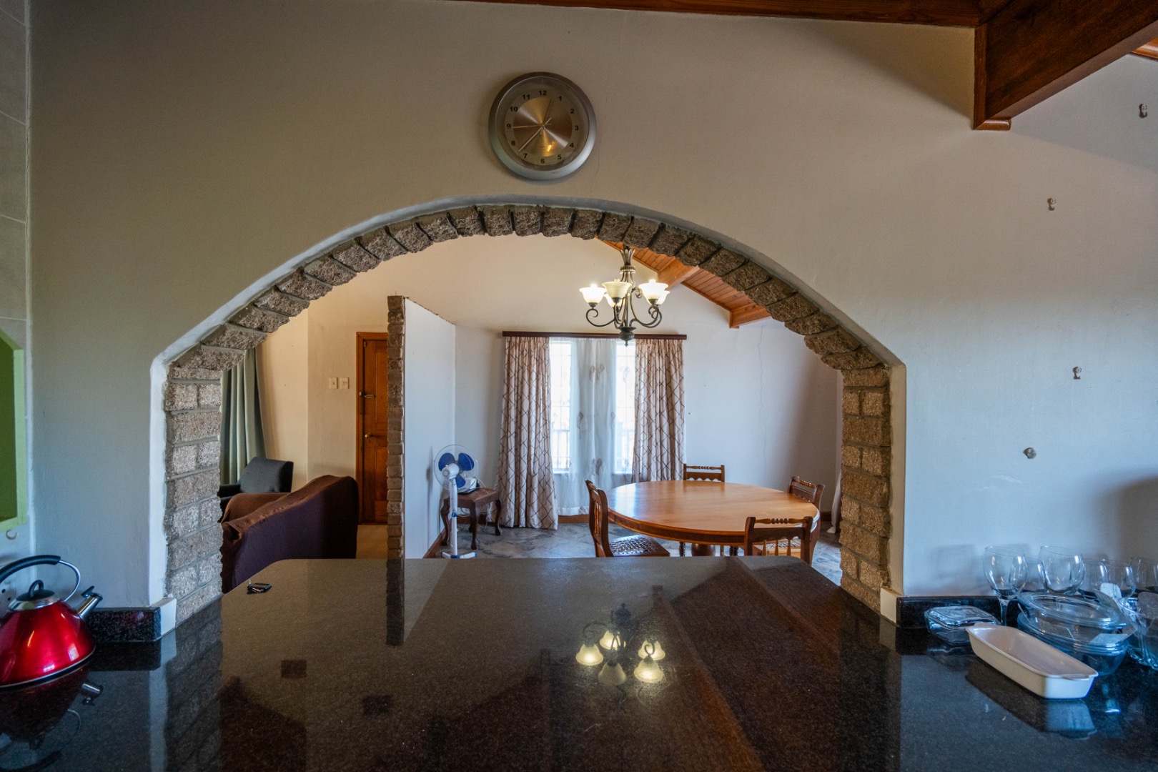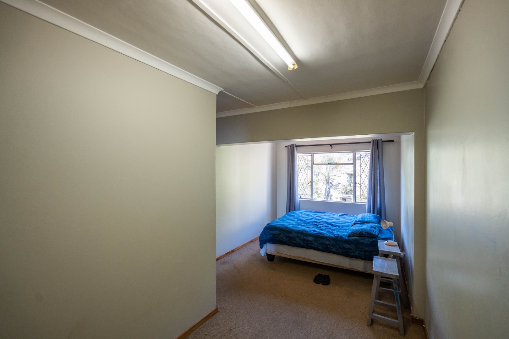 UPSTAIRS FLAT OFFERS: Magnificent view of Grahamstown. Spacious one bedroom with BIC and an open plan lounge/kitchen with aluminium doors leading out to a wooden deck which overlooks our city.