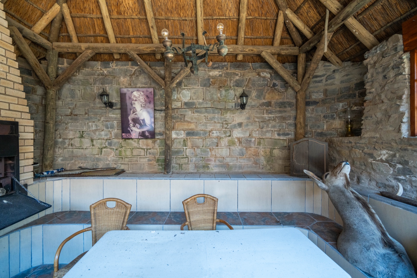 • TV Lounge with laminated flooring with sliding door out to enclosed entertainment area and braai room