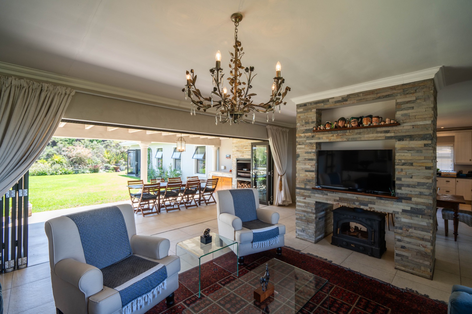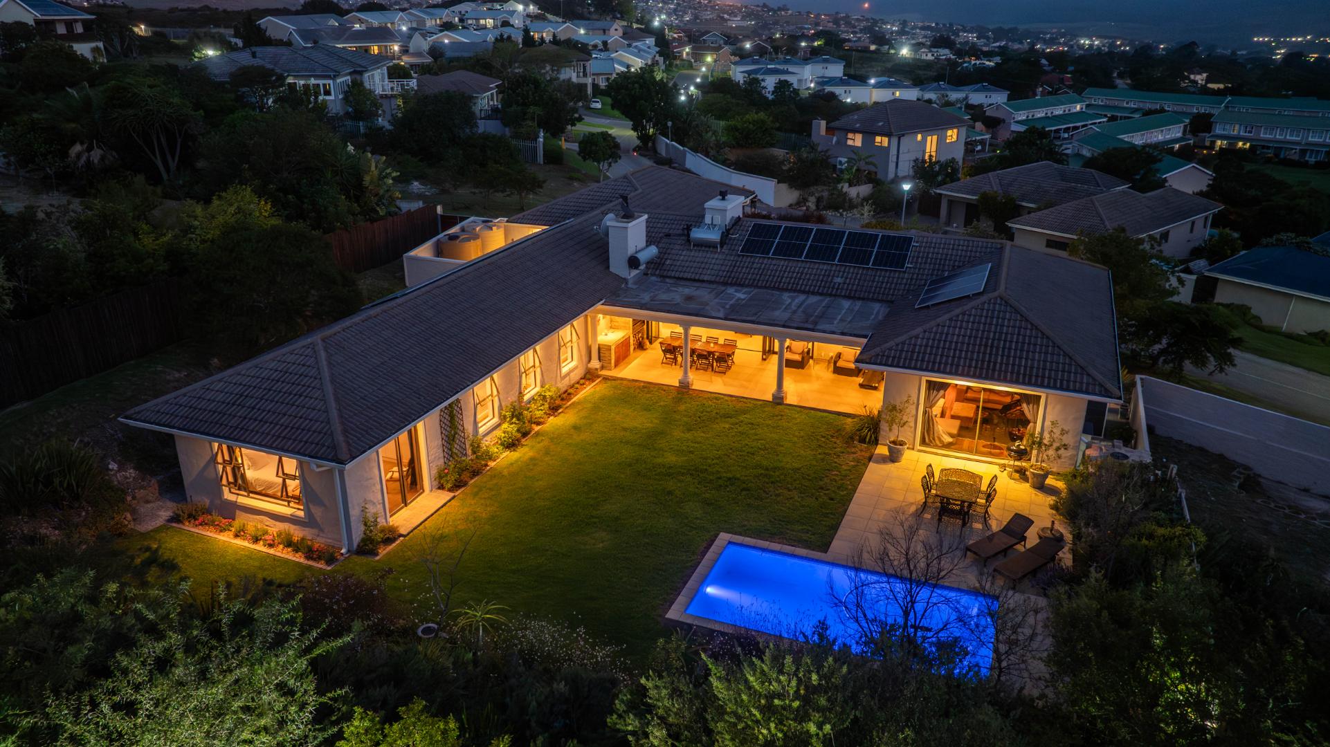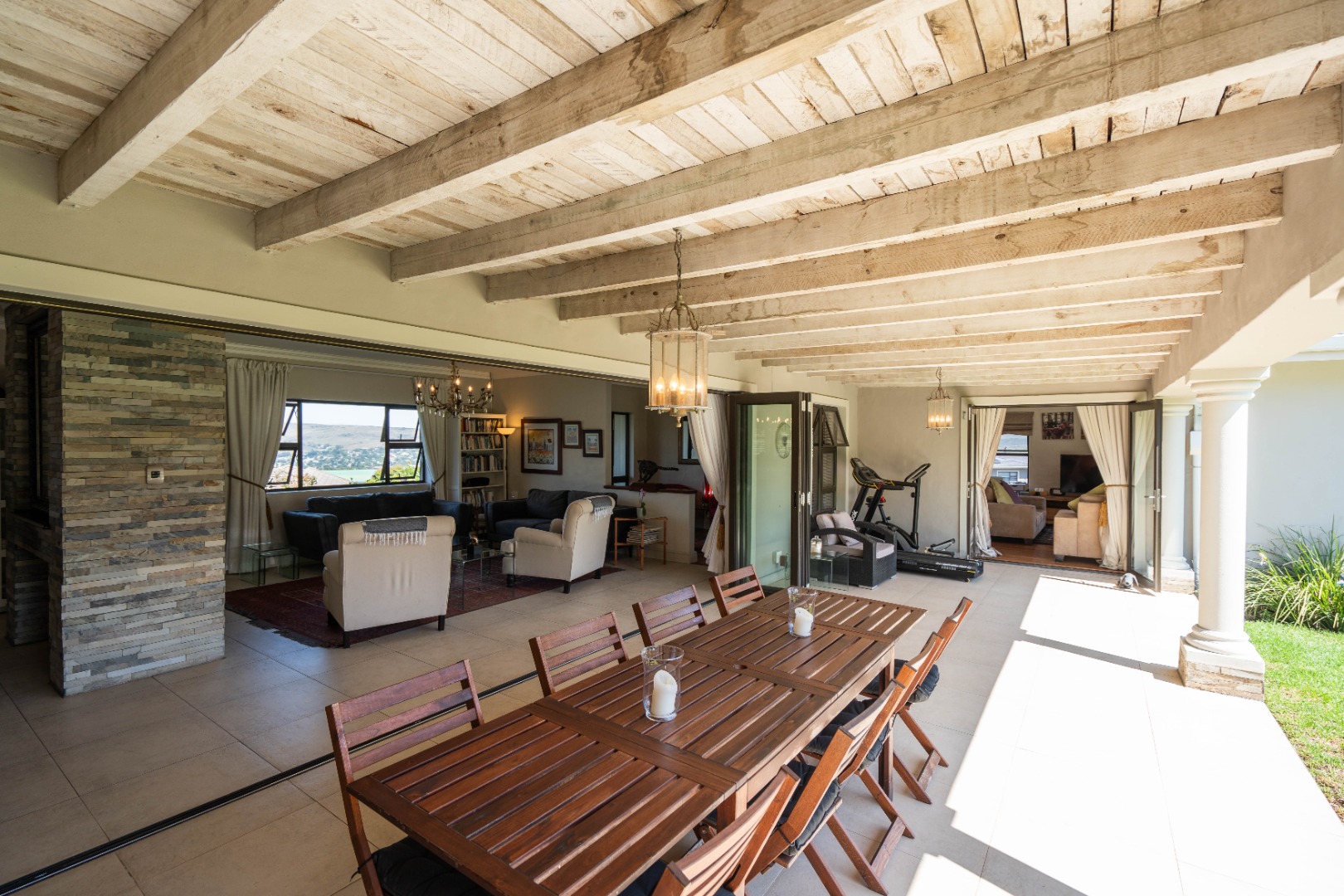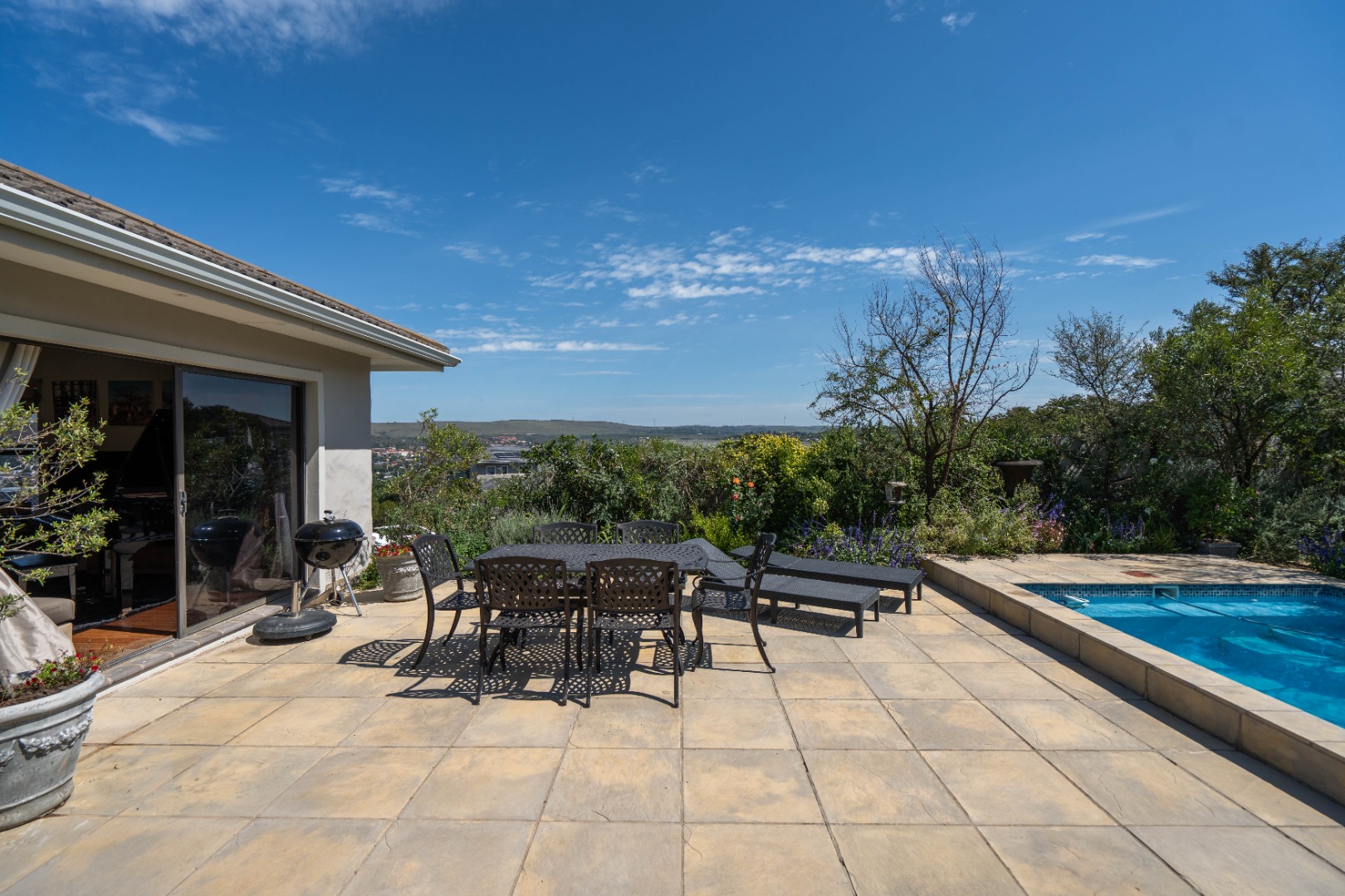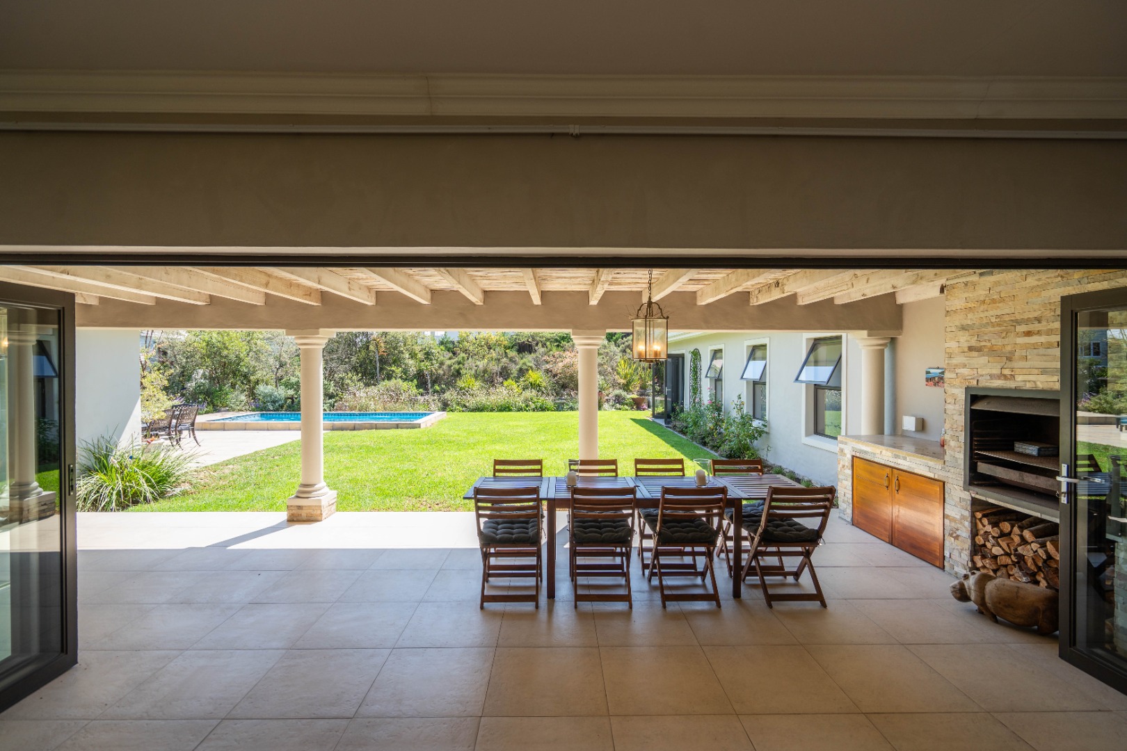 - Entrance foyer leads you through to a sunny main lounge with stack doors out to an undercover entertainment area with a built-in braai, which overlooks onto a stunning garden and a sparkling swimming pool and spectacular views.