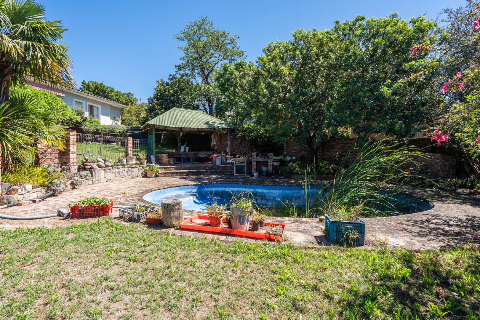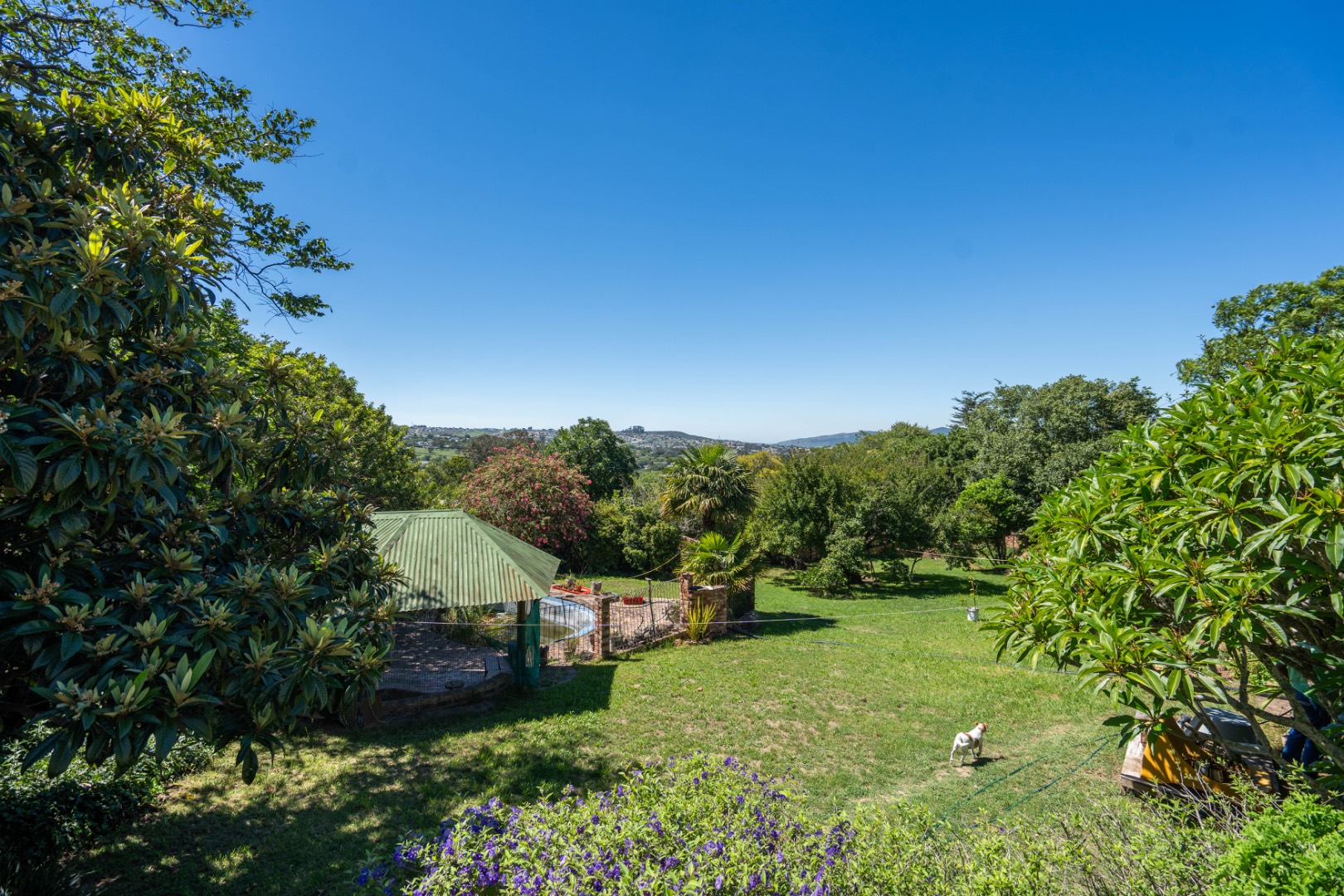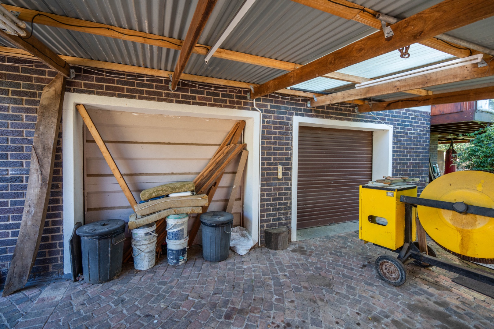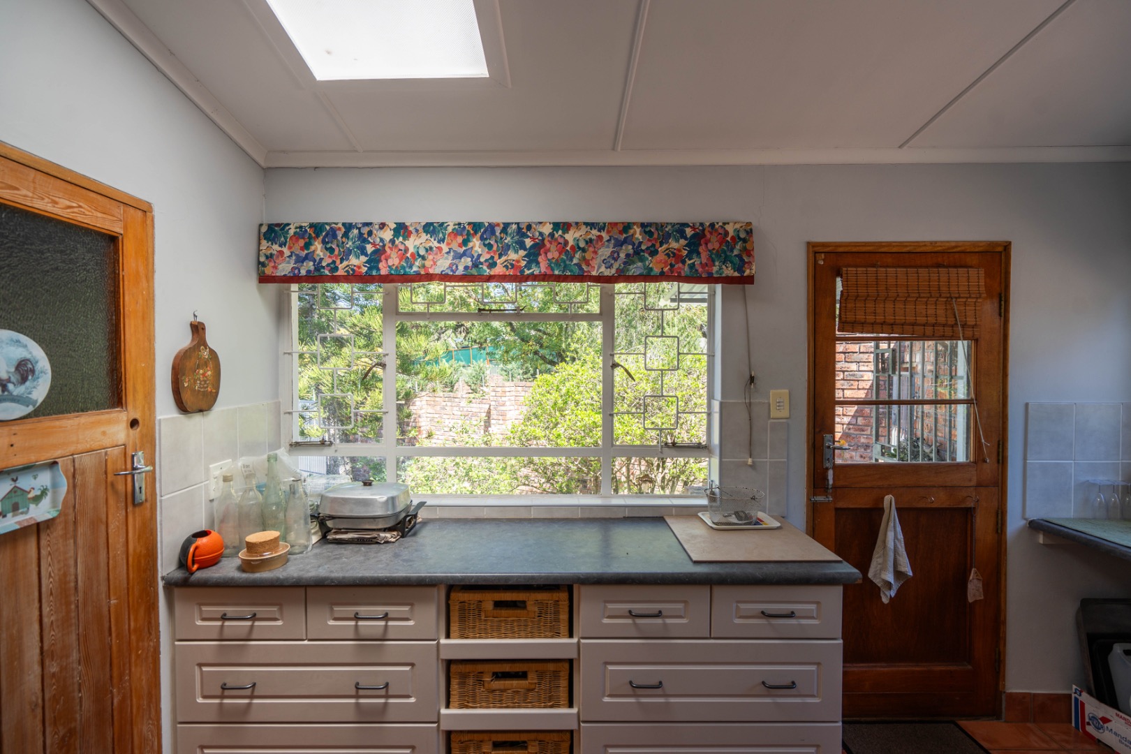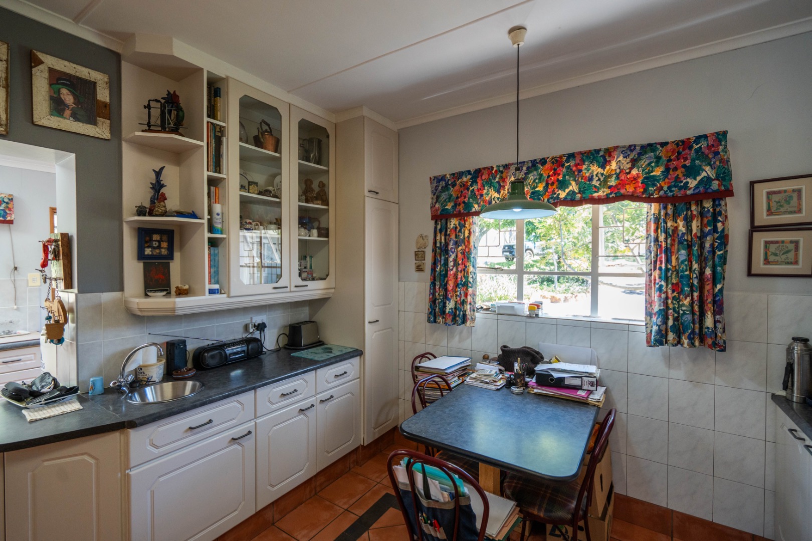 Outside, the expansive 1814 sqm erf features a refreshing swimming pool (needs attention), a lapa, and a built-in braai, perfect for outdoor entertaining. The established garden benefits from water tanks, complemented by a paved driveway and secure access gate, alarm system, burglar bars, and security gates, ensuring peace of mind. Enjoy scenic views from this private, totally walled property.