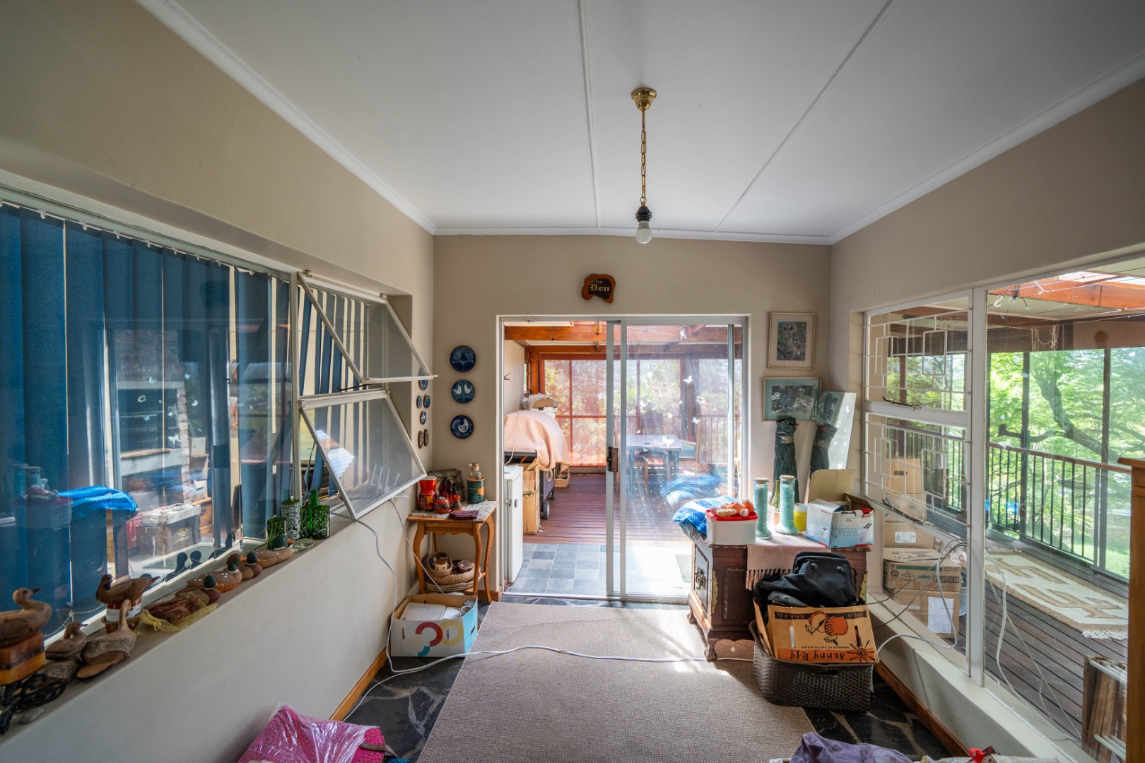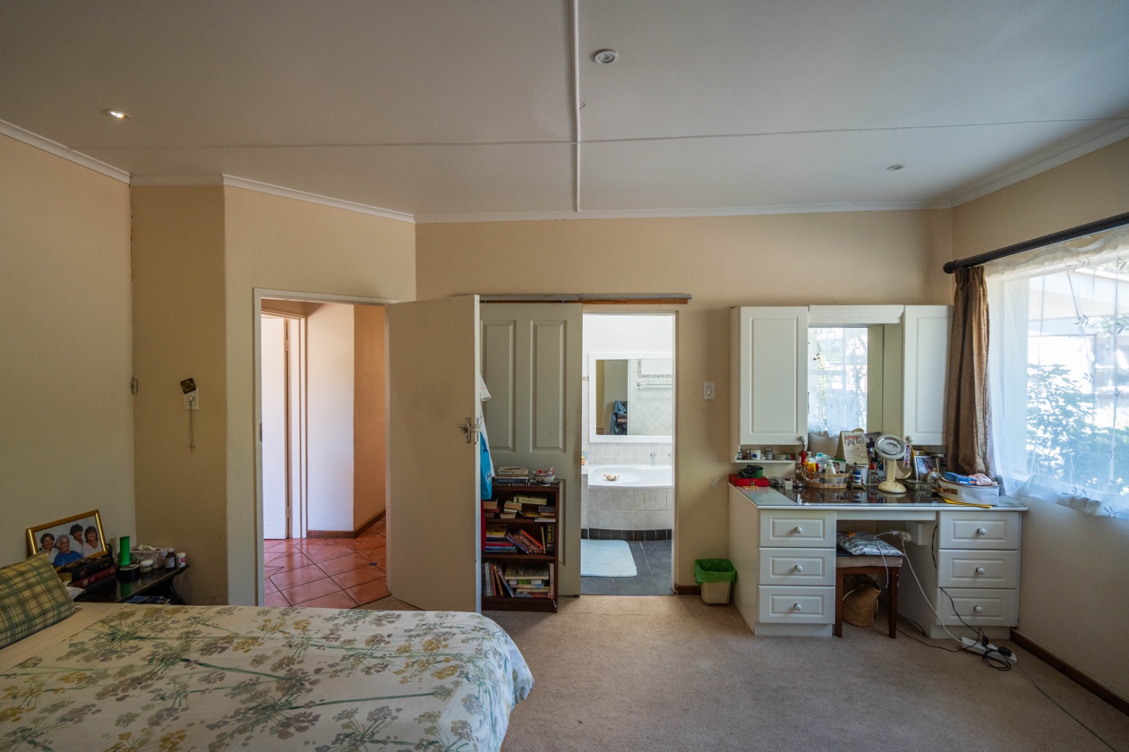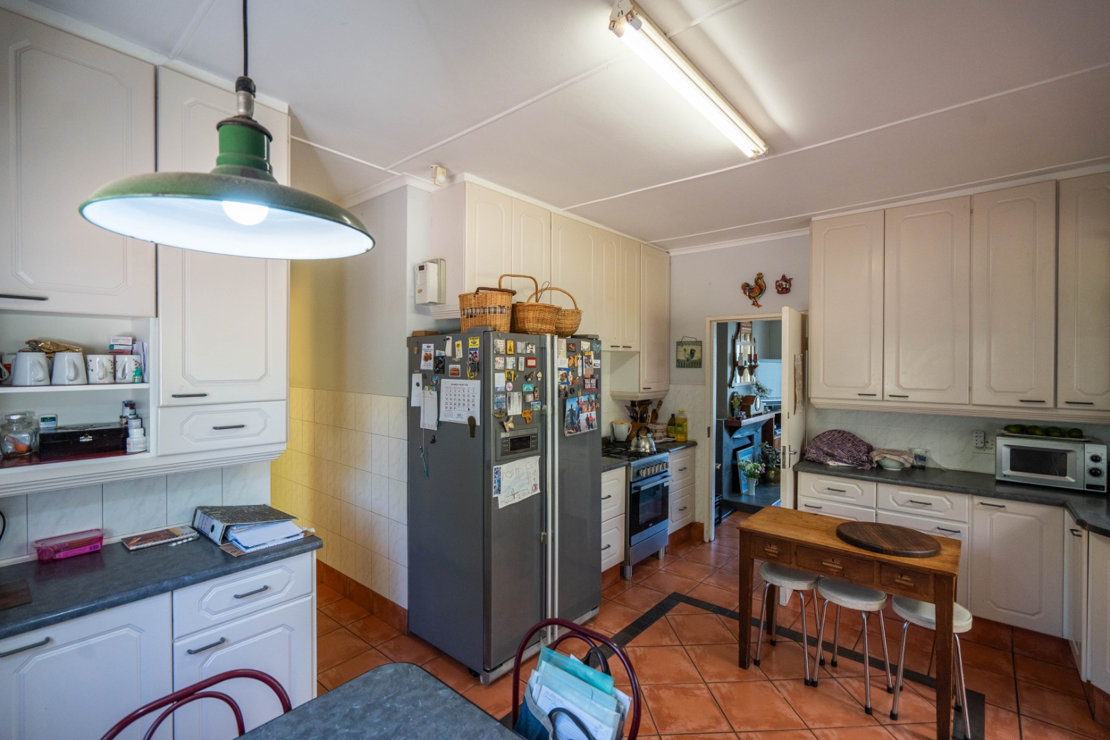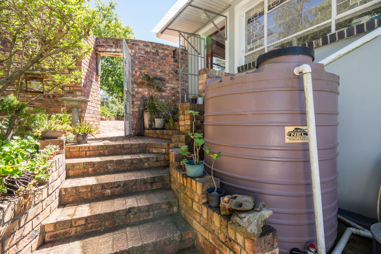 Outside, the expansive 1814 sqm erf features a refreshing swimming pool (needs attention), a lapa, and a built-in braai, perfect for outdoor entertaining. The established garden benefits from water tanks, complemented by a paved driveway and secure access gate, alarm system, burglar bars, and security gates, ensuring peace of mind. Enjoy scenic views from this private, totally walled property.