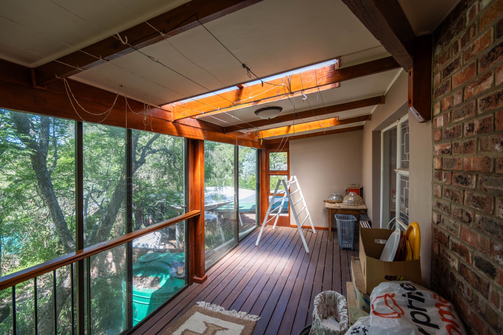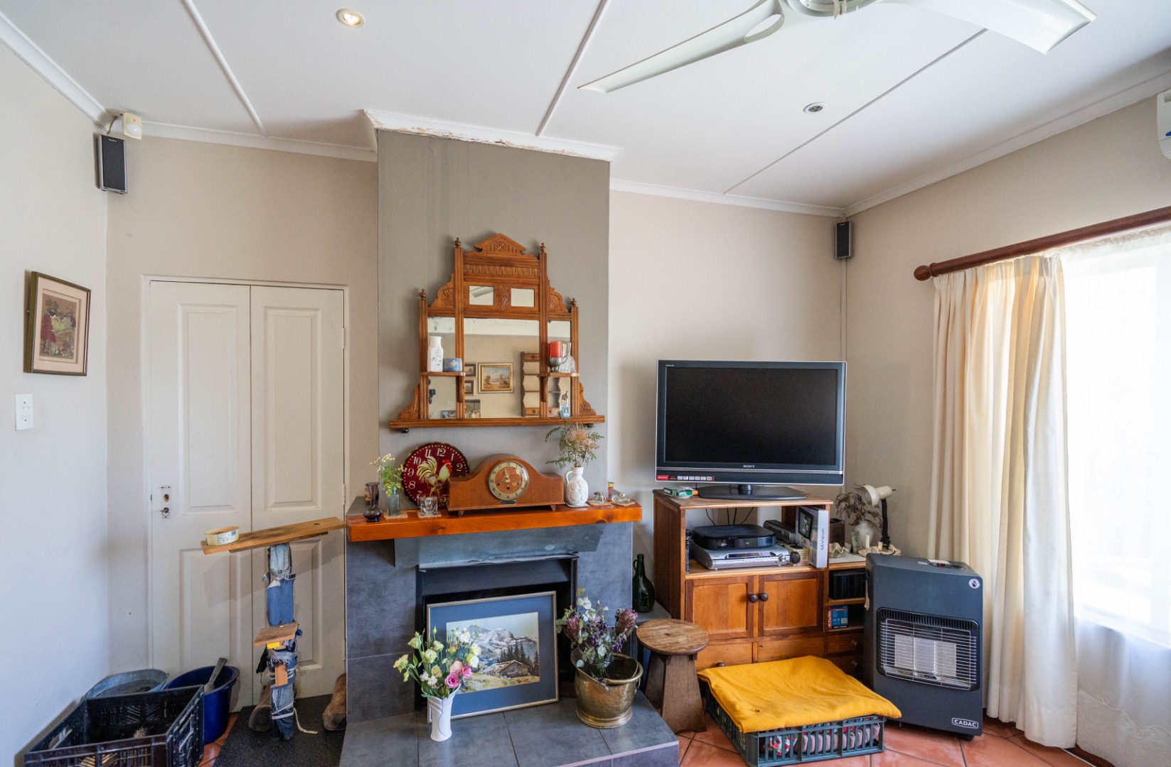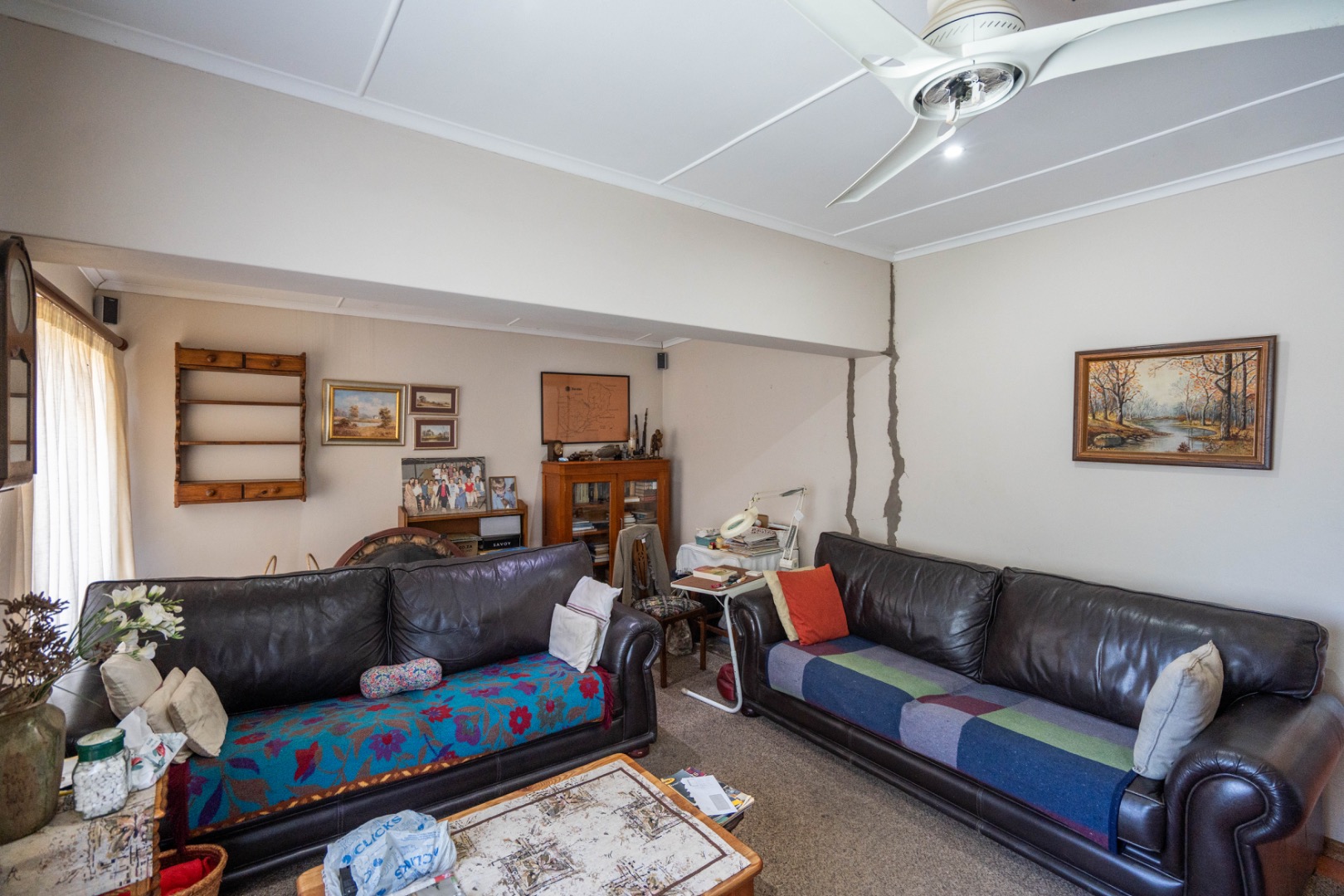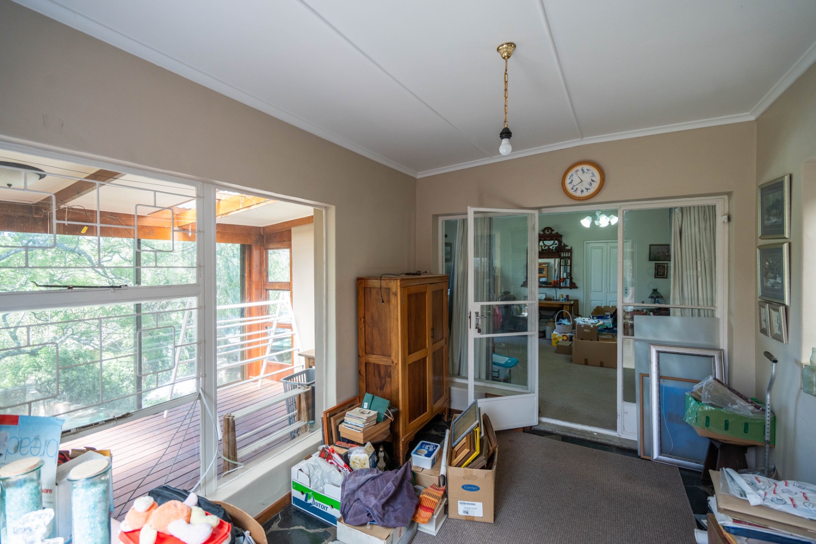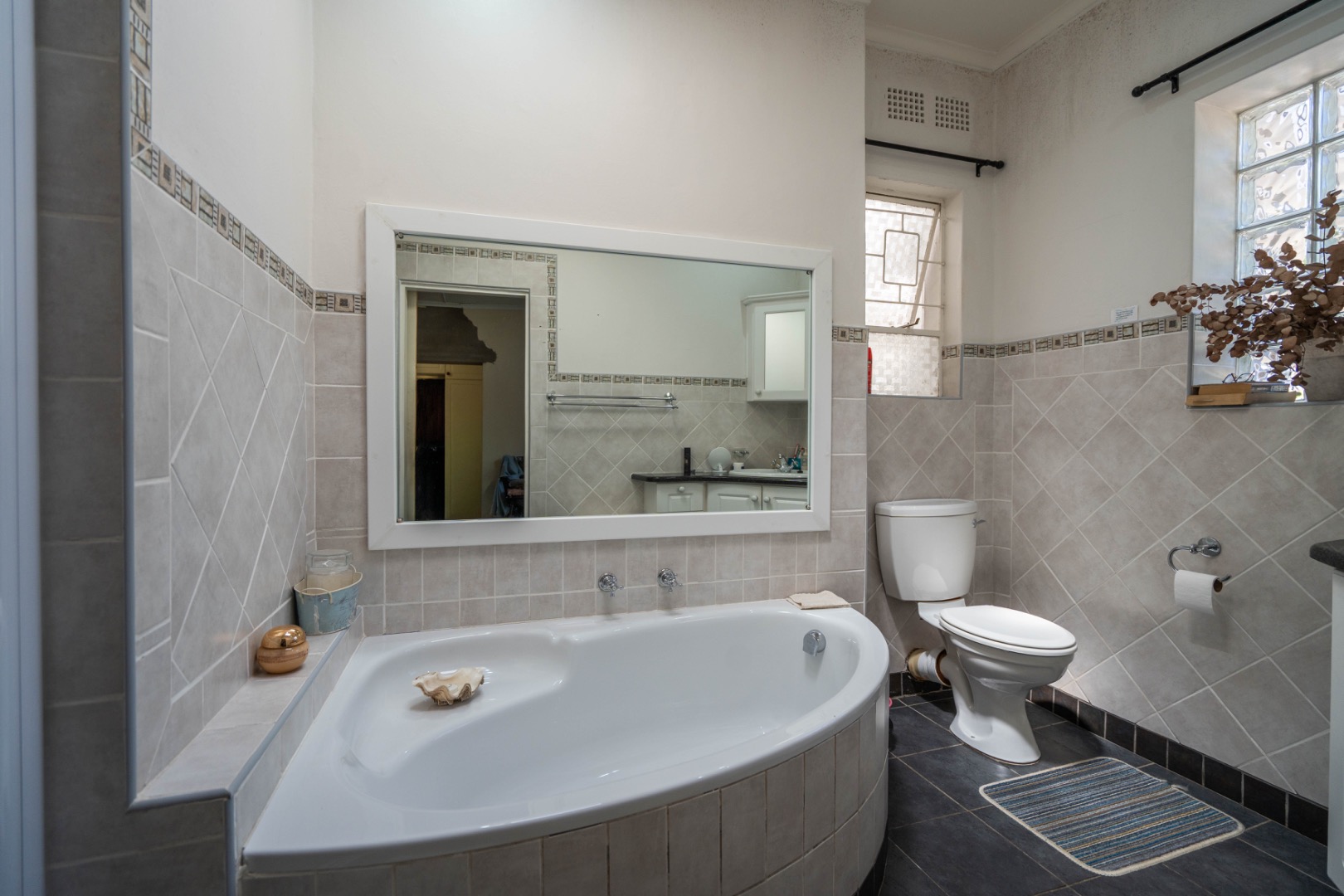 Outside, the expansive 1814 sqm erf features a refreshing swimming pool (needs attention), a lapa, and a built-in braai, perfect for outdoor entertaining. The established garden benefits from water tanks, complemented by a paved driveway and secure access gate, alarm system, burglar bars, and security gates, ensuring peace of mind. Enjoy scenic views from this private, totally walled property.