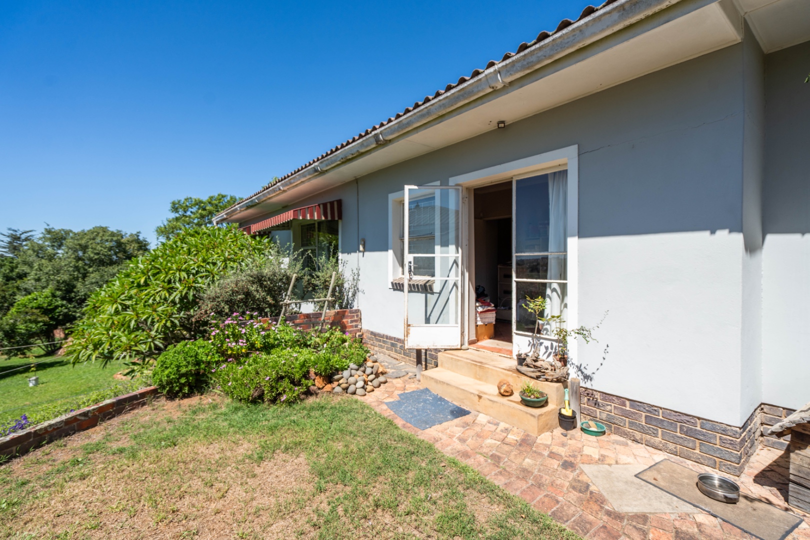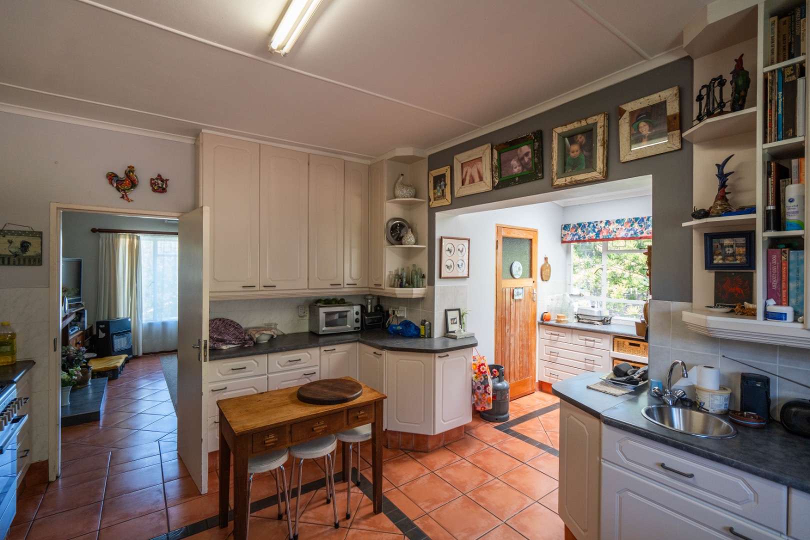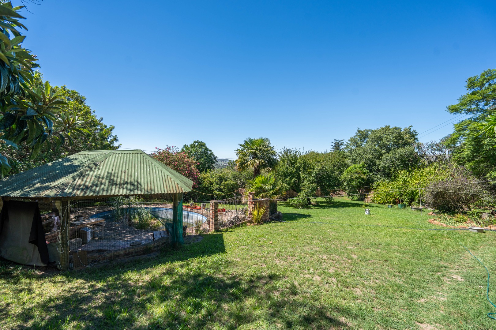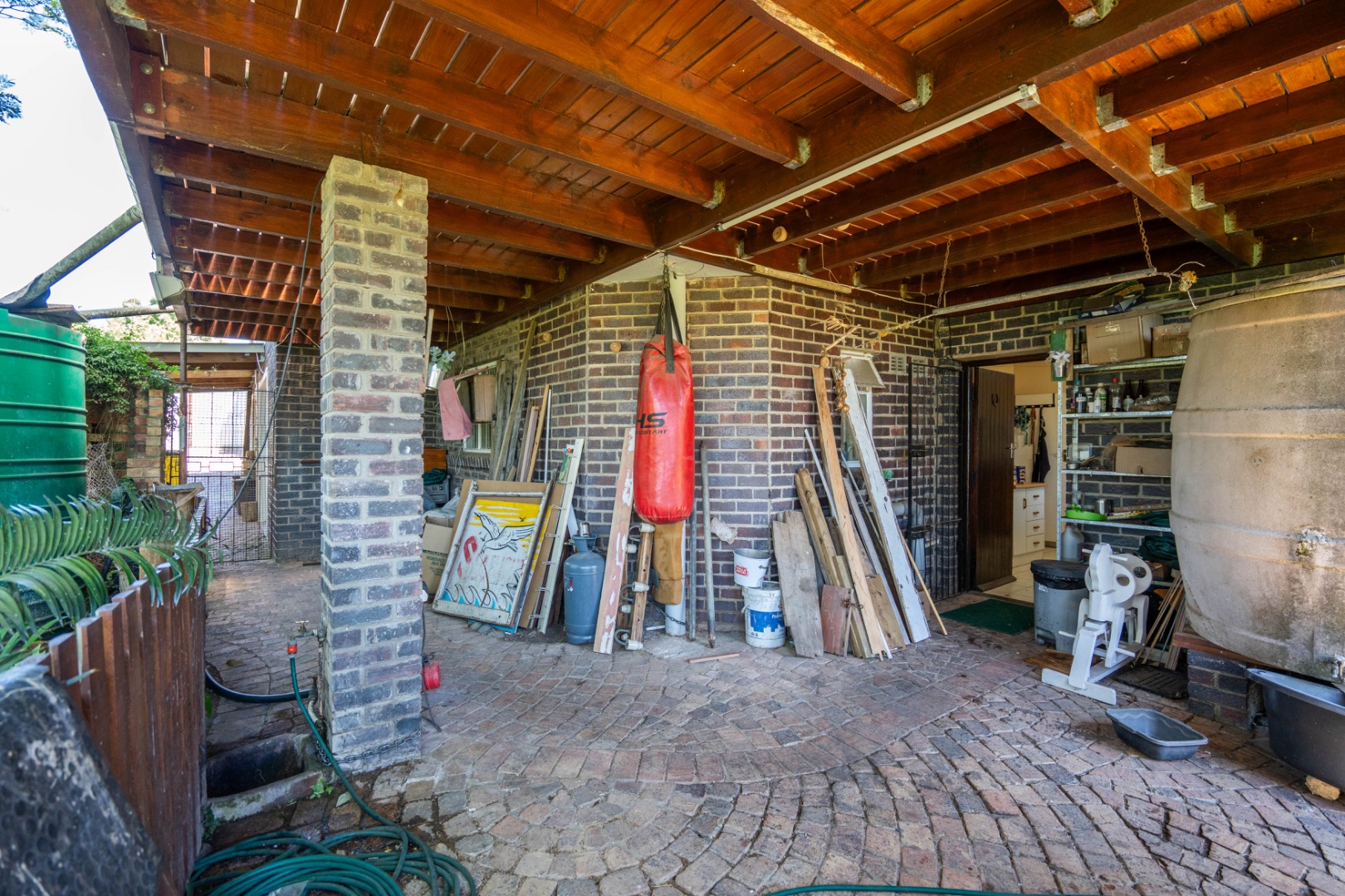 Outside, the expansive 1814 sqm erf features a refreshing swimming pool (needs attention), a lapa, and a built-in braai, perfect for outdoor entertaining. The established garden benefits from water tanks, complemented by a paved driveway and secure access gate, alarm system, burglar bars, and security gates, ensuring peace of mind. Enjoy scenic views from this private, totally walled property.