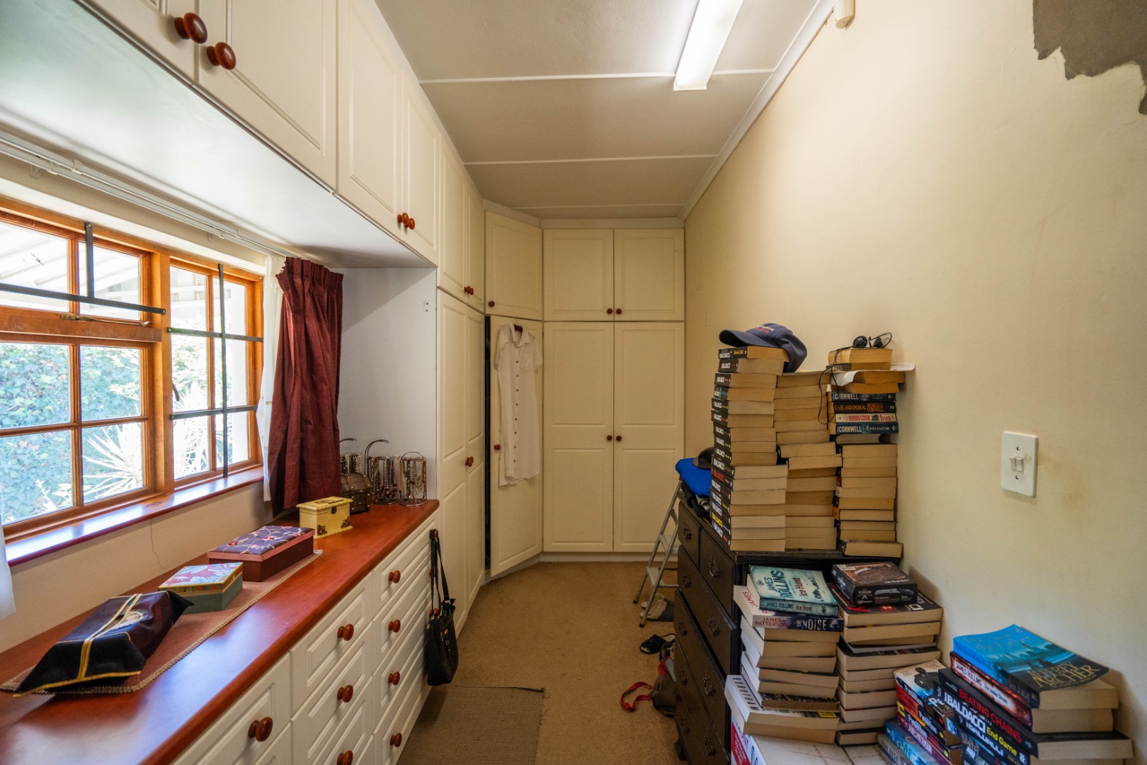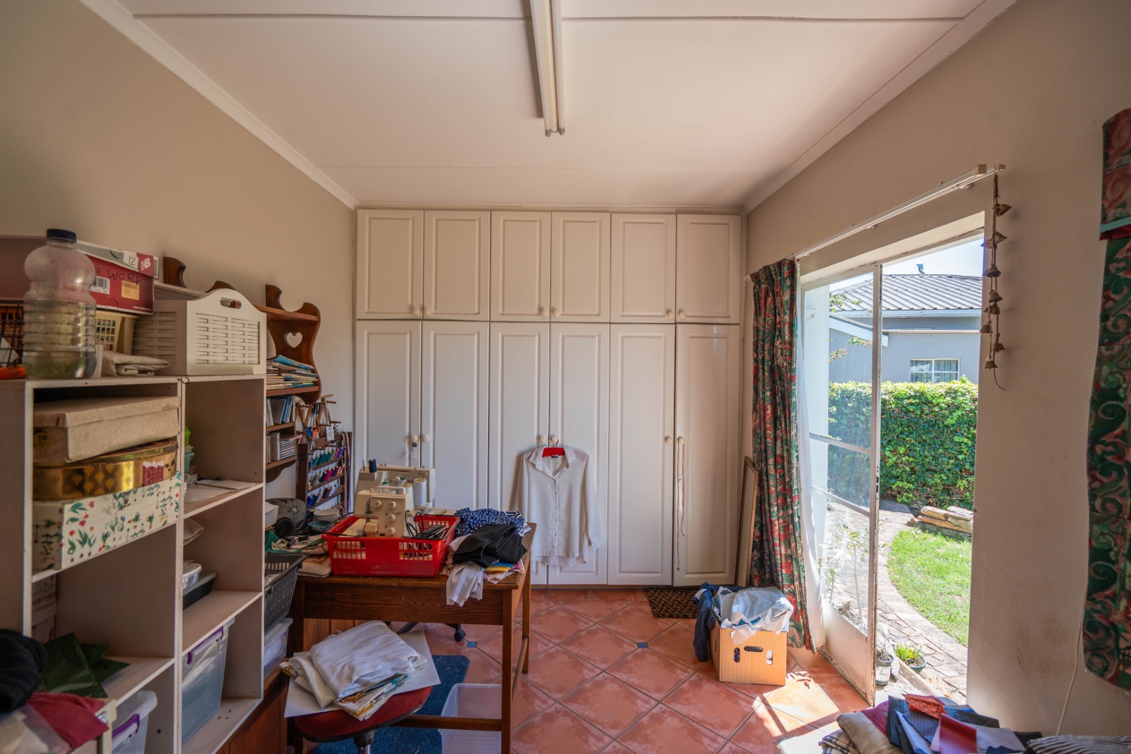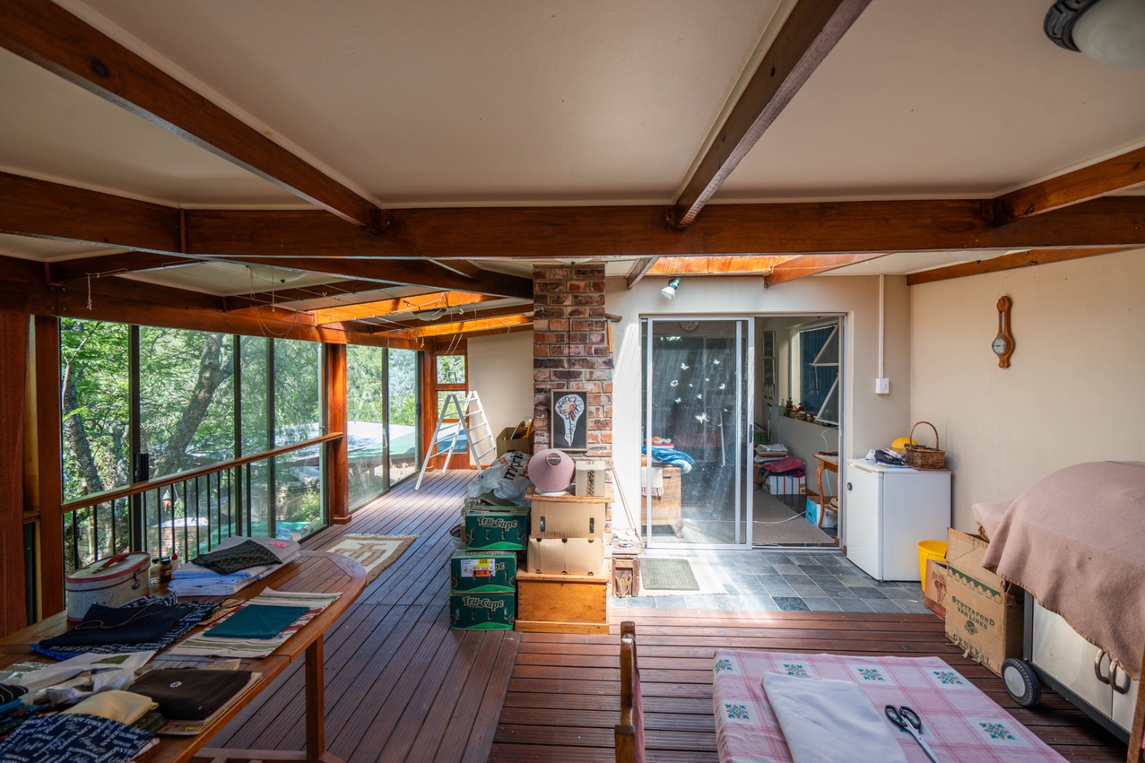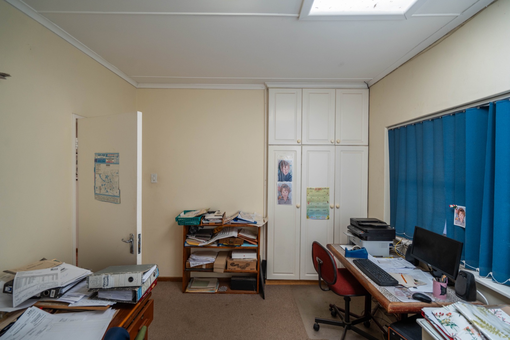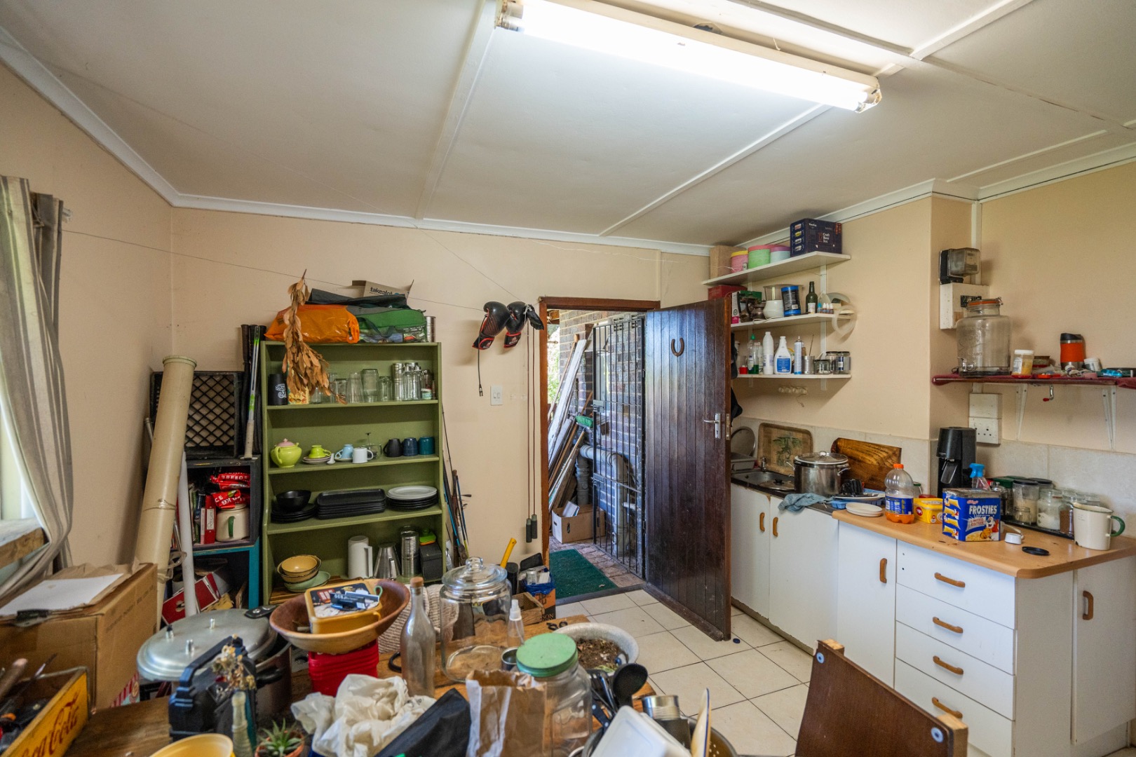 Outside, the expansive 1814 sqm erf features a refreshing swimming pool (needs attention), a lapa, and a built-in braai, perfect for outdoor entertaining. The established garden benefits from water tanks, complemented by a paved driveway and secure access gate, alarm system, burglar bars, and security gates, ensuring peace of mind. Enjoy scenic views from this private, totally walled property.
