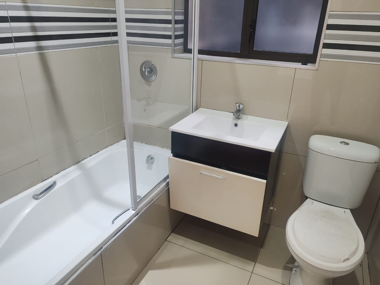 The living area/lounge is spacious and opens up onto a small balcony, with lovely views. The floor is also parquet flooring.