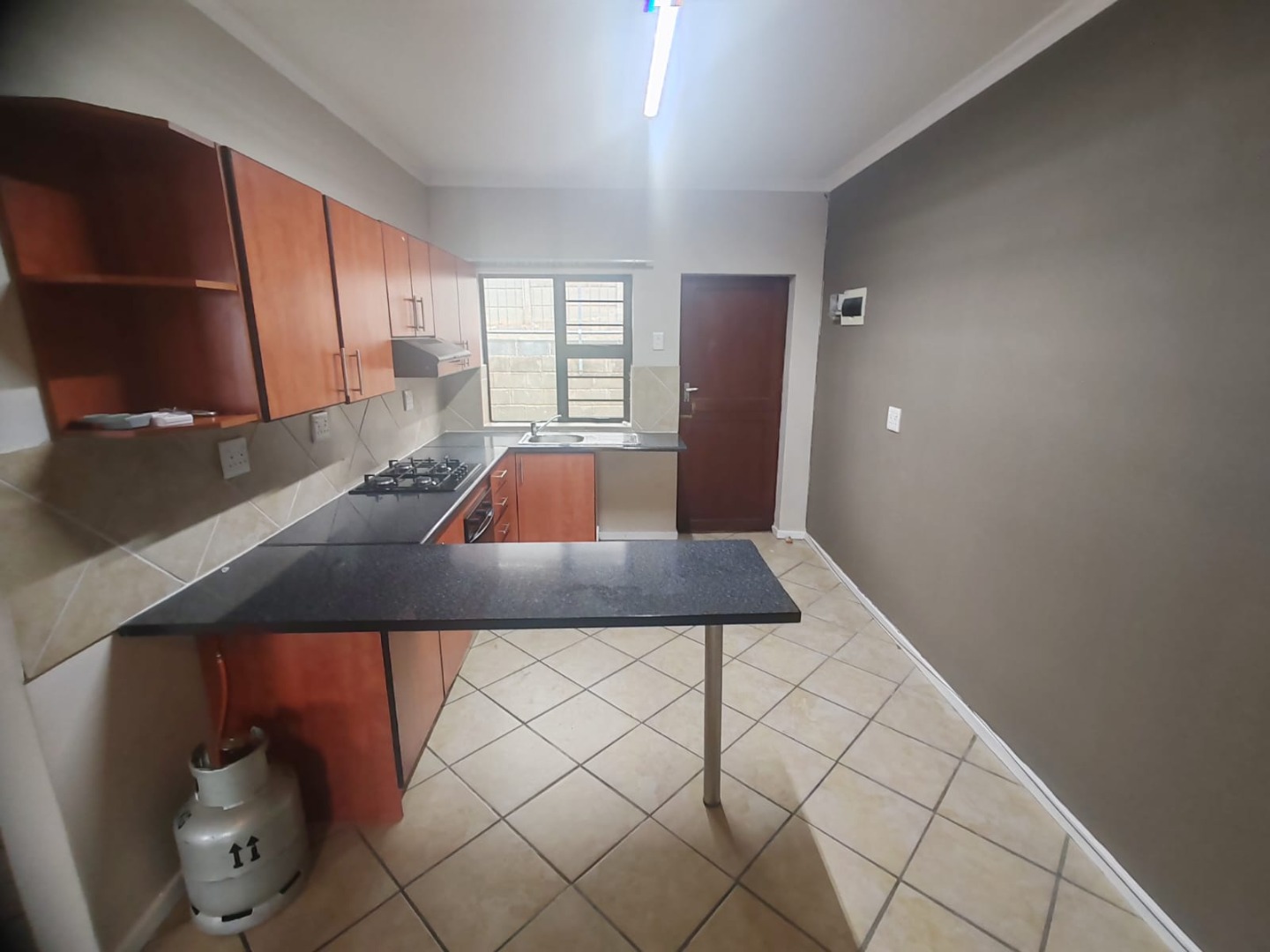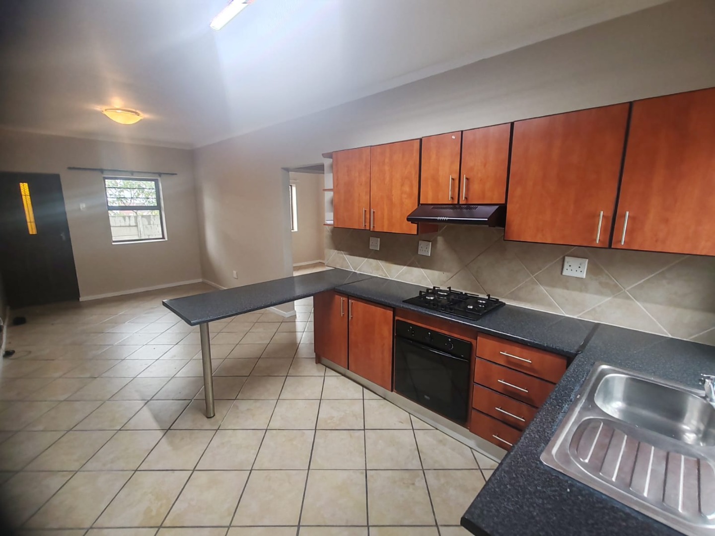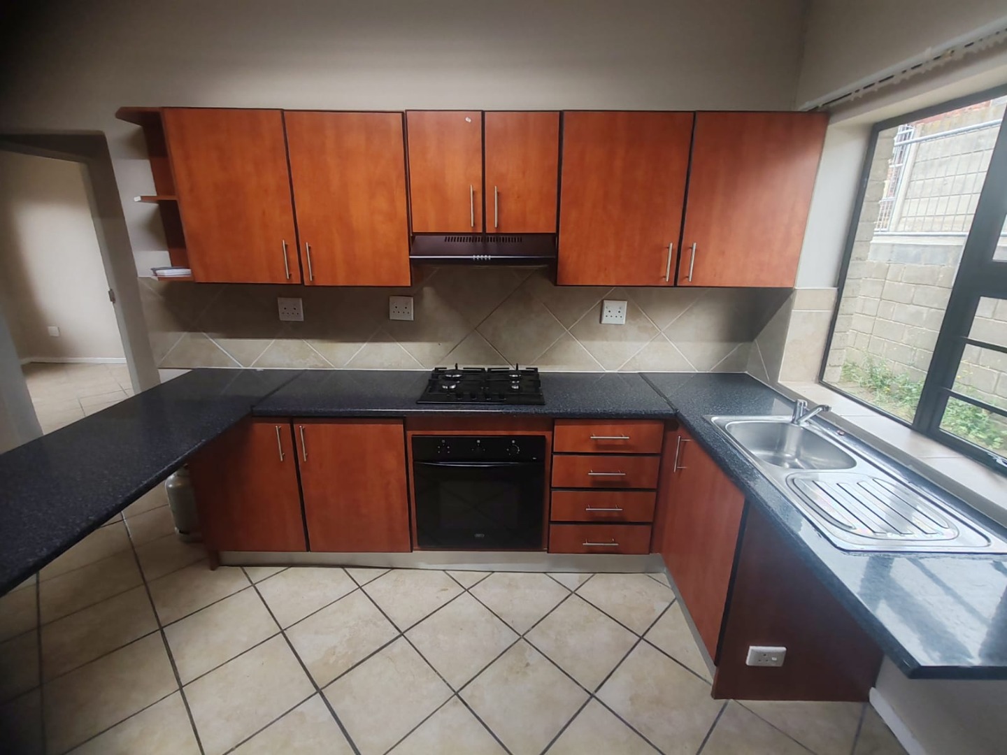 * Kitchen with integrated oven and gas hob
