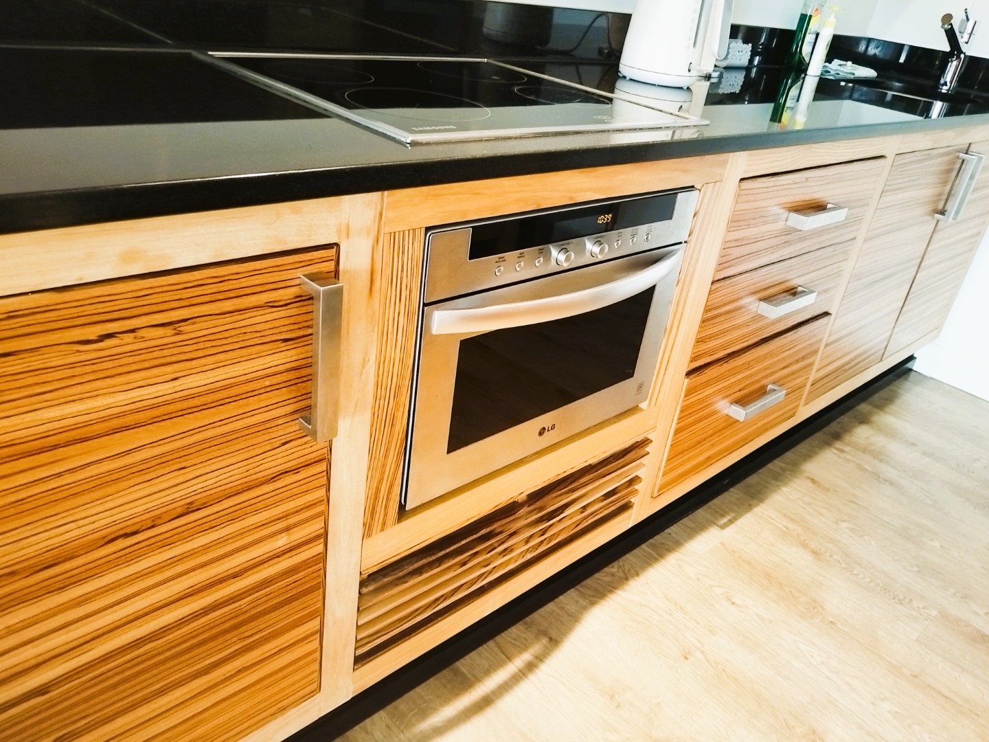 - Kitchen has ample modern wooden cabinets, black granite tops and undercounter oven with a breakfast nook ideal for informal dining.