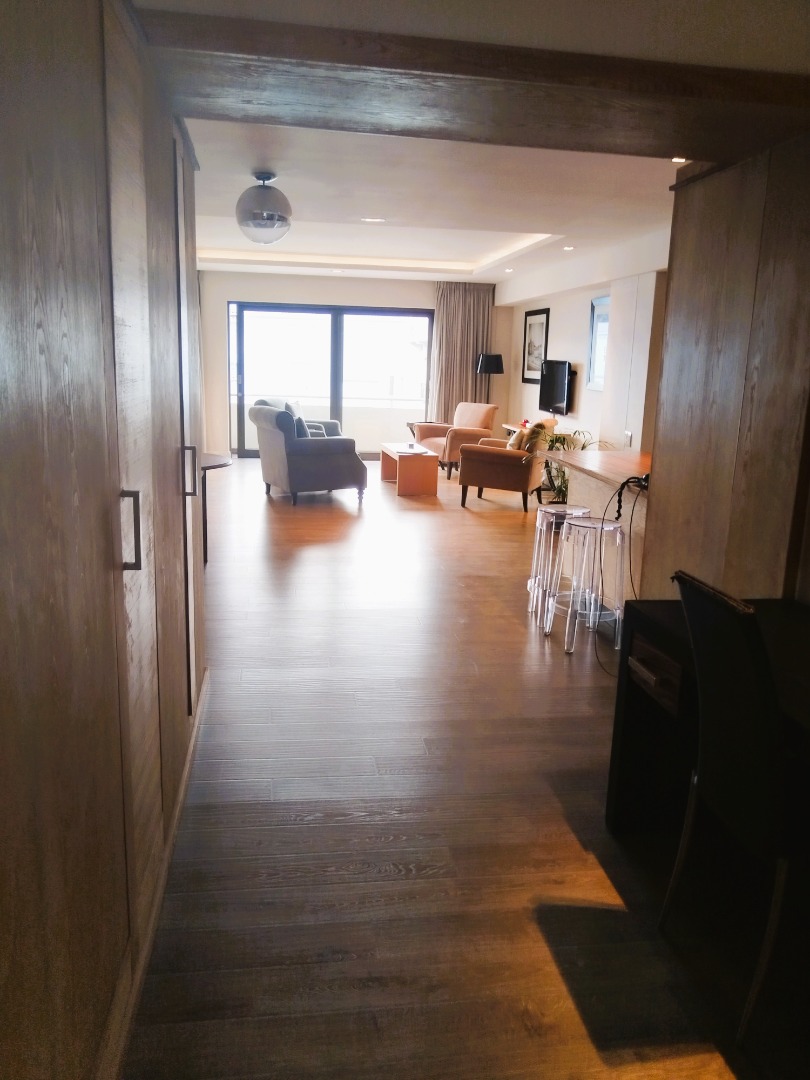 - Open plan Lounge/Dining room flows seamlessly out to a narrow balcony, like a Juliet balcony, opening with aluminum sliding doors. The wooden floors and recessed lighting give it an awesome vibe.