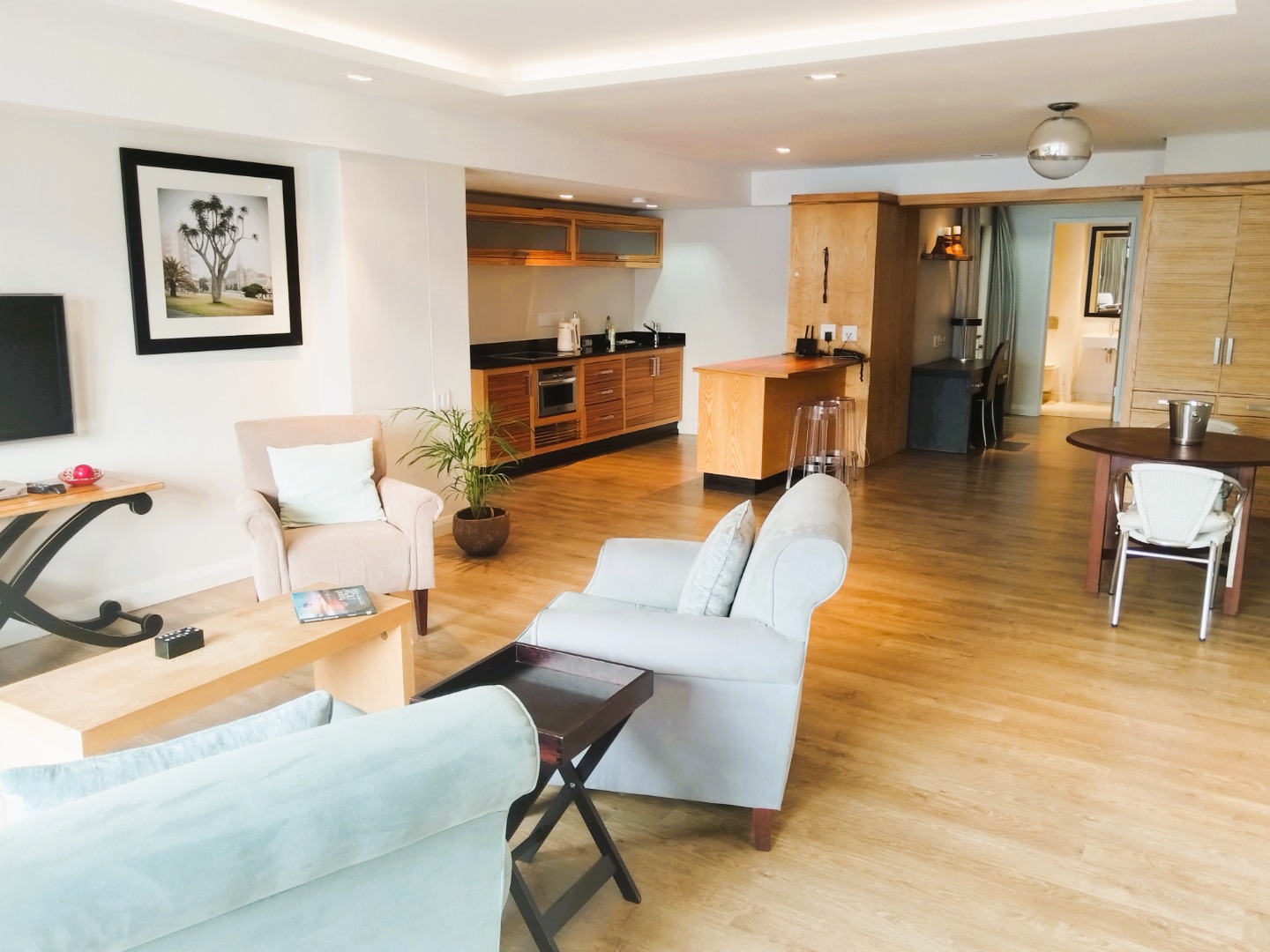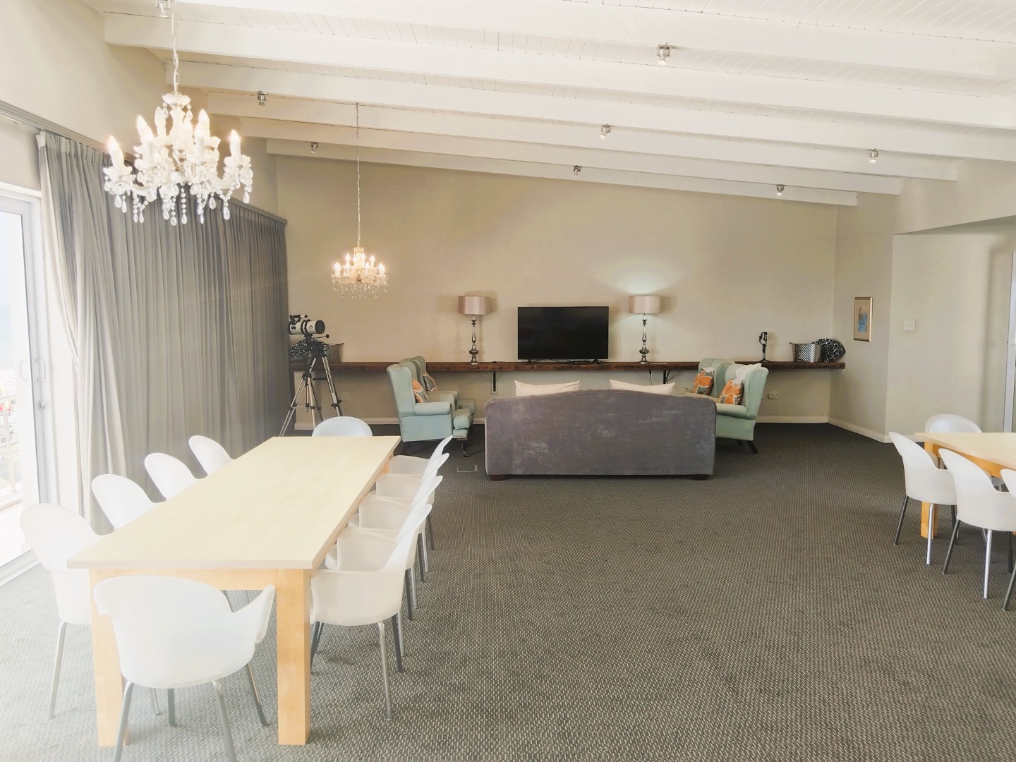 - Penthouse (7th floor): Large lounge furnished with quality decor and furnishings (comfortable couches, seating, TV and dining tables) with sliding doors opening up to a balcony taking in the stunning beach views below. A fully equipped communal kitchen and bathroom facilities (free on birthdays, and for hire for other occasions at a nominal fee)