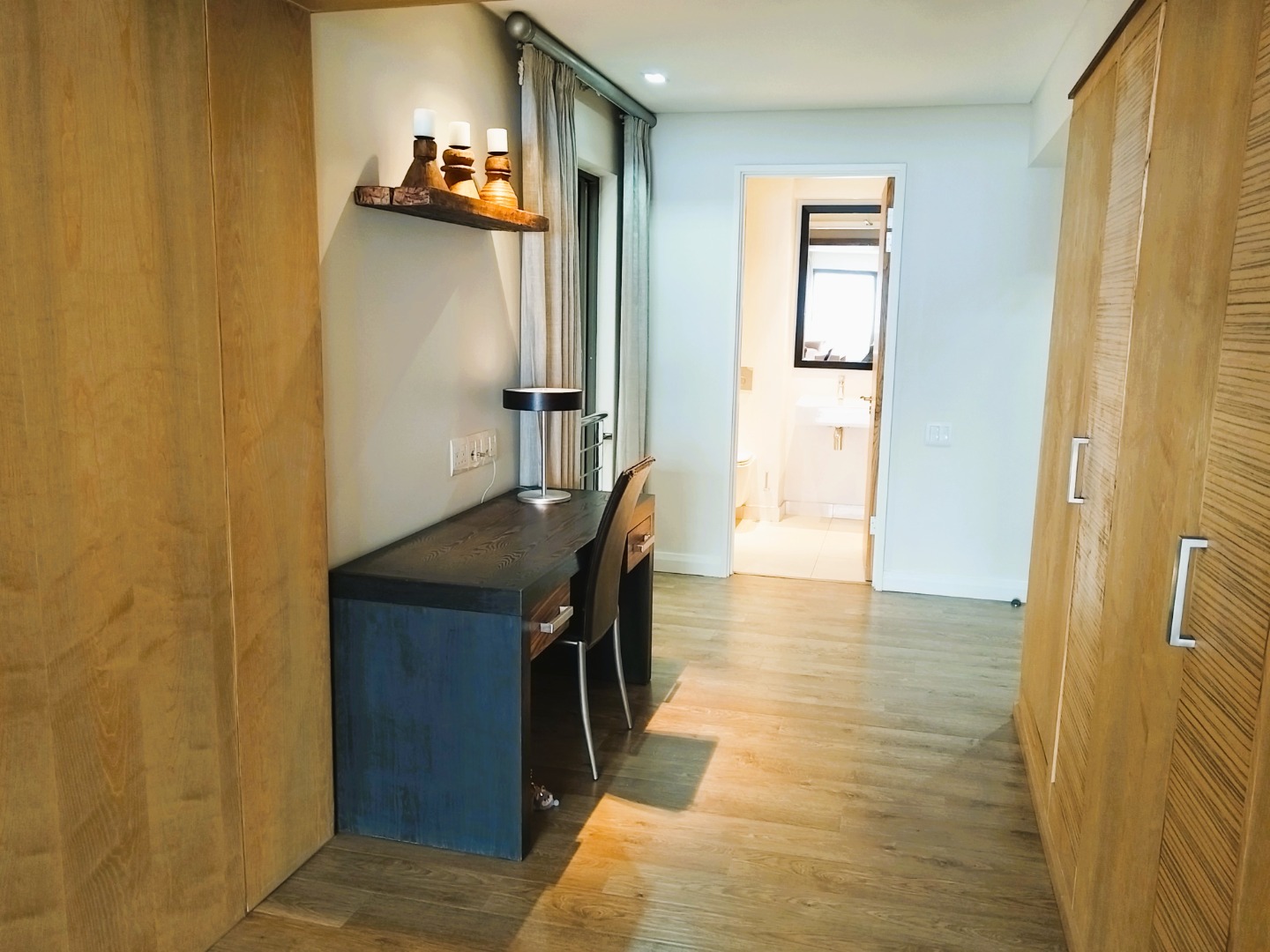 This spacious 112 sqm turn key unit is on the SECOND floor with views. It boasts high-end finishes and a super modern design. Originally a two-bedroom unit, it's been stylishly converted into a spacious one-bedroom residence featuring quality wooden finishes throughout.