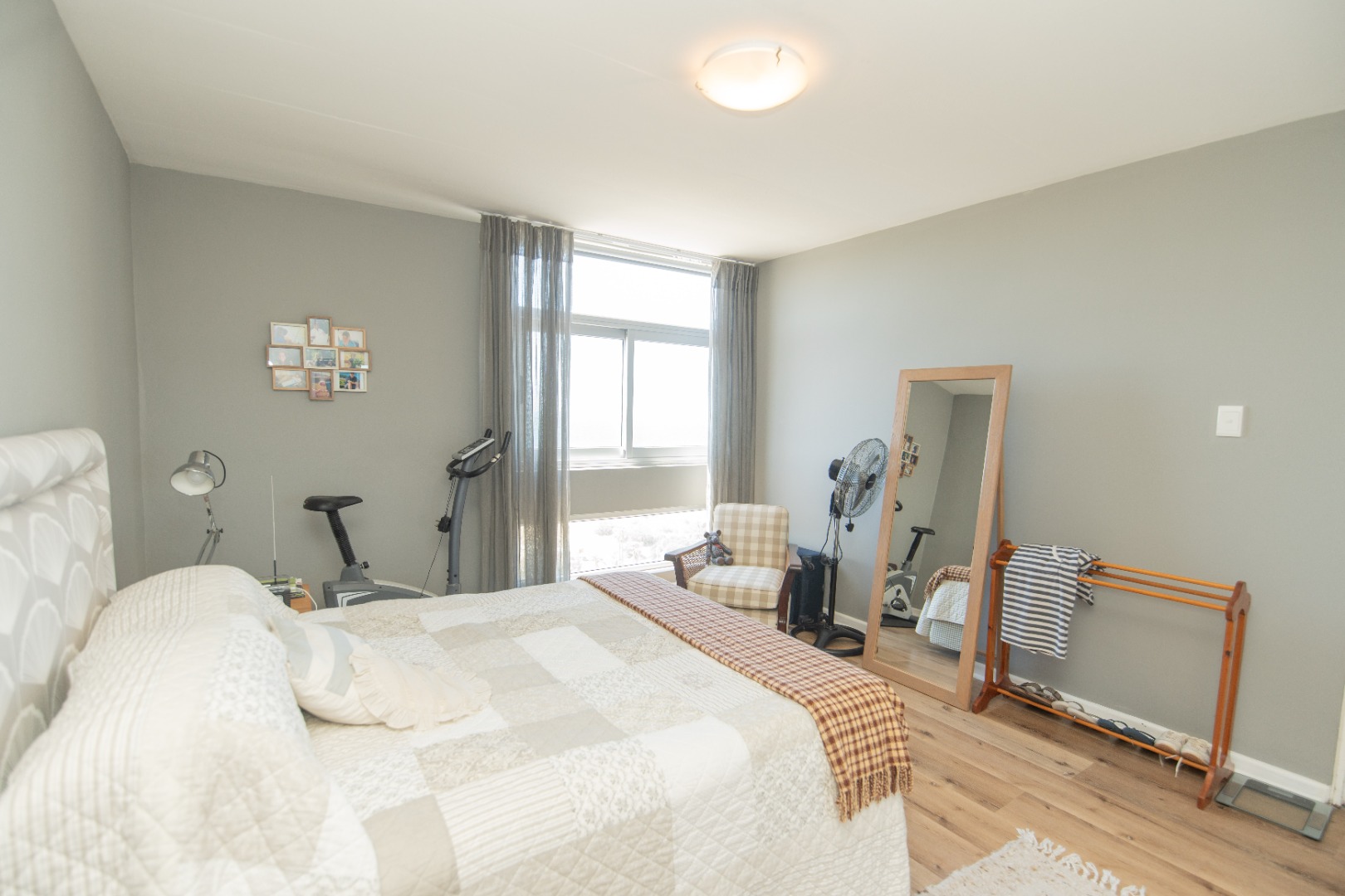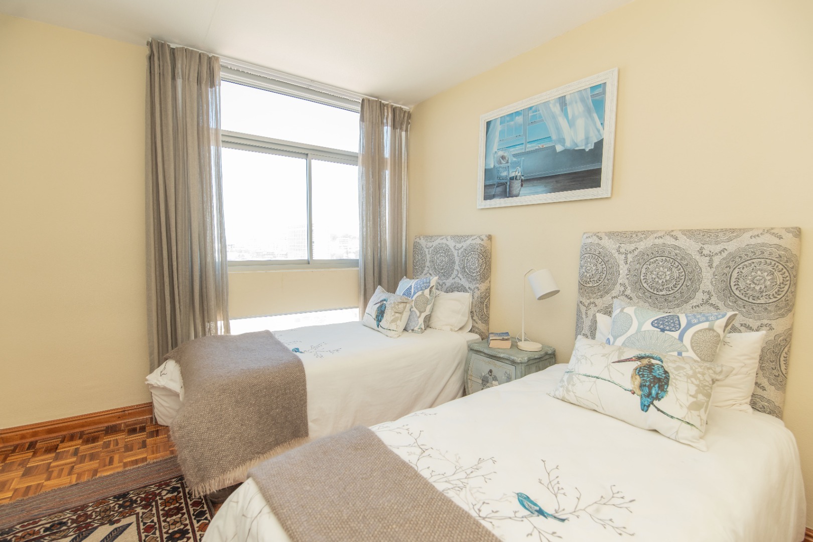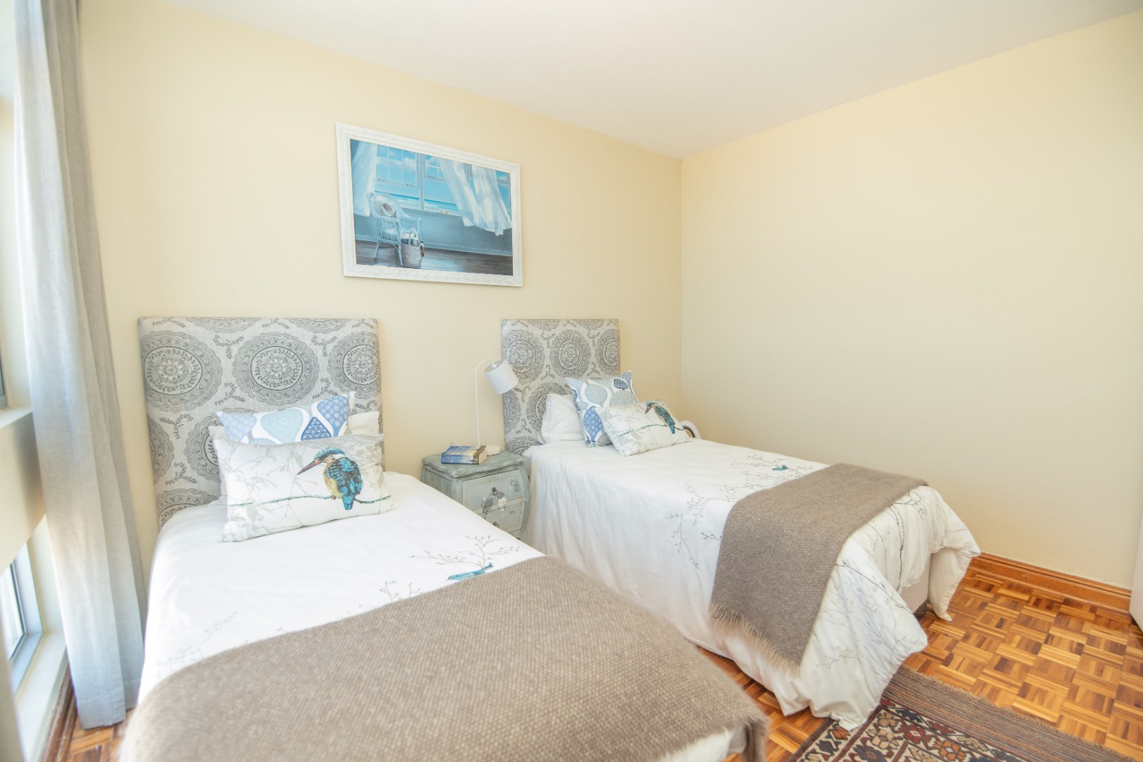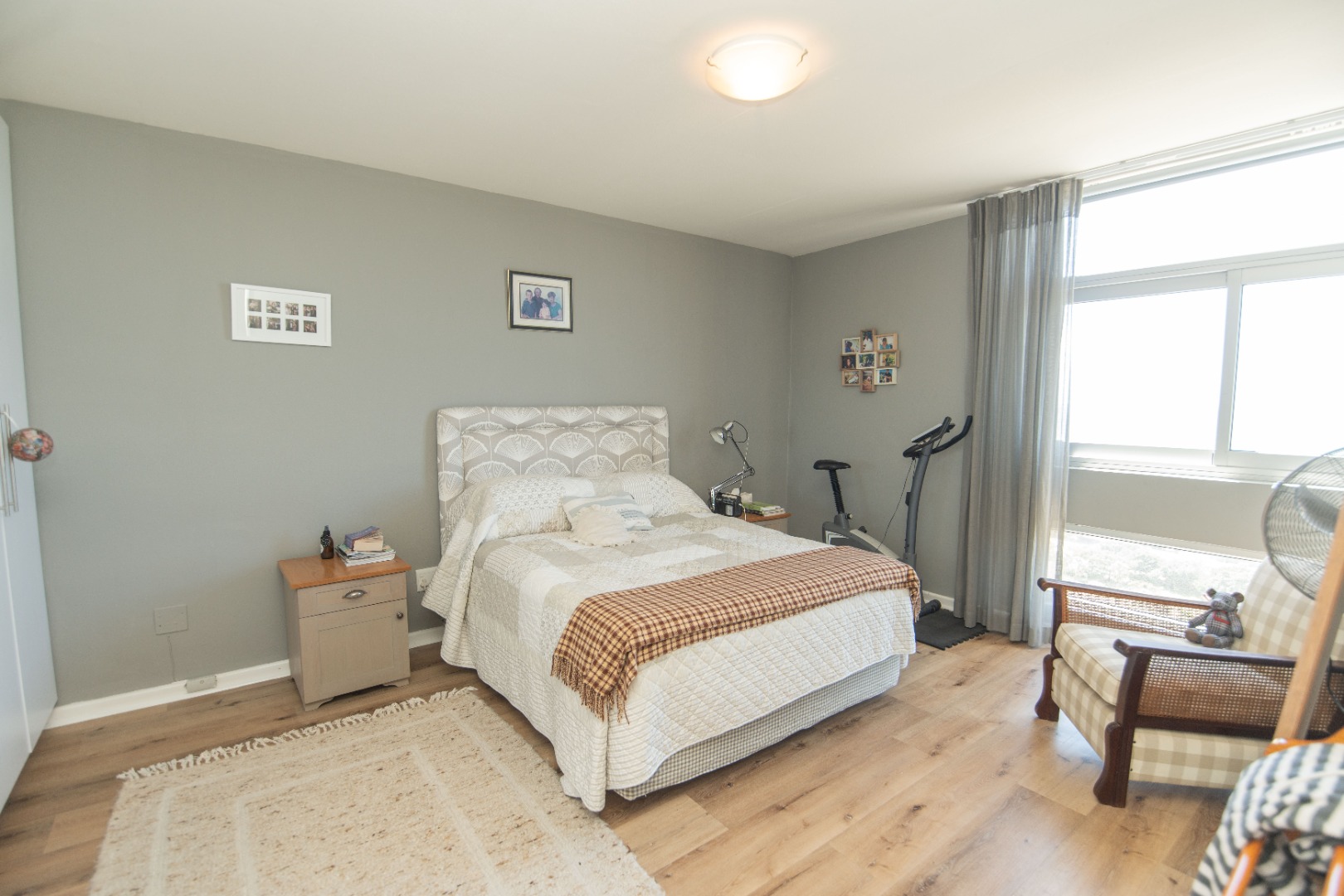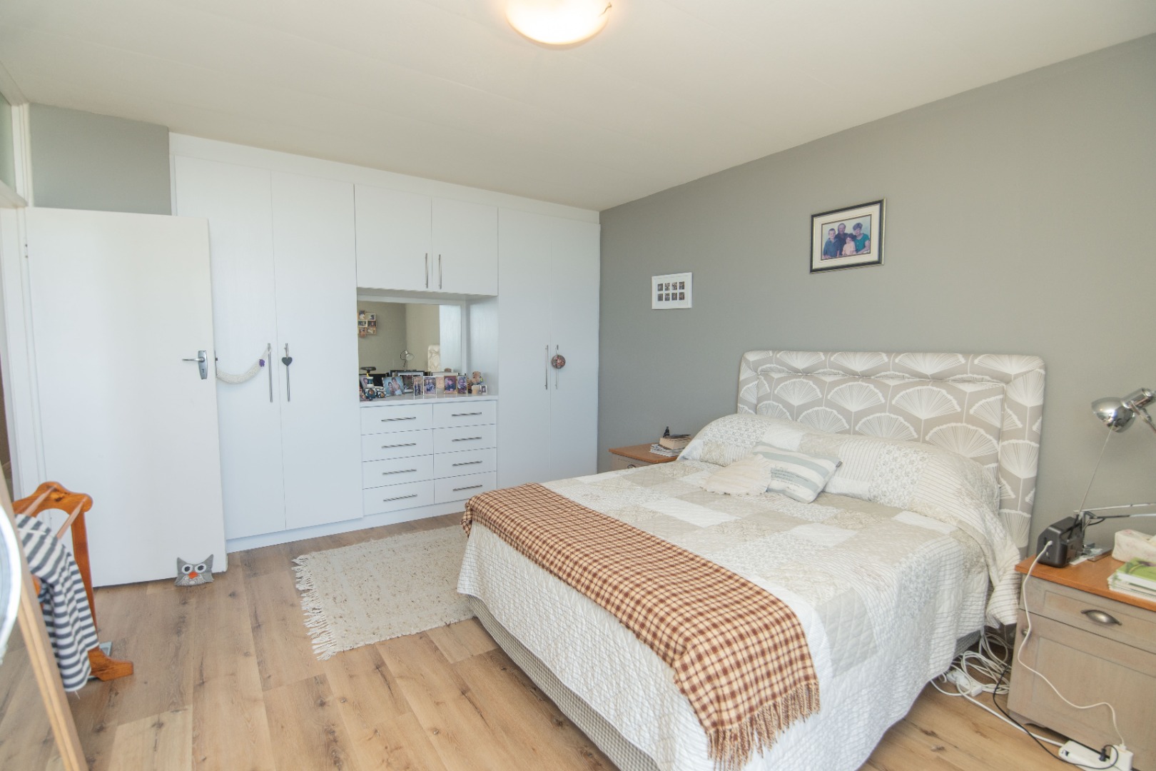 The master bedroom is a retreat in itself, with new tasteful quality laminated flooring, ample cupboards, and a built-in dressing table, taking in the stunning sea views.