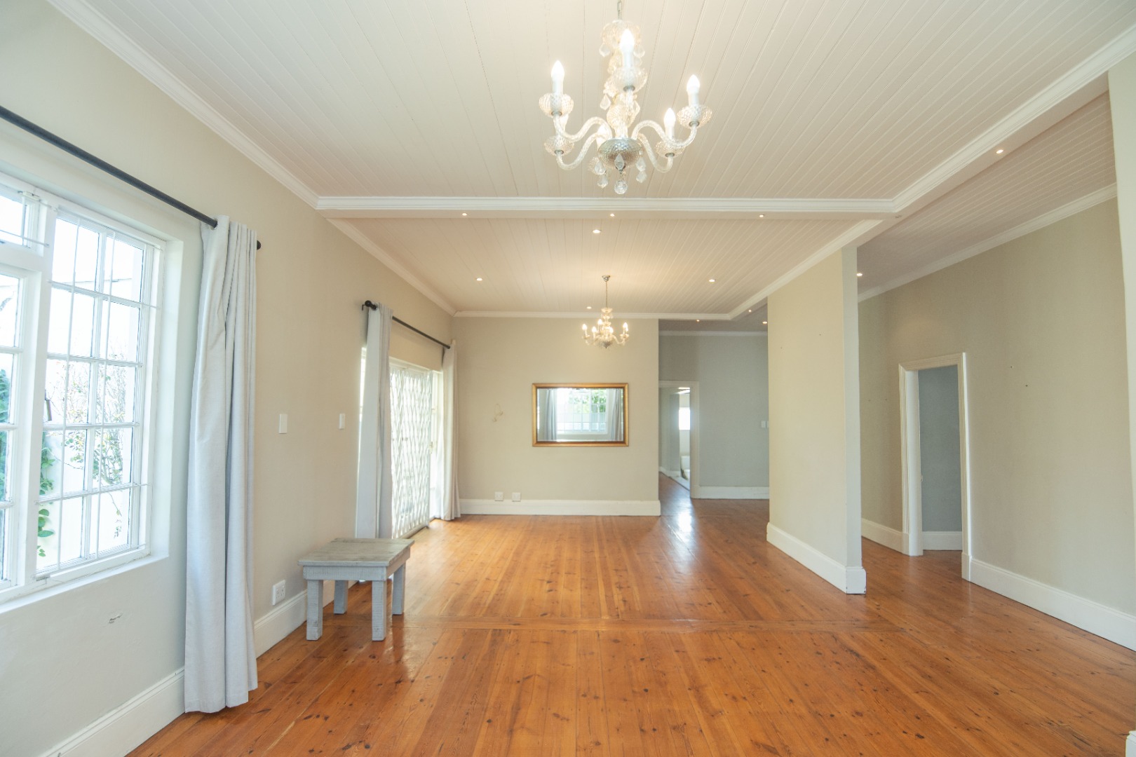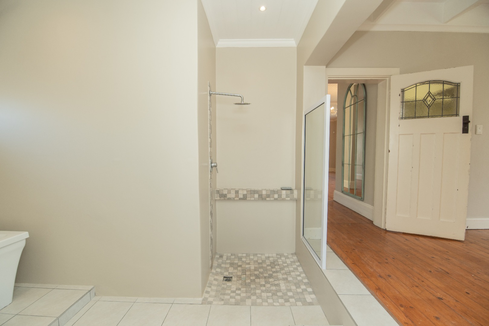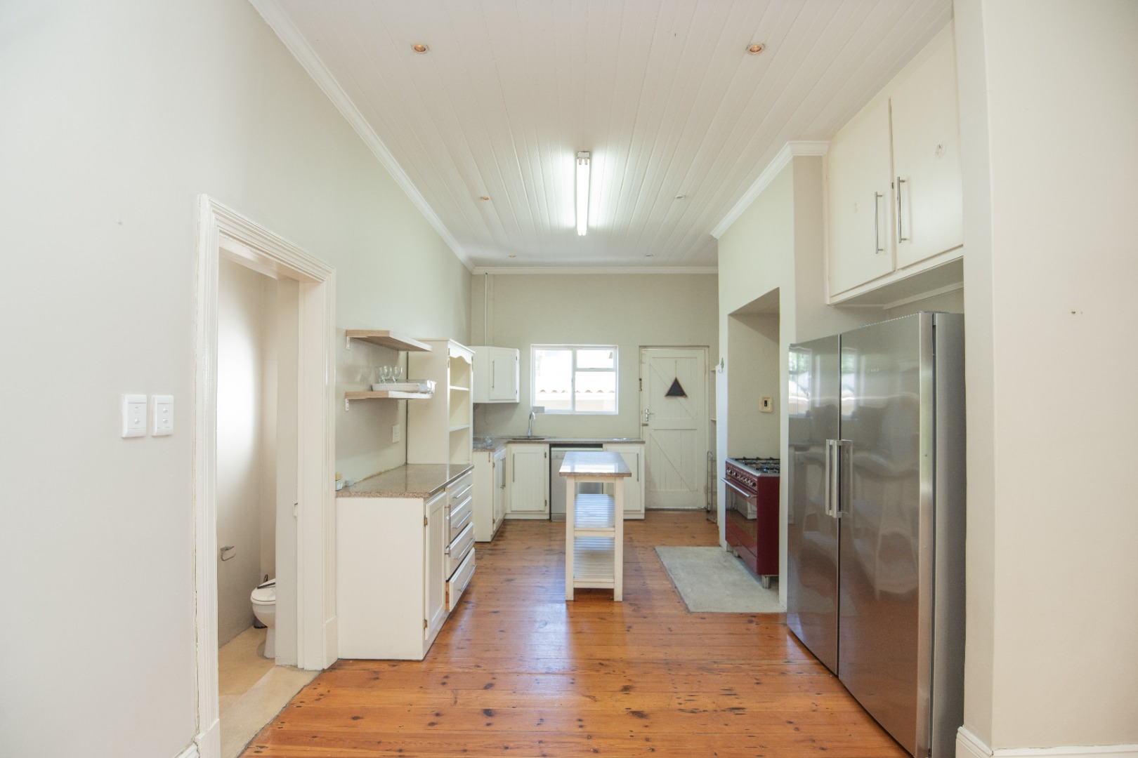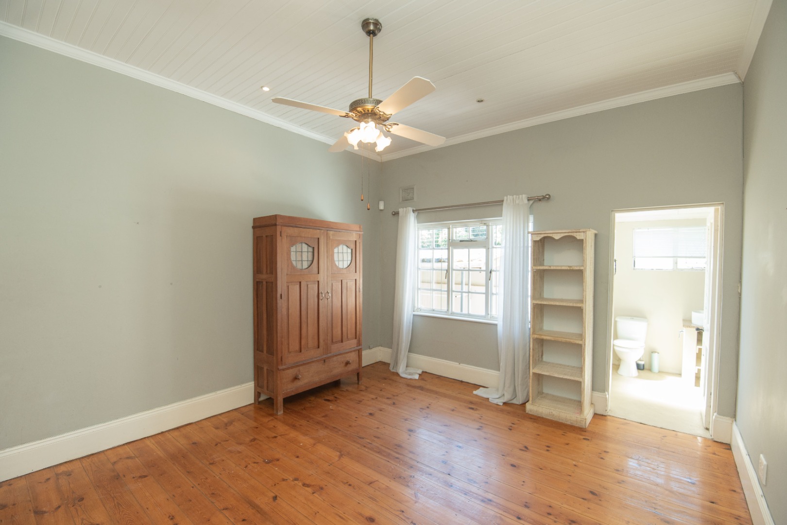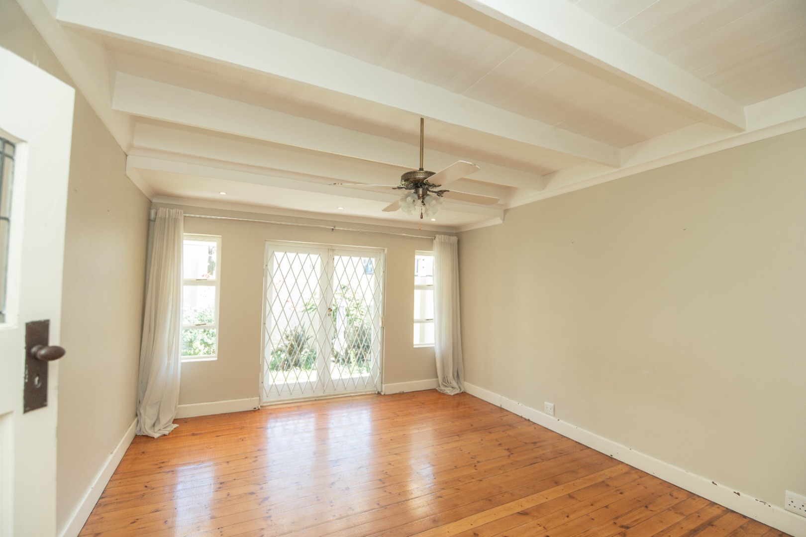 The large open-plan living area boasts high ceilings, two chandeliers, and French doors leading to the covered patio. Open plan to the kitchen, which features granite tops and a beautiful red Smeg gas stove. A guest toilet is off the kitchen, and the master bedroom is at the end of the living area. This large bedroom opens onto the covered patio via double doors and has a newly renovated bathroom with a stunning bath, vanity, shower, and toilet.
