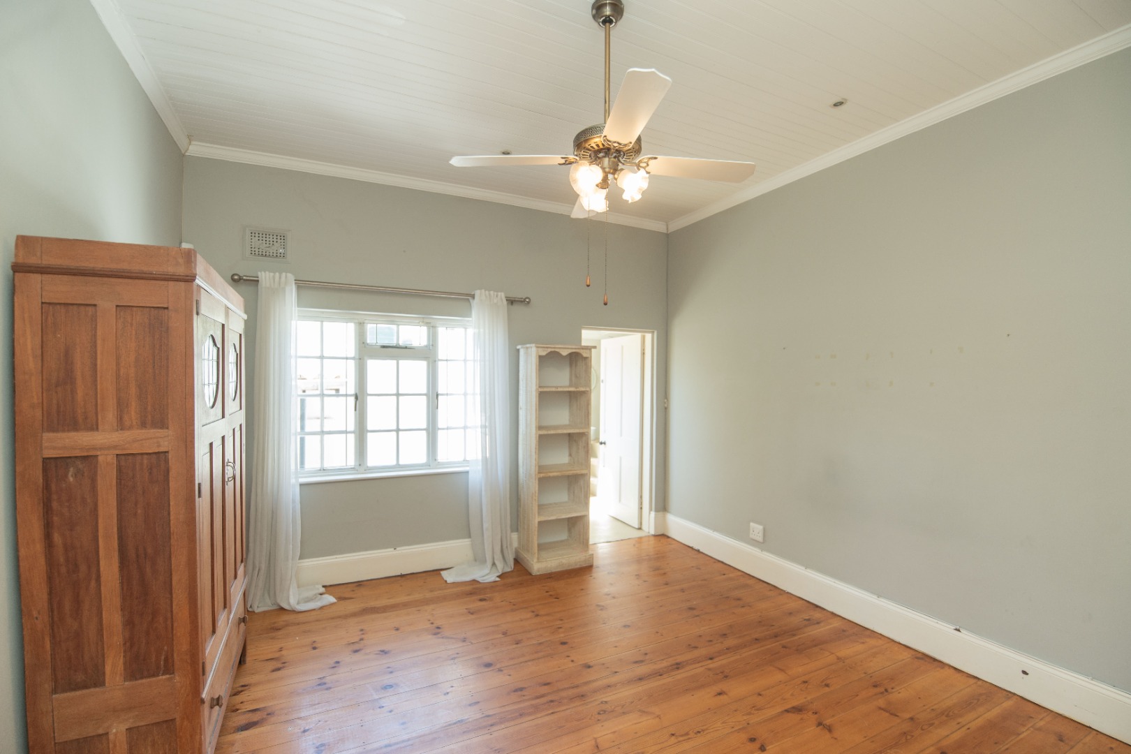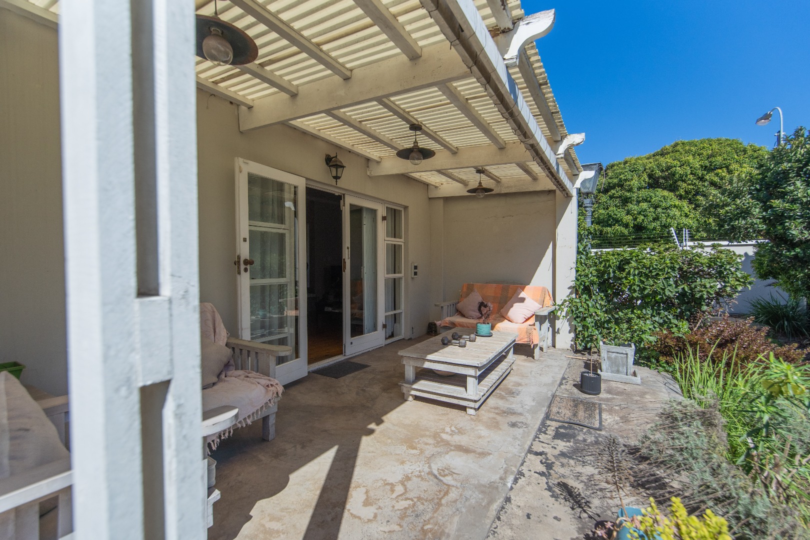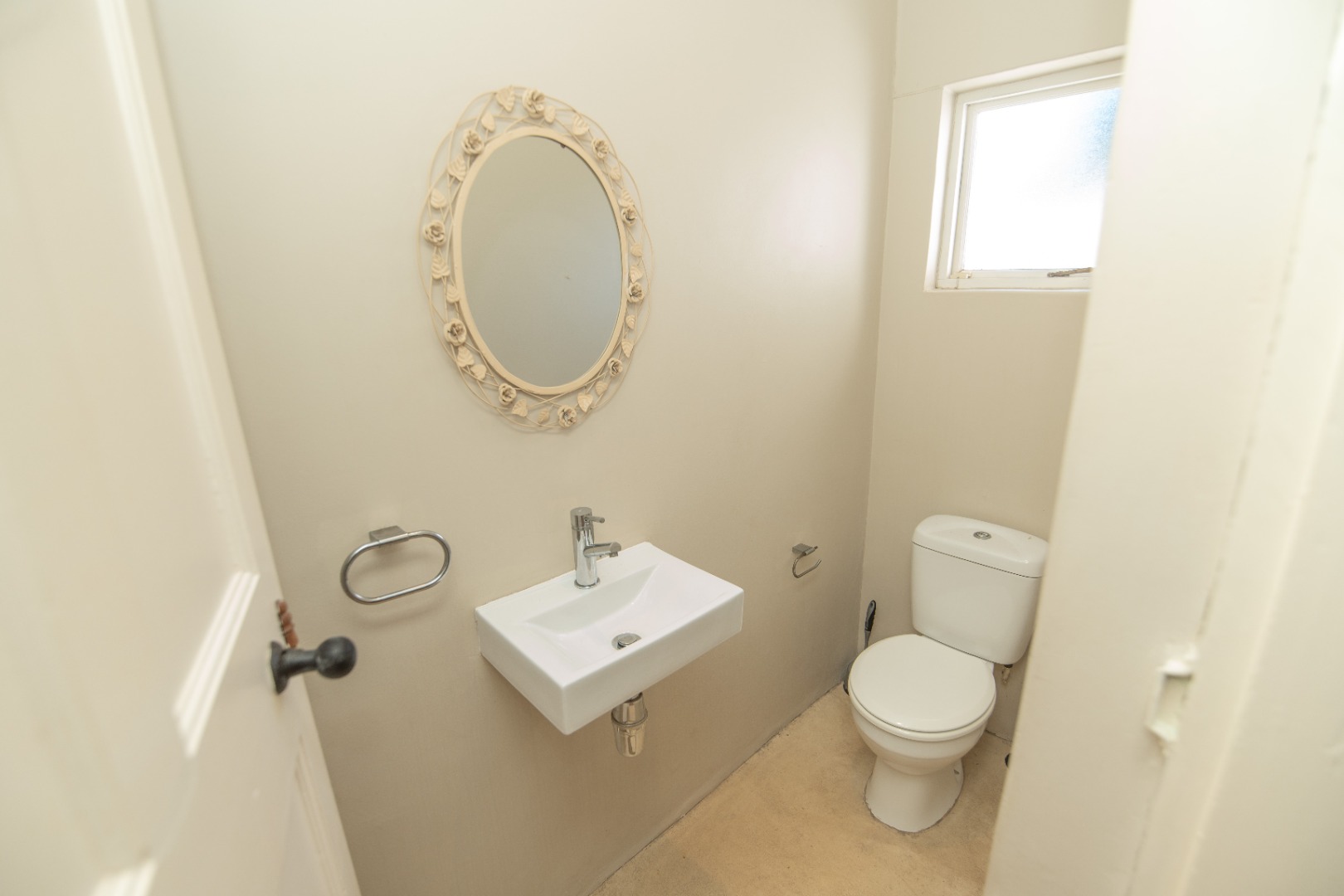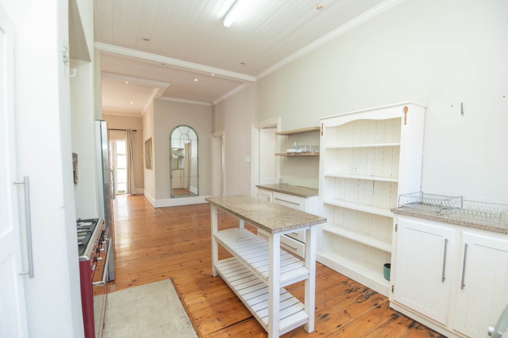 The large open-plan living area boasts high ceilings, two chandeliers, and French doors leading to the covered patio. Open plan to the kitchen, which features granite tops and a beautiful red Smeg gas stove. A guest toilet is off the kitchen, and the master bedroom is at the end of the living area. This large bedroom opens onto the covered patio via double doors and has a newly renovated bathroom with a stunning bath, vanity, shower, and toilet.