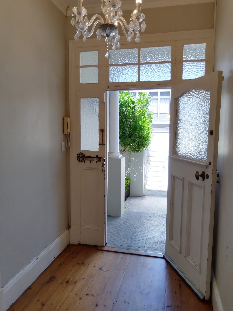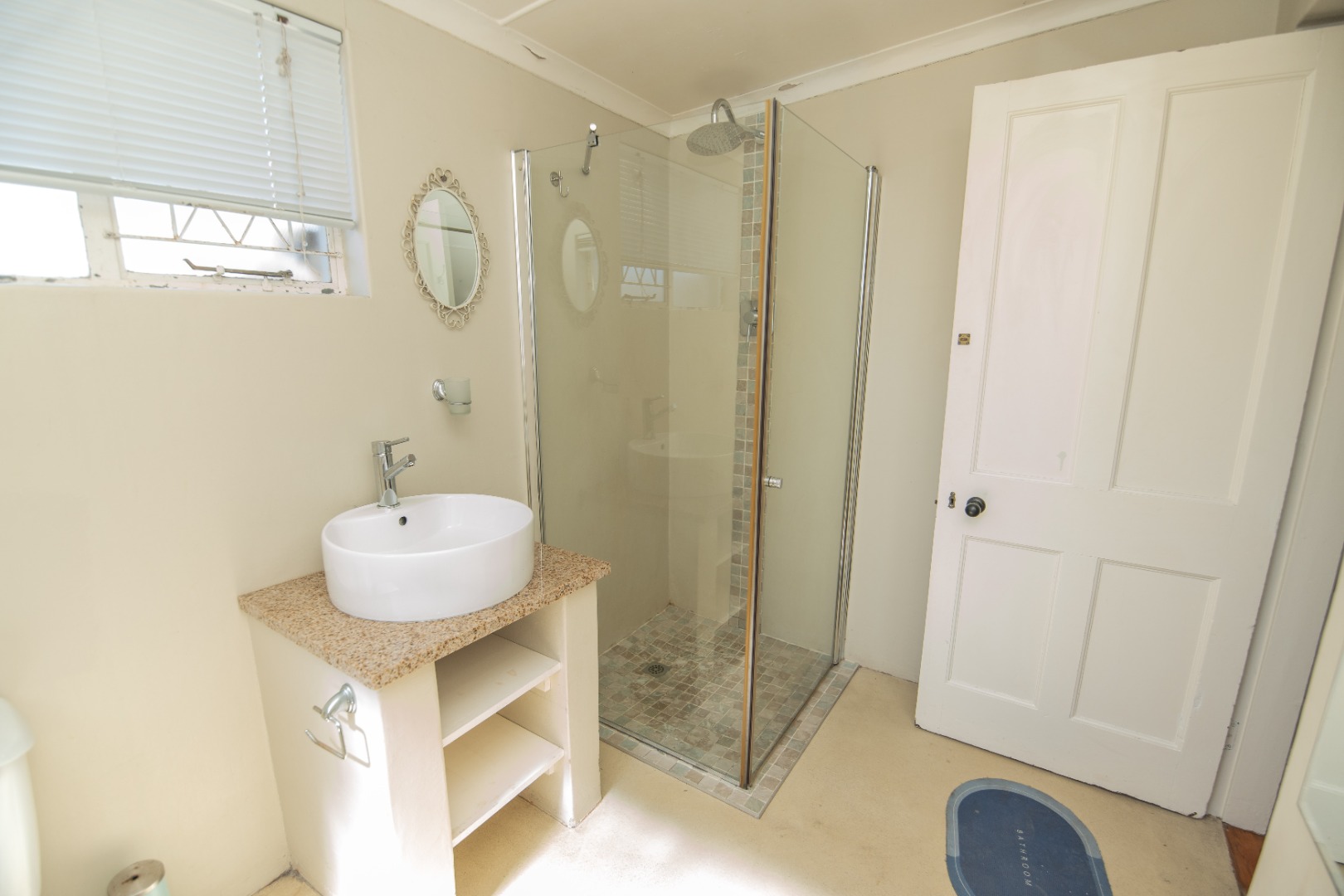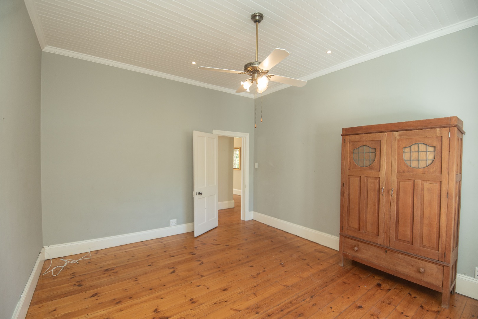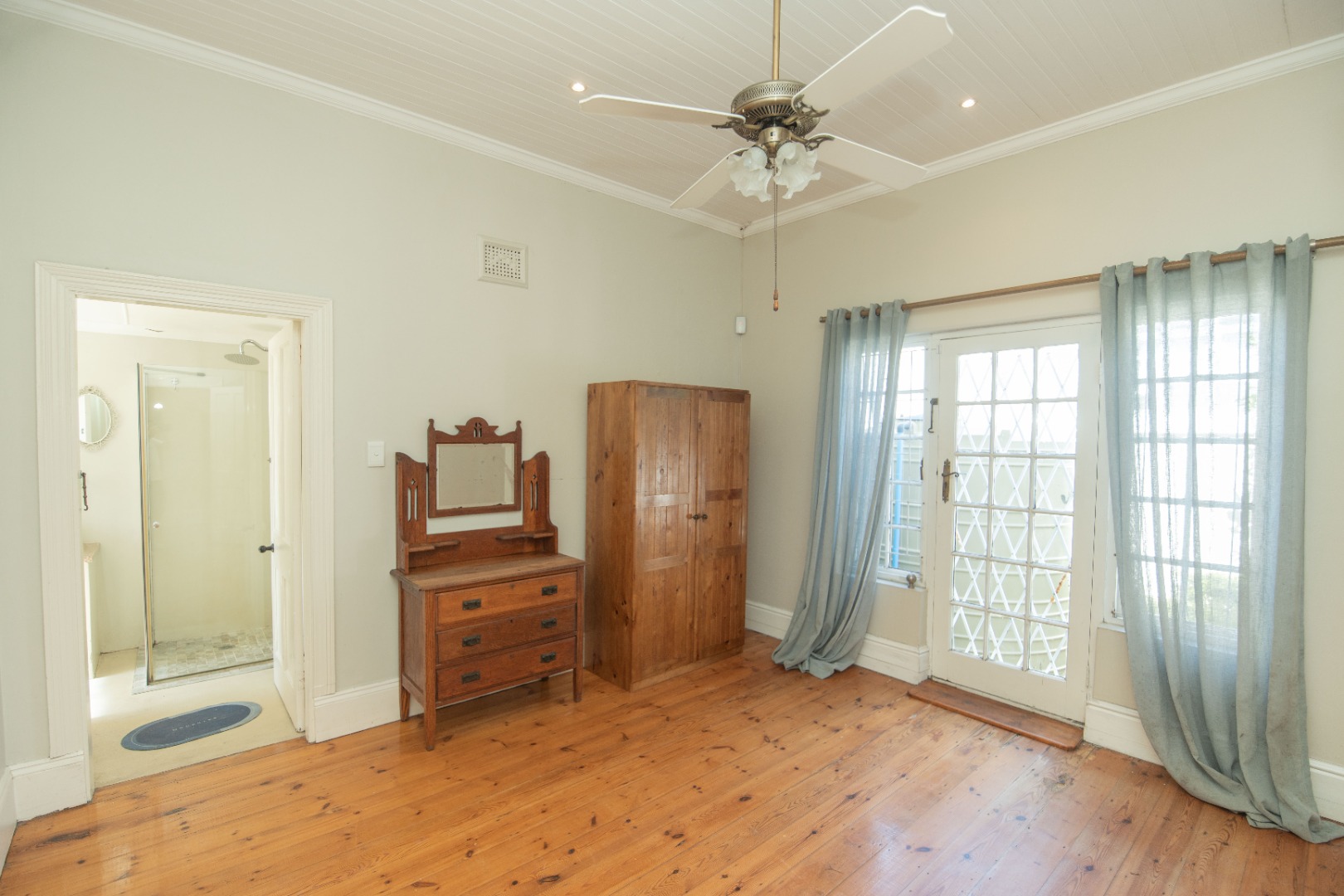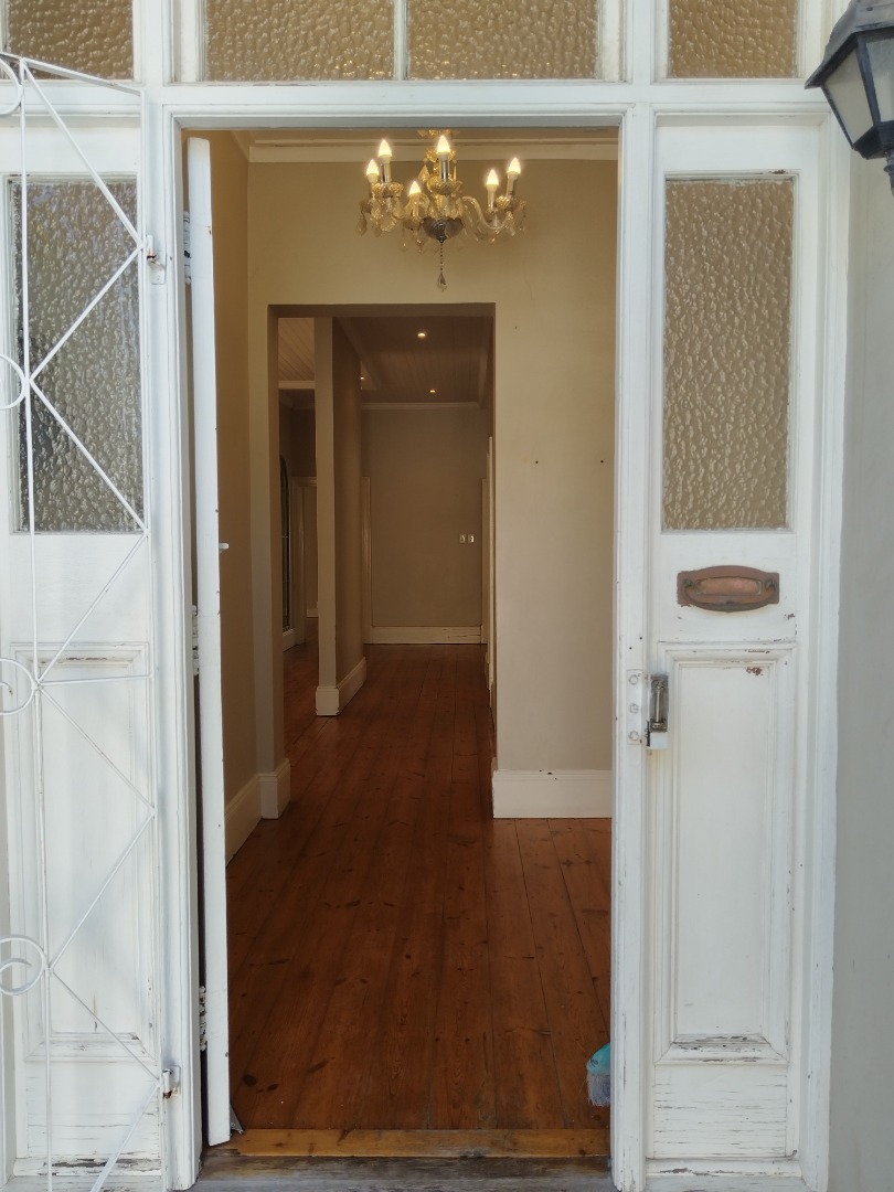 Entering from the front pedestrian gate, you'll step onto the veranda. Through the beautiful Oregon Pine front door, you're greeted by gleaming Oregon Pine floors and chandeliers. On your right is the first bedroom, opening to the outside via French doors. Next door is the second bedroom; both bedrooms share a bathroom with a shower, vanity, and toilet.