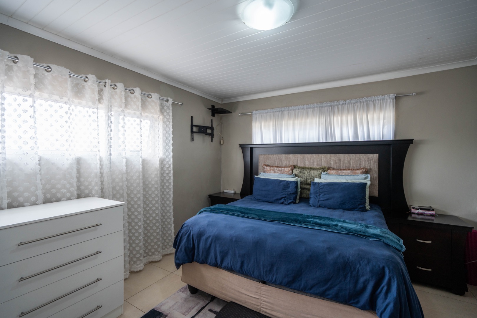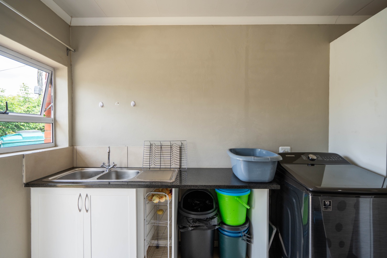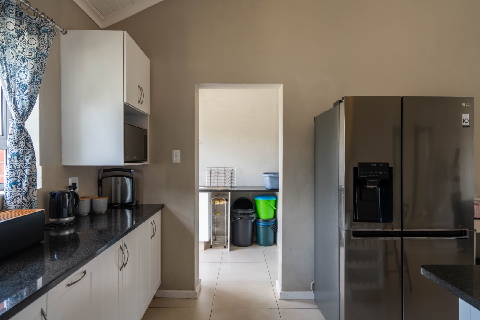 Outside, the 478 sqm erf provides a private garden and paved areas, ideal for outdoor relaxation. With four dedicated open parking spaces, there is plenty of room for vehicles. The property is pet-friendly and secured with an alarm system, access gate, and a totally walled perimeter. Practical features include water tanks and a battery inverter, enhancing sustainability and peace of mind.