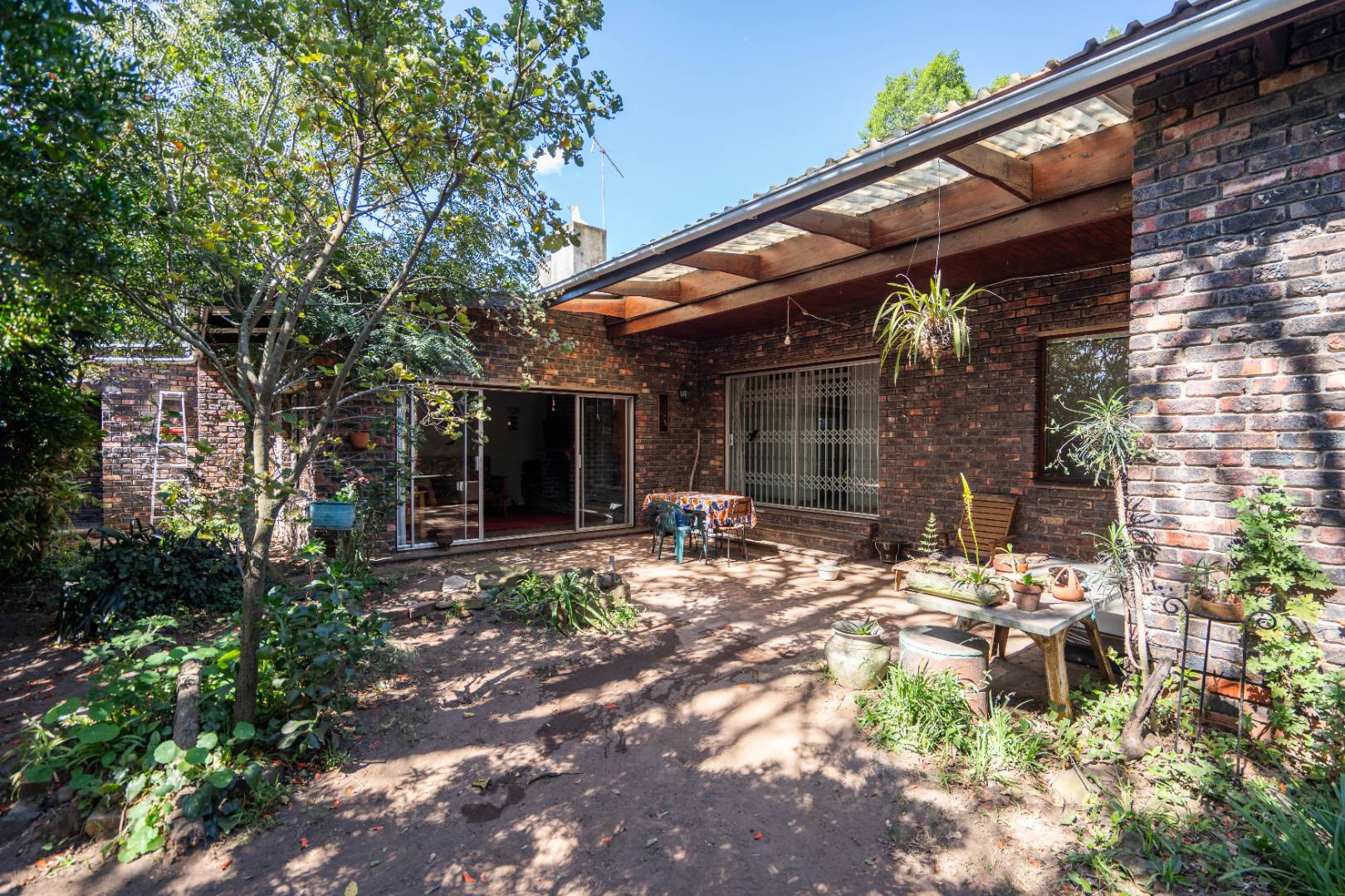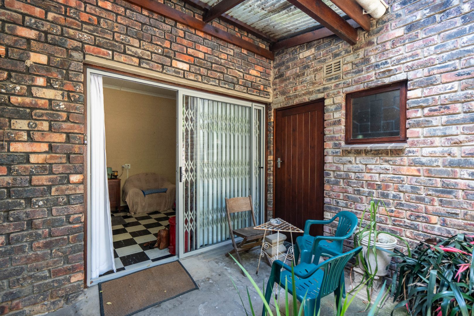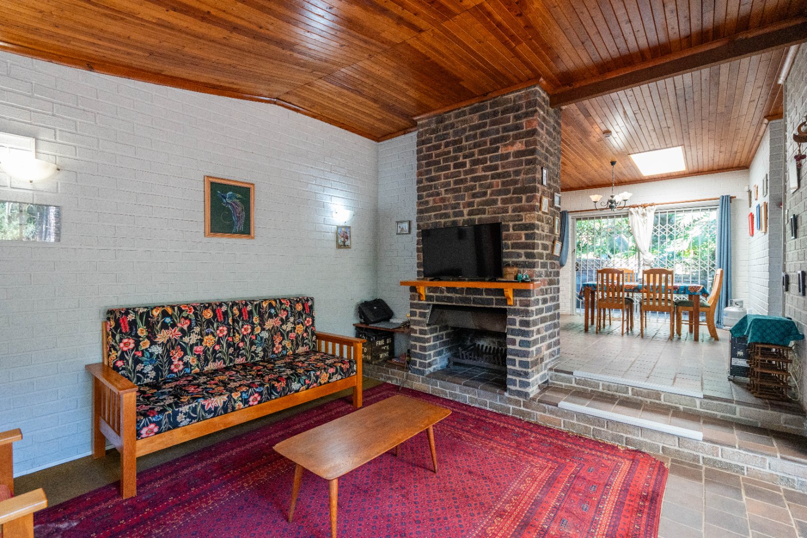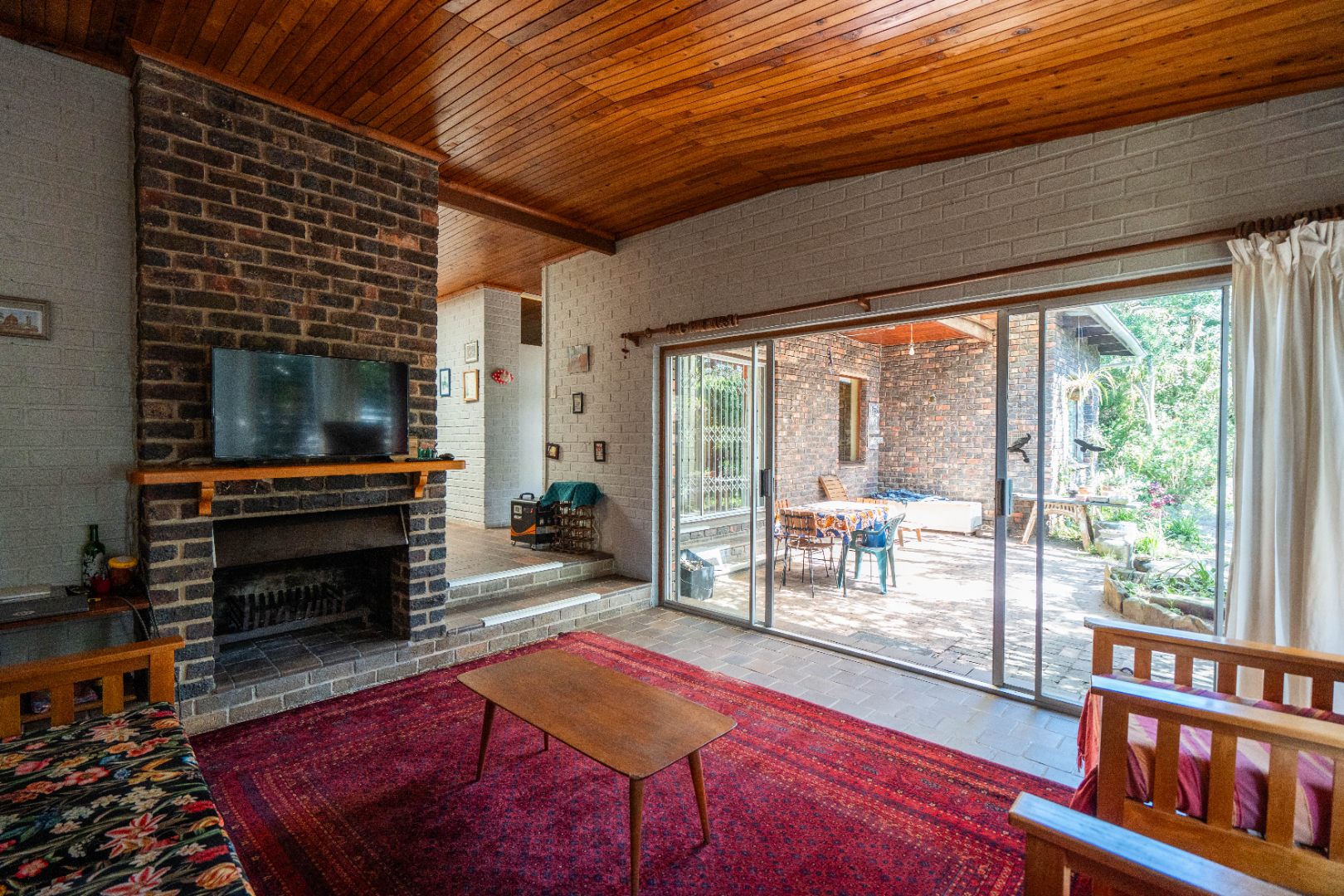 - Main lounge with double doors leading out to a covered veranda with private garden