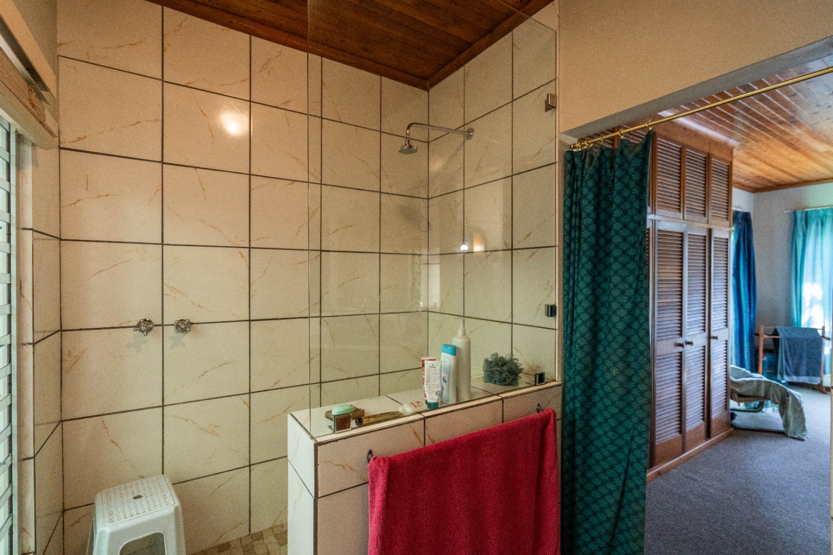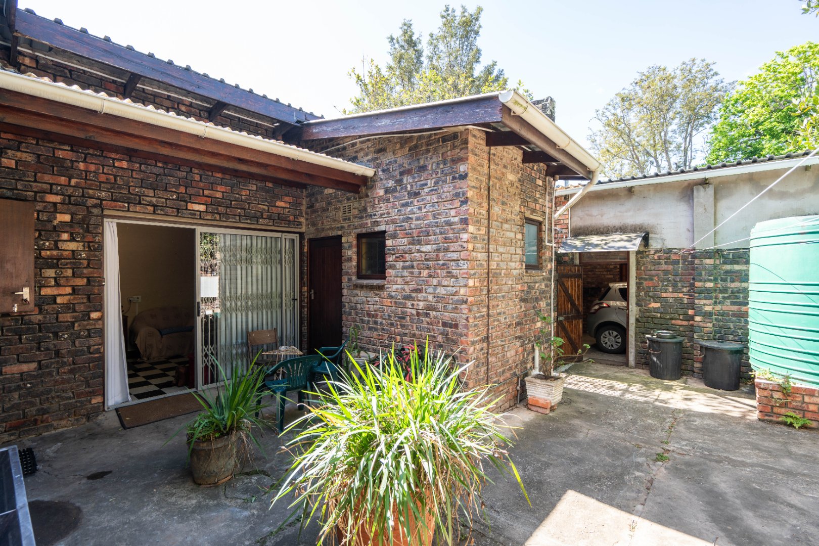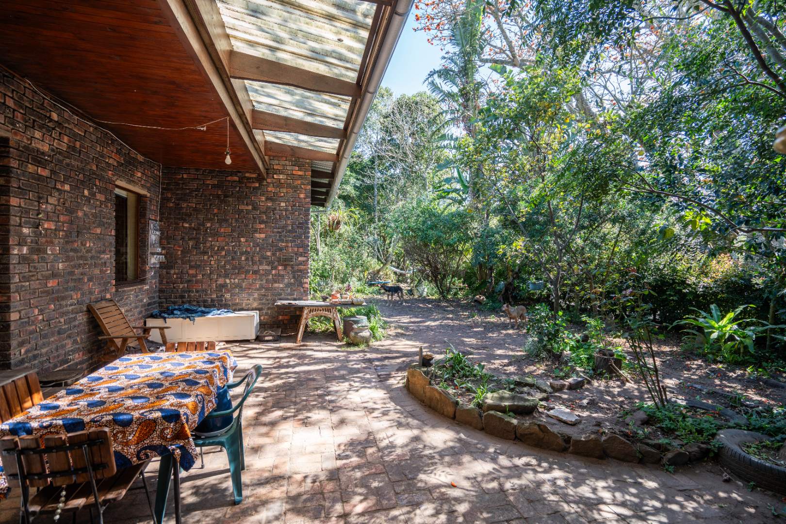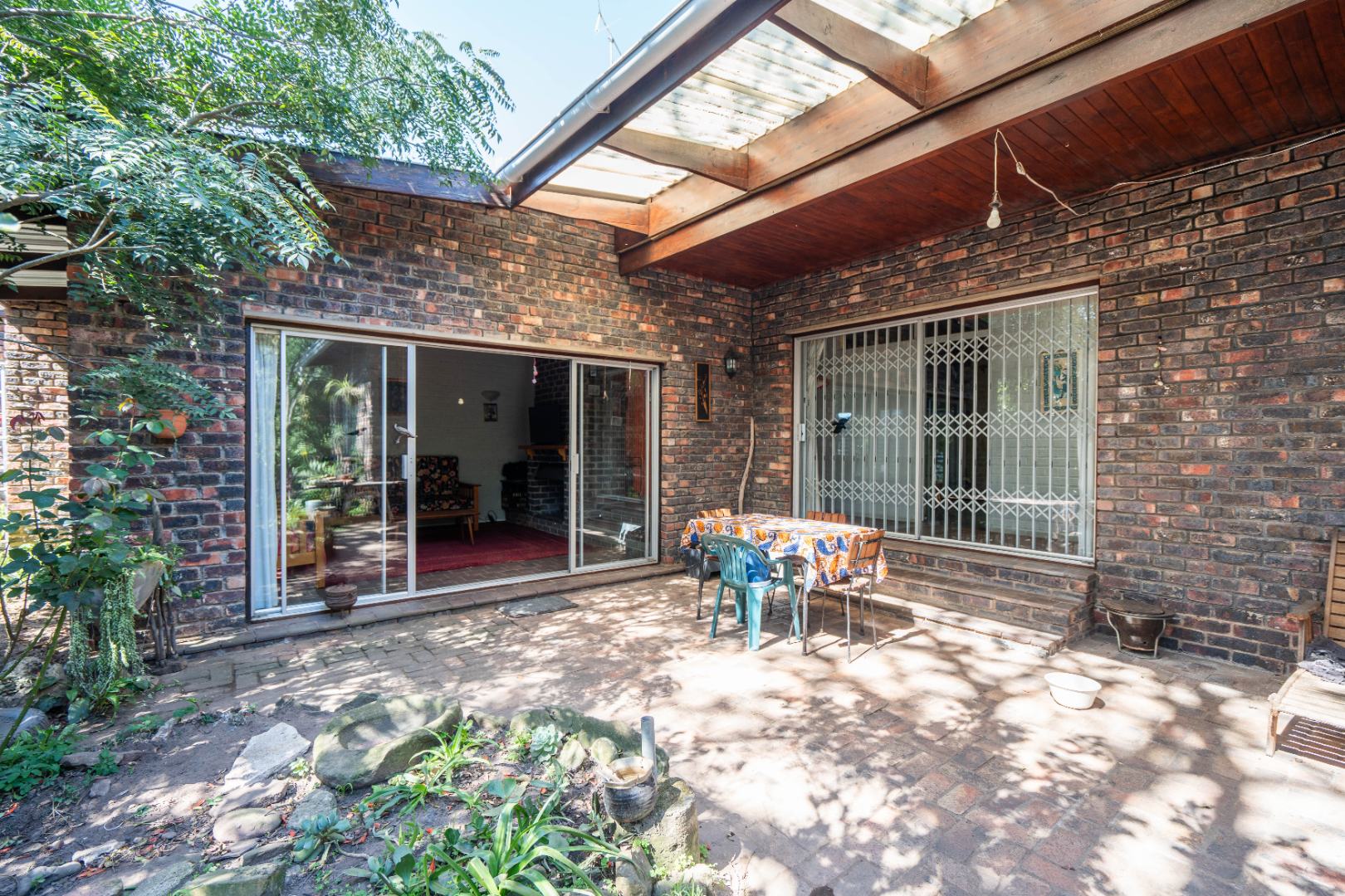- Main lounge with double doors leading out to a covered veranda with private garden