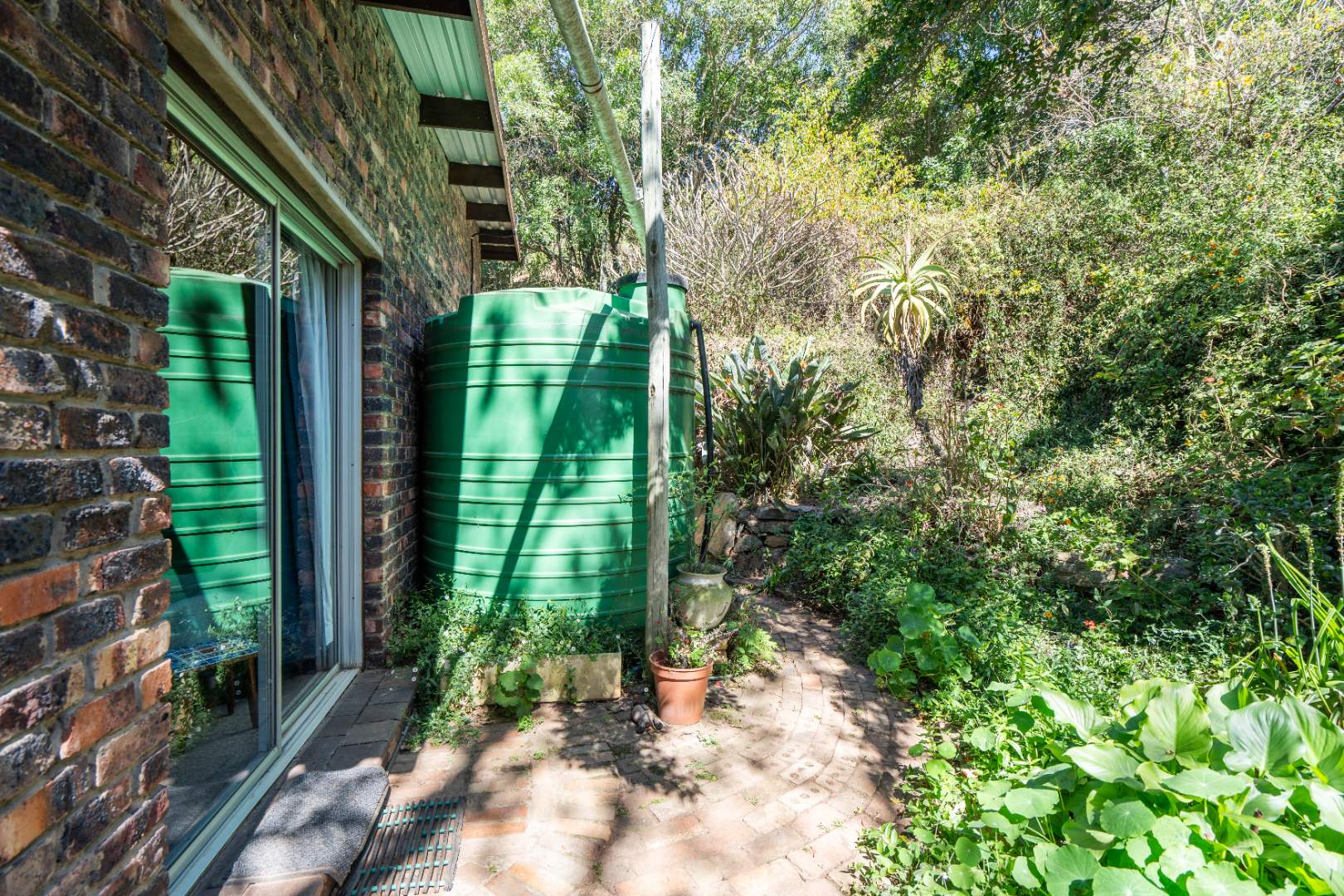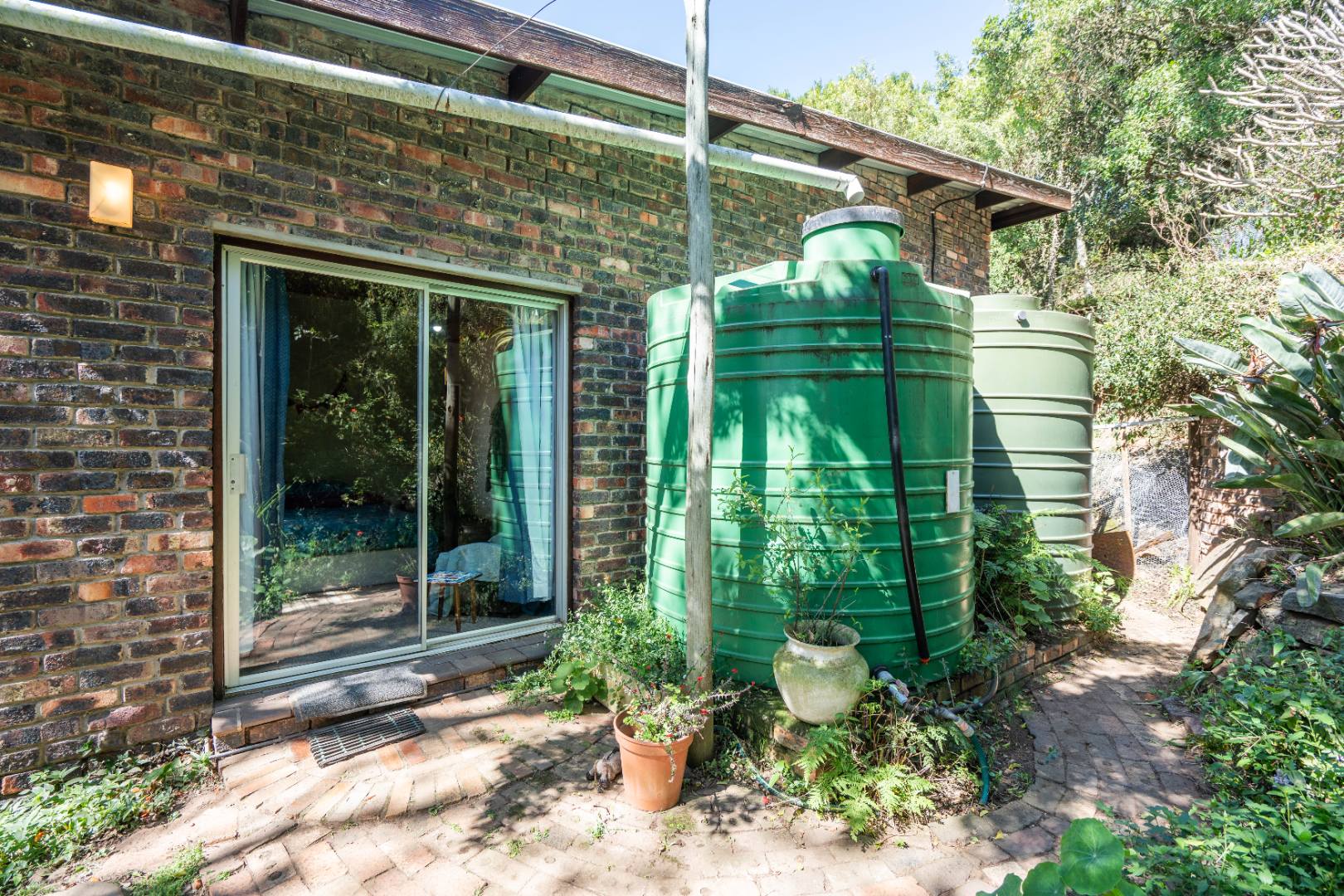 - 28000L/ 7 interconnected water tanks, solar pumped to a header tank which gravity feeds into the house