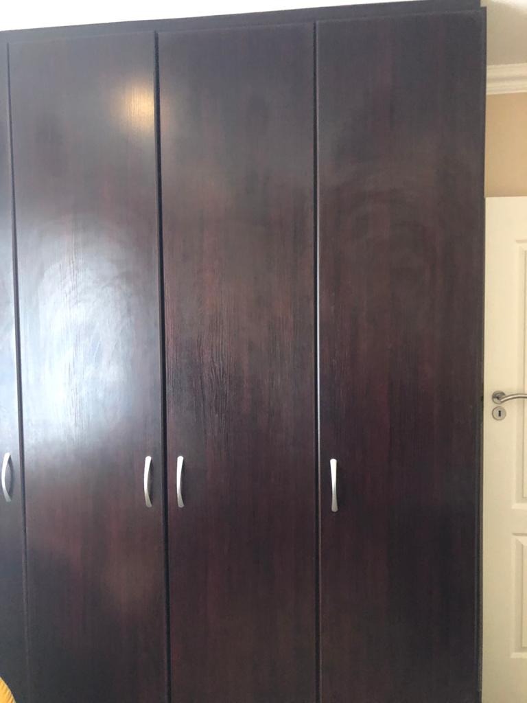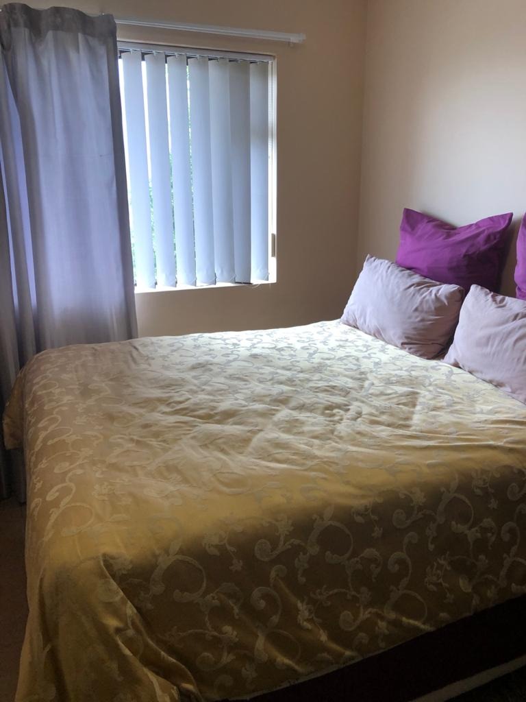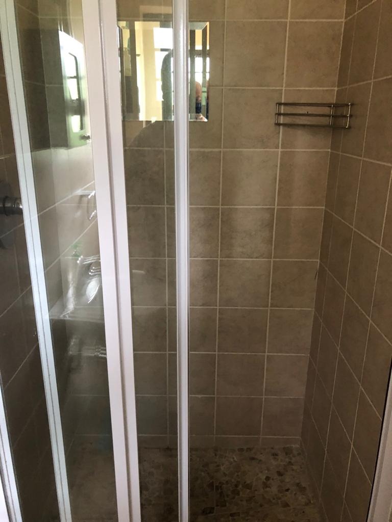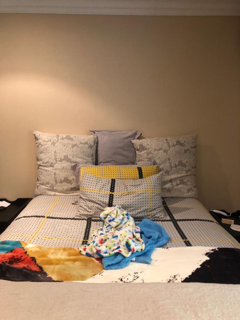This inviting 3-bedroom, 2-bathroom residence in Mount Pleasant, Port Elizabeth, offers comfortable living with modern finishes. The interior boasts an open-plan living space. Recessed lighting enhances the bright atmosphere, complemented by natural light from large windows. The functional kitchen is equipped with extensive dark wood cabinetry, generous light countertops, a tiled backsplash, and a convenient island/peninsula, providing ample storage and preparation space. An air conditioning unit ensures climate control for year-round comfort.