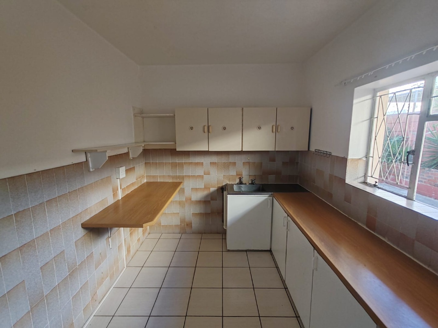 This inviting 1-bedroom, 1-bathroom apartment offers a practical living solution in the sought-after suburb of Walmer, Port Elizabeth. The interior features easy-to-maintain tiled flooring throughout, complemented by light-coloured walls that enhance the natural light streaming in. Each room benefits from ample illumination and includes a ceiling fan for comfort. The functional kitchen is equipped with extensive counter space, basic upper storage cabinets, and a small sink, providing a dedicated area for meal preparation. A lounge area offers a comfortable space for relaxation.