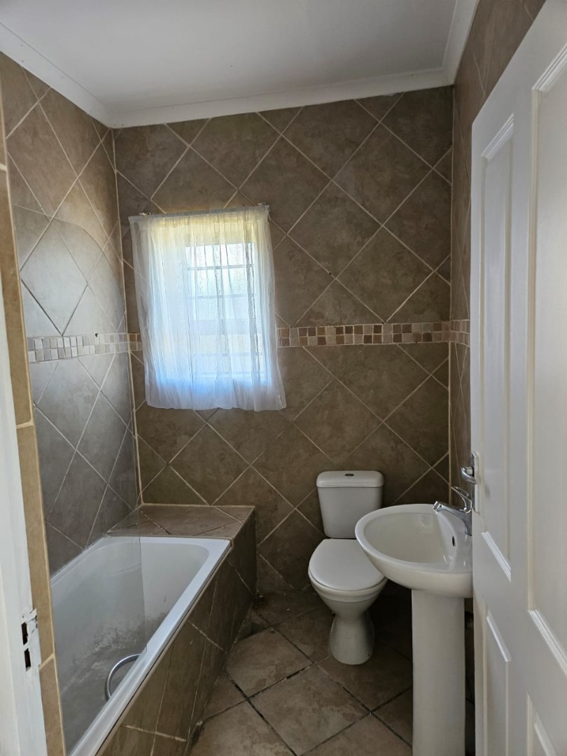 The single bathroom includes a bathtub, toilet, and sink, offering all necessary amenities. Natural light floods the interiors through well-placed windows, some of which are fitted with security bars for added peace of mind. This pet-friendly residence also boasts a garden area, perfect for outdoor enjoyment, and includes one dedicated parking space.